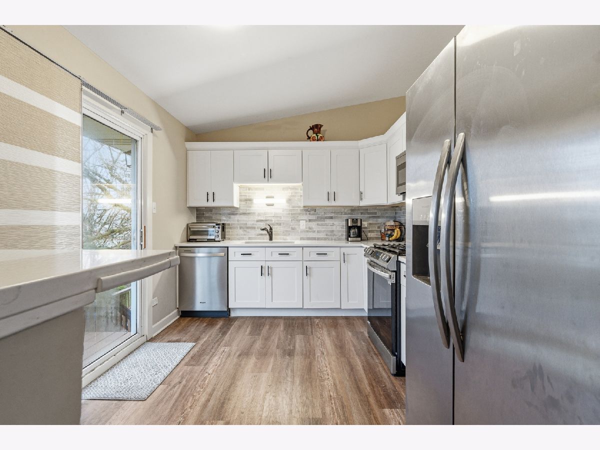 Welcome to this completely updated and beautifully remodeled raised ranch in a highly sought-after Frankfort location! This stunning home showcases a bright, open feel with a vaulted living room and dining room featuring gleaming luxury vinyl plank flooring and abundant natural light throughout. The gorgeous, fully remodeled kitchen is sure to impress with custom white soft-close cabinetry, quartz countertops, stainless steel appliances, and a striking custom backsplash. The adjacent dining area offers a door leading to a two-tiered deck, perfect for entertaining while overlooking the spacious yard. This home features three generously sized bedrooms and two beautifully updated bathrooms, complete with stylish white vanities and modern finishes. The finished lower level expands your living space with a large family room featuring luxury vinyl flooring and a full bath, ideal for related living, guests, or recreation. Additional highlights include a two-car garage and major updates already completed for peace of mind, including new roof, siding, and windows in 2023. Move-in ready and impeccably updated, this exceptional home combines modern style, functional living space, and a prime Frankfort location close to shopping, dining, school, parks, and more.