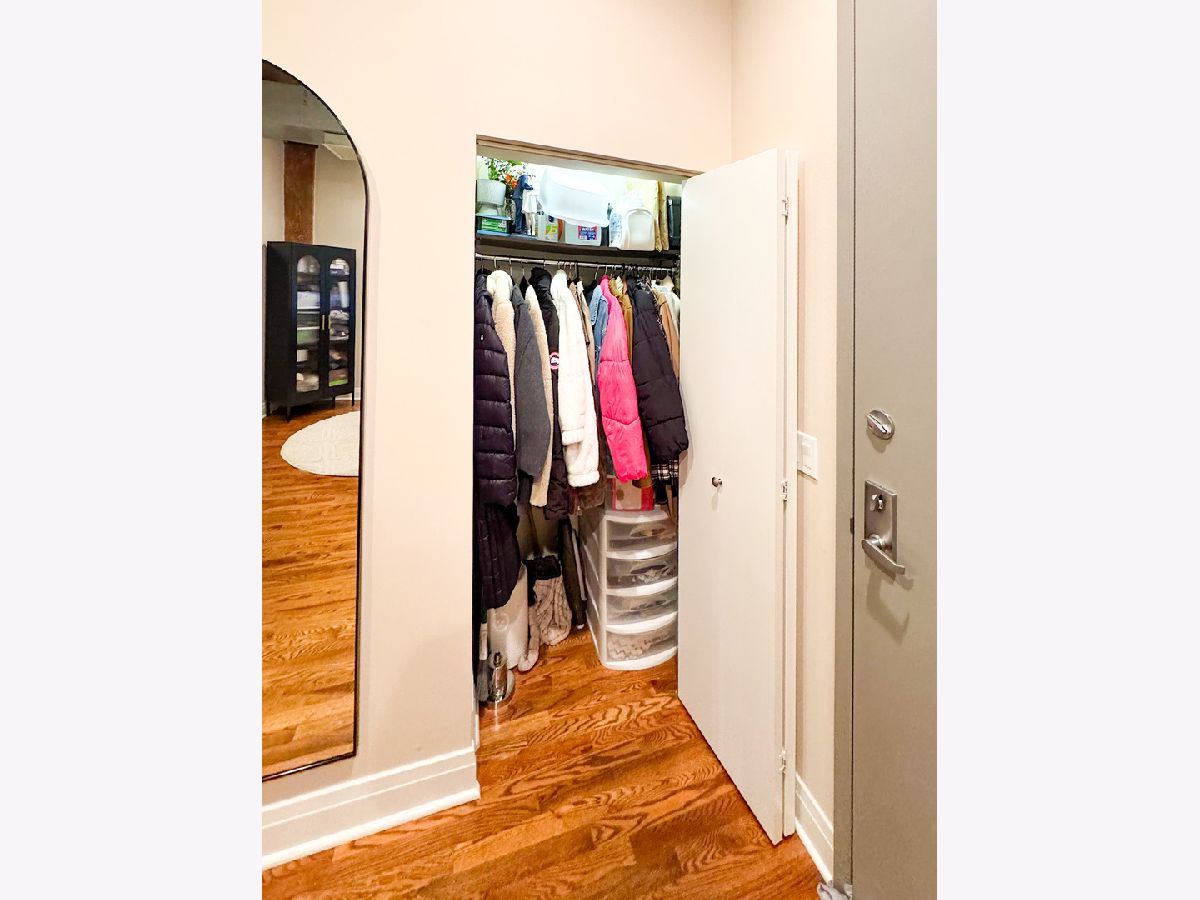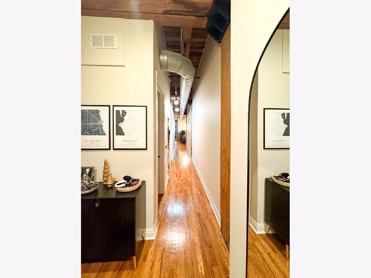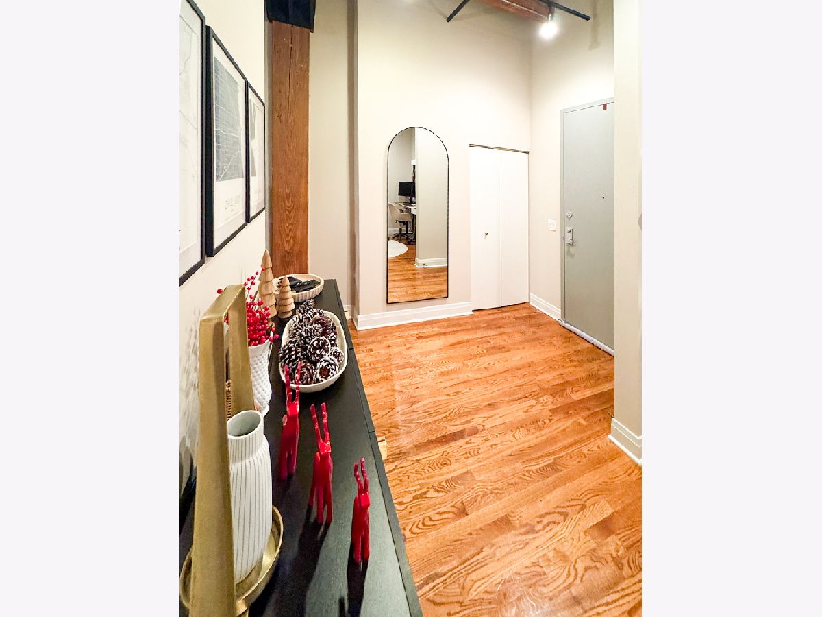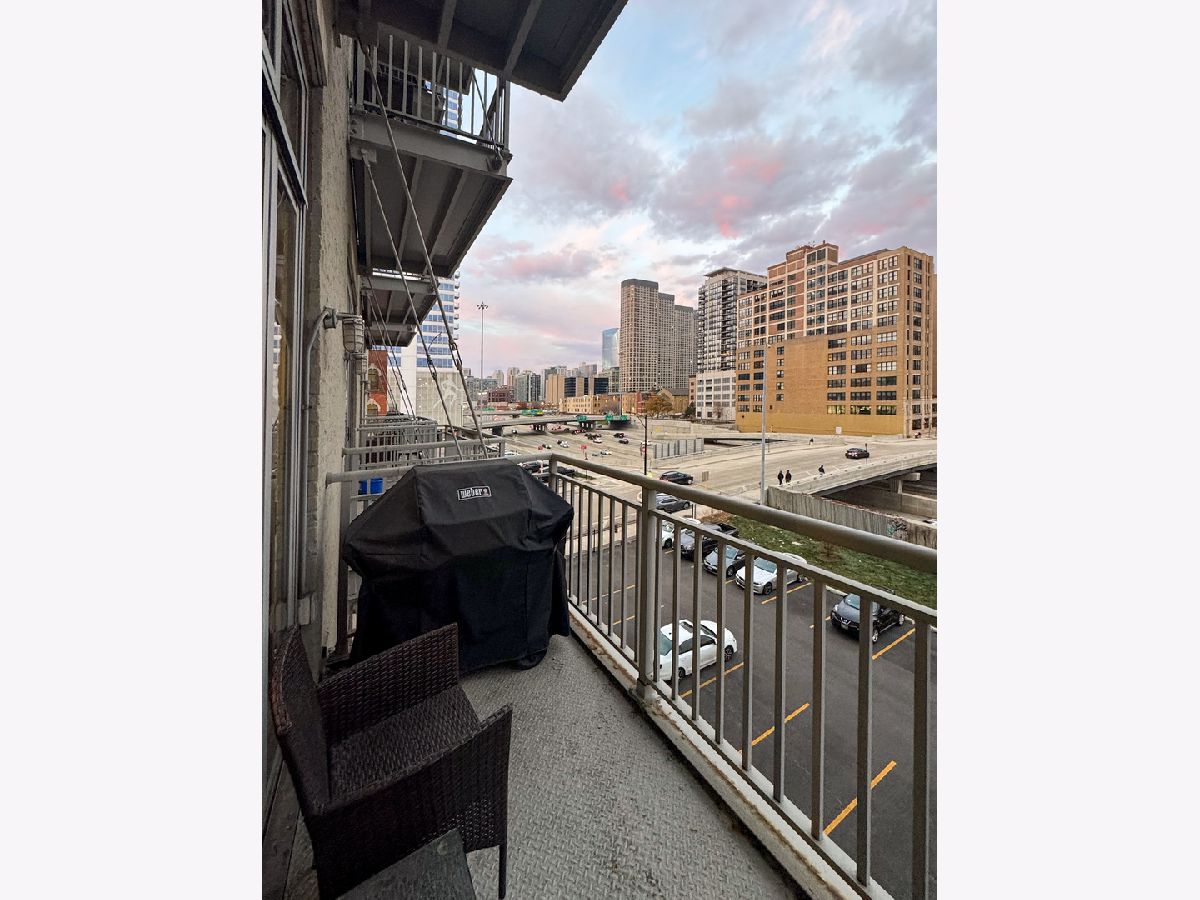 Welcome to Odyssey Lofts in Greek Town/West Loop. This 8-story building offers a unique and spacious one-bedroom plus den that could be converted to an additional bedroom, 1-bath loft featuring oak hardwood floors throughout. The exposed brick and timber detailed ceilings create a warm and rustic charm, with 12' plus timber beam ceilings that give the space character. A generous foyer welcomes you into the unit. The open floor plan concept connects the large living area to the updated kitchen, complete with 42" cabinets, granite countertops, stainless steel appliances, and backsplash, and an island with a breakfast bar. Living room has a floor to ceiling windows with convenient Hunter Douglas roller shade with a remote control. Through this window are unobstructed view of the city skyline and a private balcony. The convenience of an in-unit washer and dryer with new LG 2024 Front Loads adds to the overall ease of living in this incredible space. Additional upgrades include a new KitchenAid Dishwasher, and A/C condenser and furnace from a few years ago, ensuring your comfort and peace of mind. Additionally, a spacious 4' x 4' x 7' storage unit is included, providing you with the extra space you need for your belongings. For your convenience, exterior uncovered rental parking is potentially available on the building premises. Stay active in the building's fitness room. Enjoy the added value of heat, gas, Wi-Fi, and internet included in the monthly assessment. This location is a commuter's dream, with easy access to CTA/Metra trains, buses, and expressways. You'll also love the proximity to great shopping options, including Mariano's and Whole Foods, not to mention the fantastic dining choices in the nearby restaurant row. Don't miss out on this exceptional opportunity.