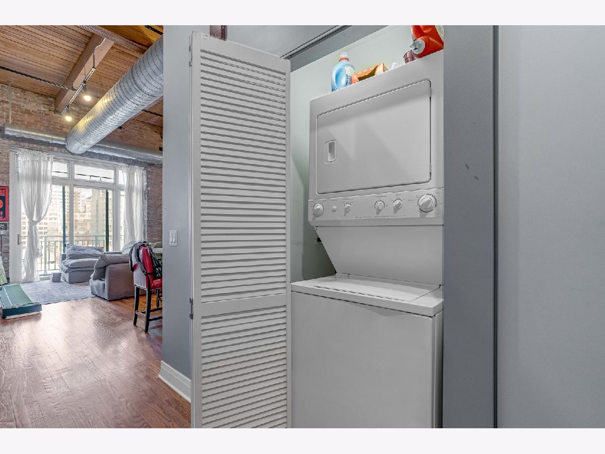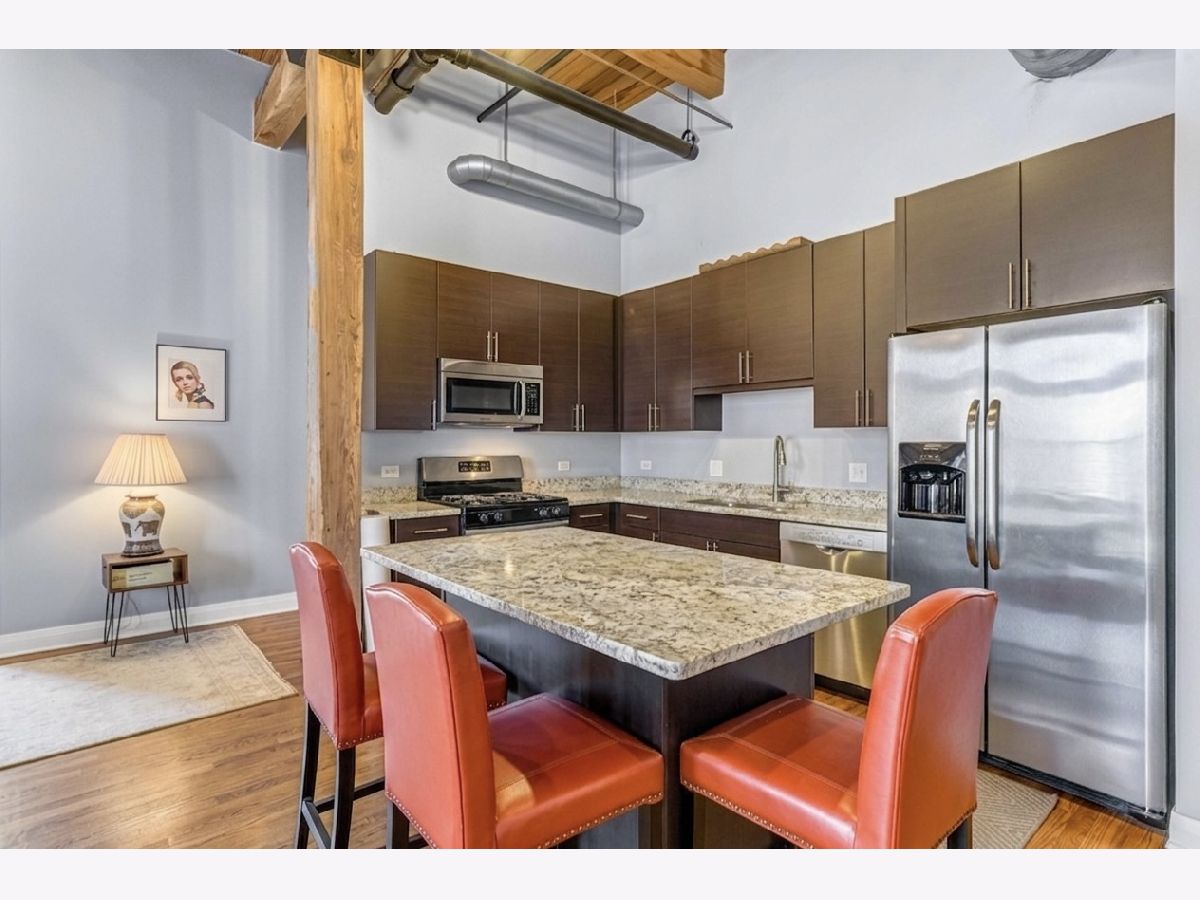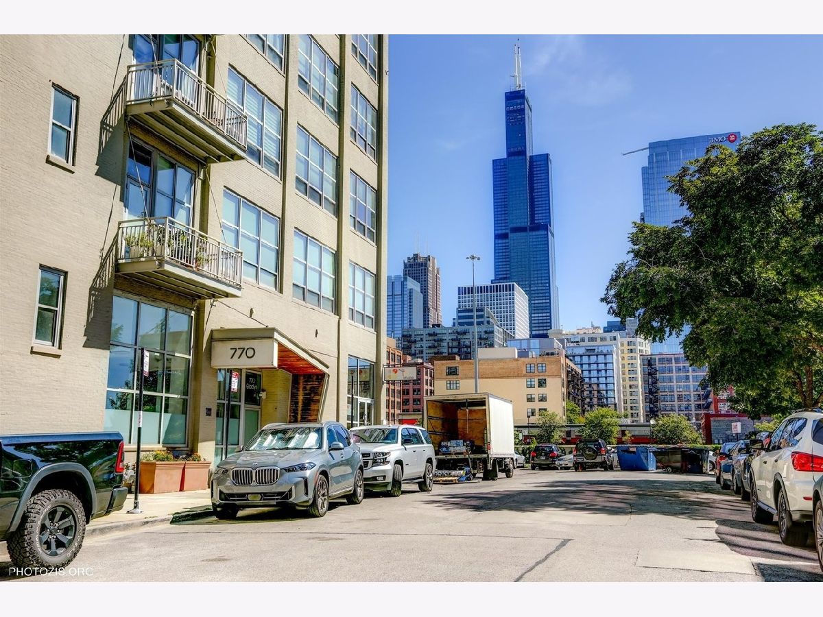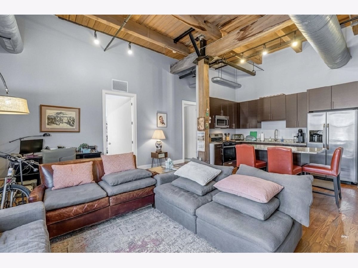 Southeast corner timber loft in Chicago's West Loop - originally the building's penthouse before two concrete floors were added above. The result: soaring 12'9" timber ceilings and exposed brick with the soundproofing of a concrete high-rise. A solid concrete ceiling above and double drywall party wall deliver a level of quiet that's nearly impossible to find in a loft building. Two walls of oversized 9-foot windows flood the home with natural light from morning through afternoon, with long south and east views over the neighborhood. Custom automated blackout roller shades on every window. Granite kitchen with stainless appliances, breakfast island, and 42" cabinetry. Primary suite with dual vanities and organized walk-in closet. In-unit laundry, east-facing balcony with city views, and a full-height storage locker. Walk Score 96, Transit Score 97 - steps from Greektown, Randolph Restaurant Row, Fulton Market, Google and McDonald's HQs, and multiple CTA lines. HOA includes heat, water, gas, parking, and fitness center.