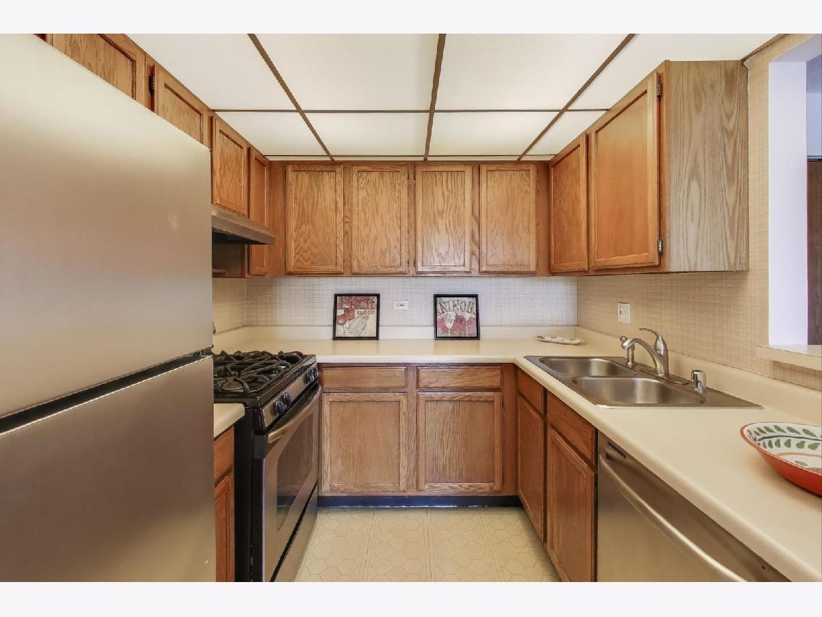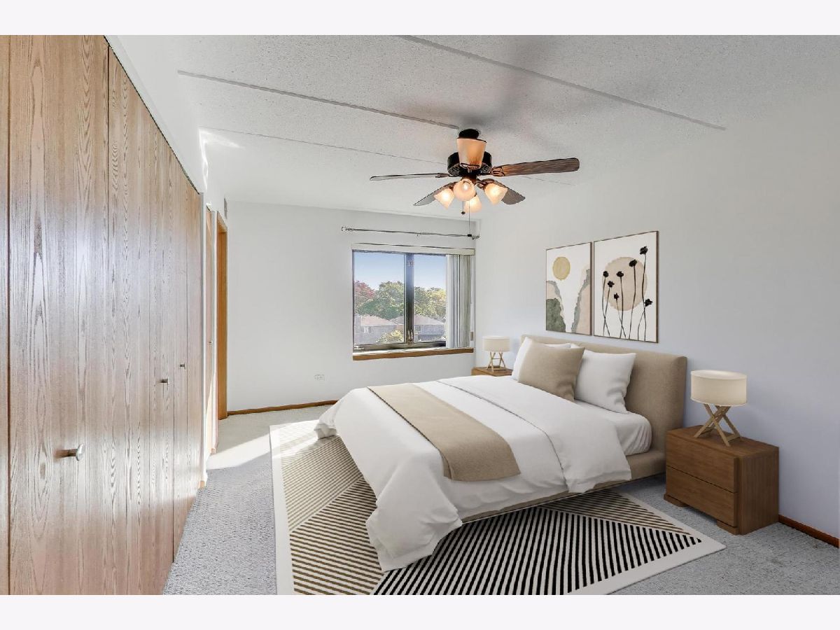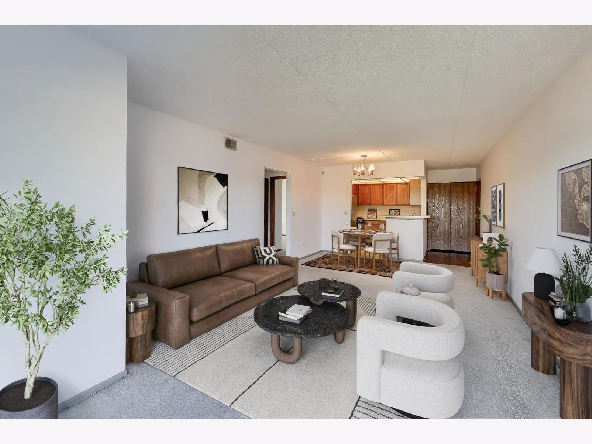 Come see this bright, spacious 2-bedroom, 2-bath corner unit with a balcony. Freshly painted. Open concept with Living Room/Dining Room combo has sliding glass doors to balcony. Kitchen has stainless steel appliances including a dishwasher and Breakfast Bar. Primary bedroom with en-suite bathroom. Great room sizes and closet space. Central Air, in-unit washer/dryer, and storage on the same floor. Very clean, well-maintained building. 2 elevators. Heated garage parking. Great Location. CLOSE TO HARLEM/IRVING PLAZA SHOPPING MALL. WALKING DISTANCE TO STORES, RESTAURANTS, AND SCHILLER WOODS FOREST PRESERVE. And the bus stop is outside the front door. Easy access to I-294, I-90/94 expressways- and O'Hare. No Dogs. Cats and Birds allowed. NO RENTALS
