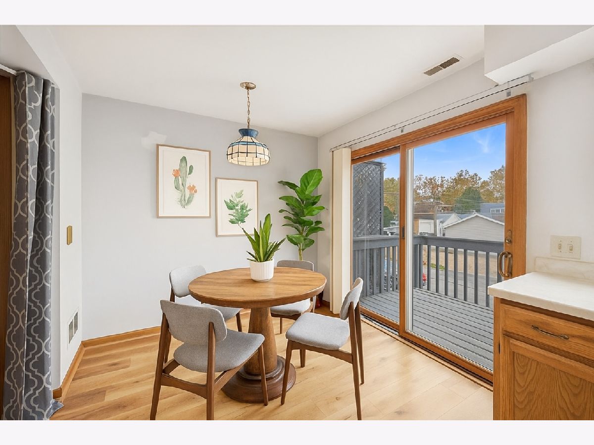 Spacious, move-in ready, 3-level townhome in the heart of Forest Park with room to add your own finishing touches. The ground level opens from the attached garage, with an EV charger, into a flexible bonus space that's ideal for a home office, workout area, or hobby room, plus extra storage. The main floor features a bright living room with hardwood floors and a wood-burning fireplace, an adjacent dining area, and a large eat-in kitchen with plenty of cabinet and counter space, stainless-steel appliances, and newer flooring. Sliding doors lead to the private deck, perfect for grilling, container gardening, or morning coffee. Upstairs, you'll find two true bedrooms, including a generous primary bedroom with its own updated ensuite bath featuring a freestanding soaking tub, modern vanity, and sleek fixtures. A comfortable second bedroom and additional bath complete the upper level. This is a well-kept home that's ready to enjoy as-is, and the seller is offering a $5,000 buyer credit for interior painting with an acceptable offer so you can choose your own colors and create a fresh, custom look. Fantastic Forest Park location close to restaurants, shopping, parks, transit, and easy access to both the city, and suburbs.