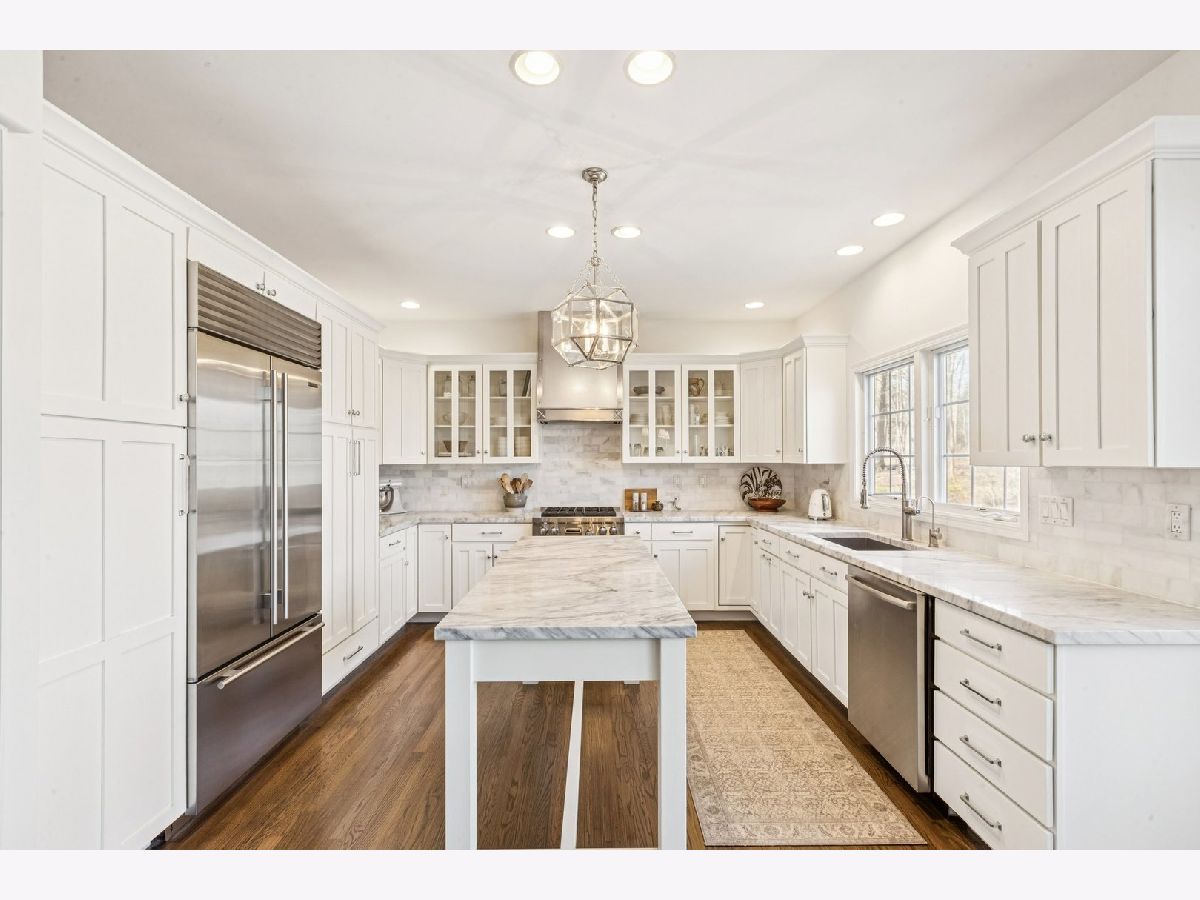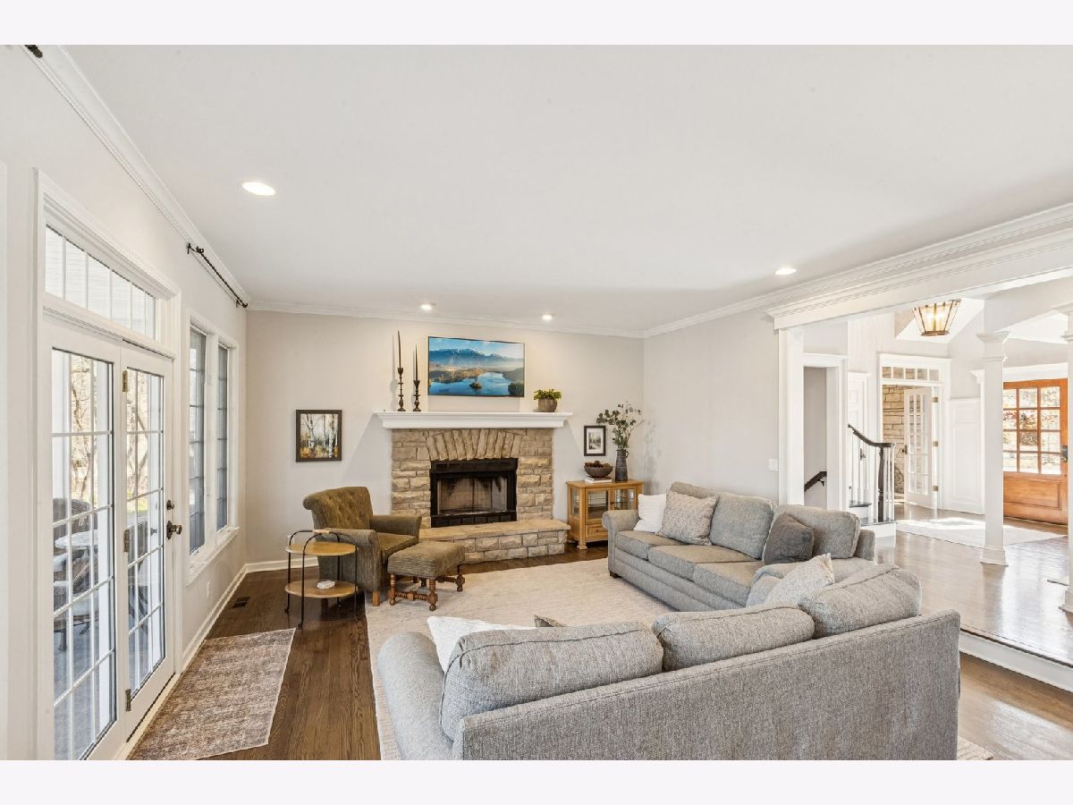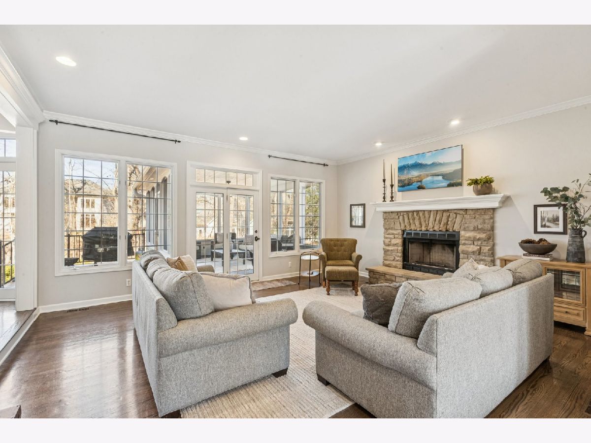 Black Walnut Trails stunner! Executive level craftsmanship wrapped in the charm of a cozy cottage, set deep within a serene, wooded backdrop. Rich hardwood floors, crown molding, wainscoting, and custom millwork establish a refined foundation for the open floor plan. The layout includes a separate dining room and a warm, inviting living room anchored by a beautiful stone fireplace. A stunning screened porch extends the living space into nature, creating a peaceful retreat. A vaulted office-also featuring a stone fireplace-adds architectural drama and functional versatility. The chef's kitchen impresses with a SubZero refrigerator, Wolf range, marble backsplash, elegant quartzite countertops, and a center island. The primary suite offers a calming escape with a renovated bath showcasing artistic flair, including a freestanding tub and a luxurious full body spray shower. A pair of secondary bedrooms share a well-appointed Jack and Jill bath, ideal for comfortable family living. A large unfinished attic provides excellent additional storage potential. The finished English basement expands the home's living space with a dry bar, office or workout area, a possible fourth bedroom or ideal guest quarters, storage and peaceful wooded views. The epoxy finished garage floor adds durability and a polished look, while the outdoor sprinkler system ensures easy lawn maintenance. This home is a rare blend of craftsmanship, comfort, and natural beauty. .Conveniently located near I-88, hiking/biking trails, community parks, and shopping/dining options. Welcome home!