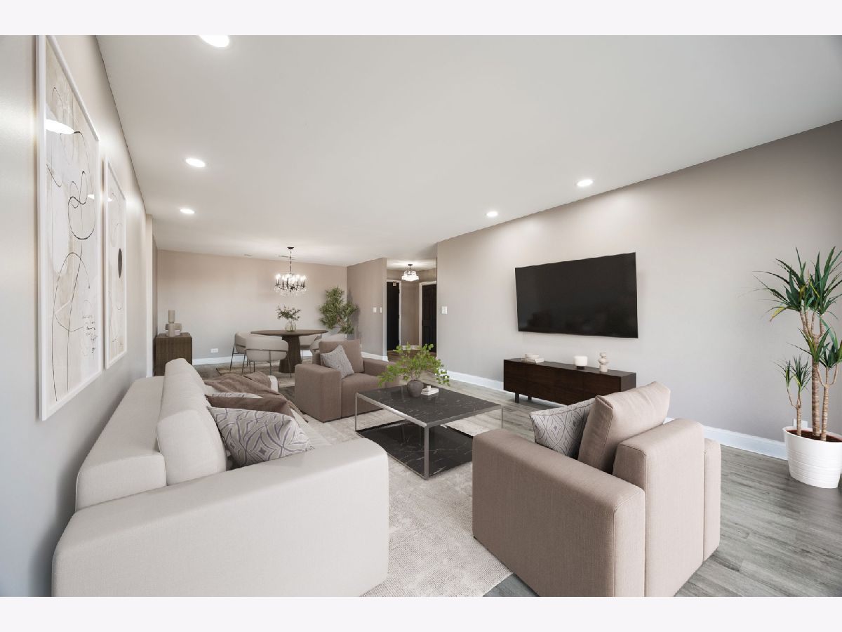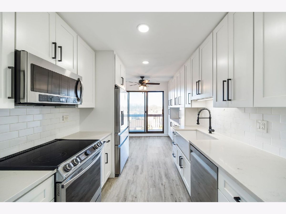 Welcome to one of the largest residences in Twin Manors West, an elevator building offering comfort and convenience. This spacious 3 bedroom, 2 bath condo features an extra large foyer with coat closet and an updated galley kitchen with soft close cabinetry, quartz countertops, vinyl flooring, recessed lighting, and a full appliance package. The expansive living and dining area opens to a north facing balcony accessible from both the living room and kitchen. Both bathrooms have been updated, and the primary suite offers a walk in closet. A walk in linen closet with custom organizers provides excellent storage. Enjoy a dedicated in unit laundry room with full size washer and dryer under warranty, plus a new HVAC system under warranty. Newer windows and fresh paint throughout make this home move in ready. Includes two heated garage spaces (#12 and #13), a same floor storage locker, ample guest parking in the rear, and a garbage chute on every floor. Residents also enjoy a main level party room. Conveniently located near Edens Expressway, I 294, Notre Dame College Prep, shopping, and dining.