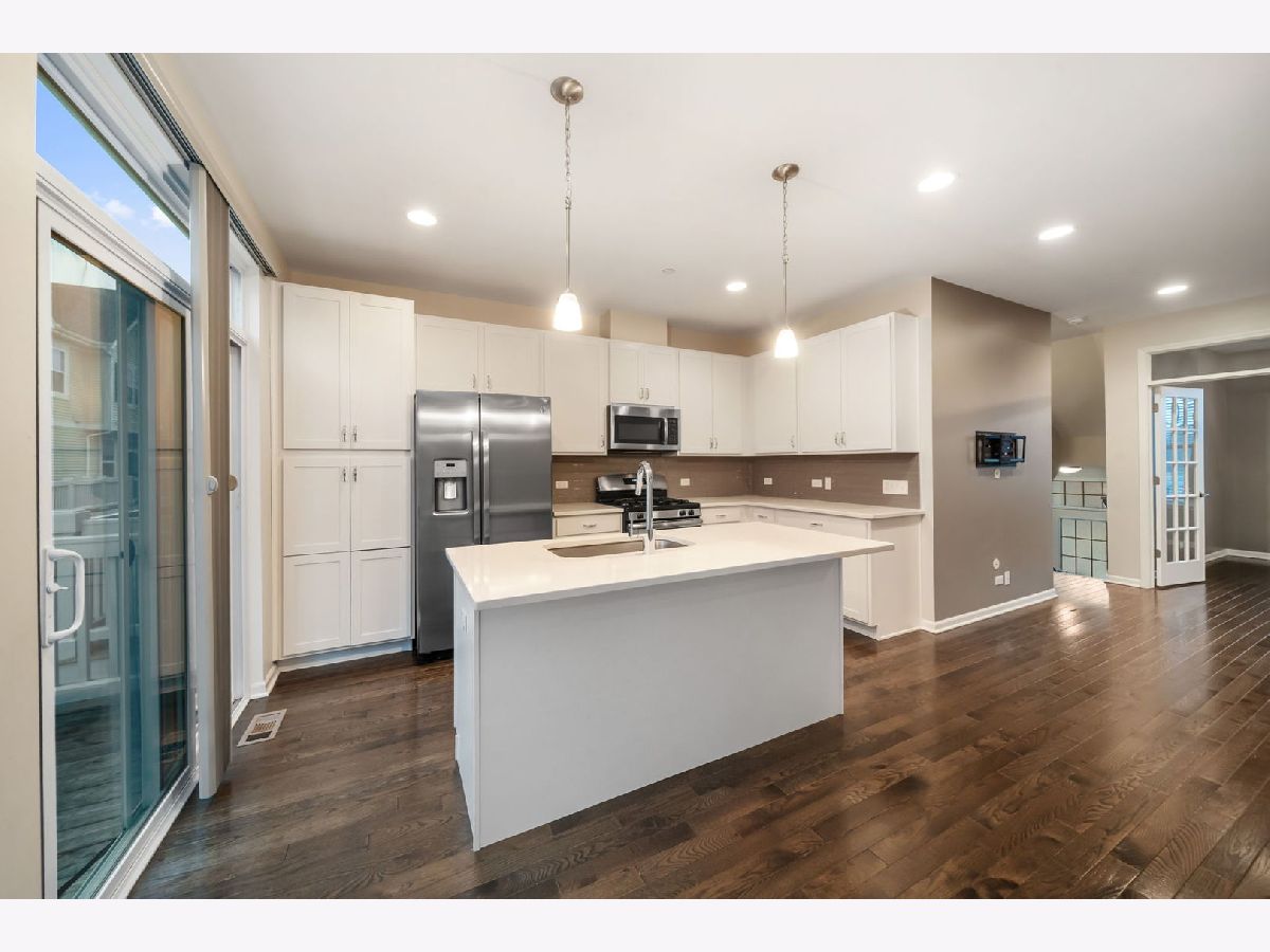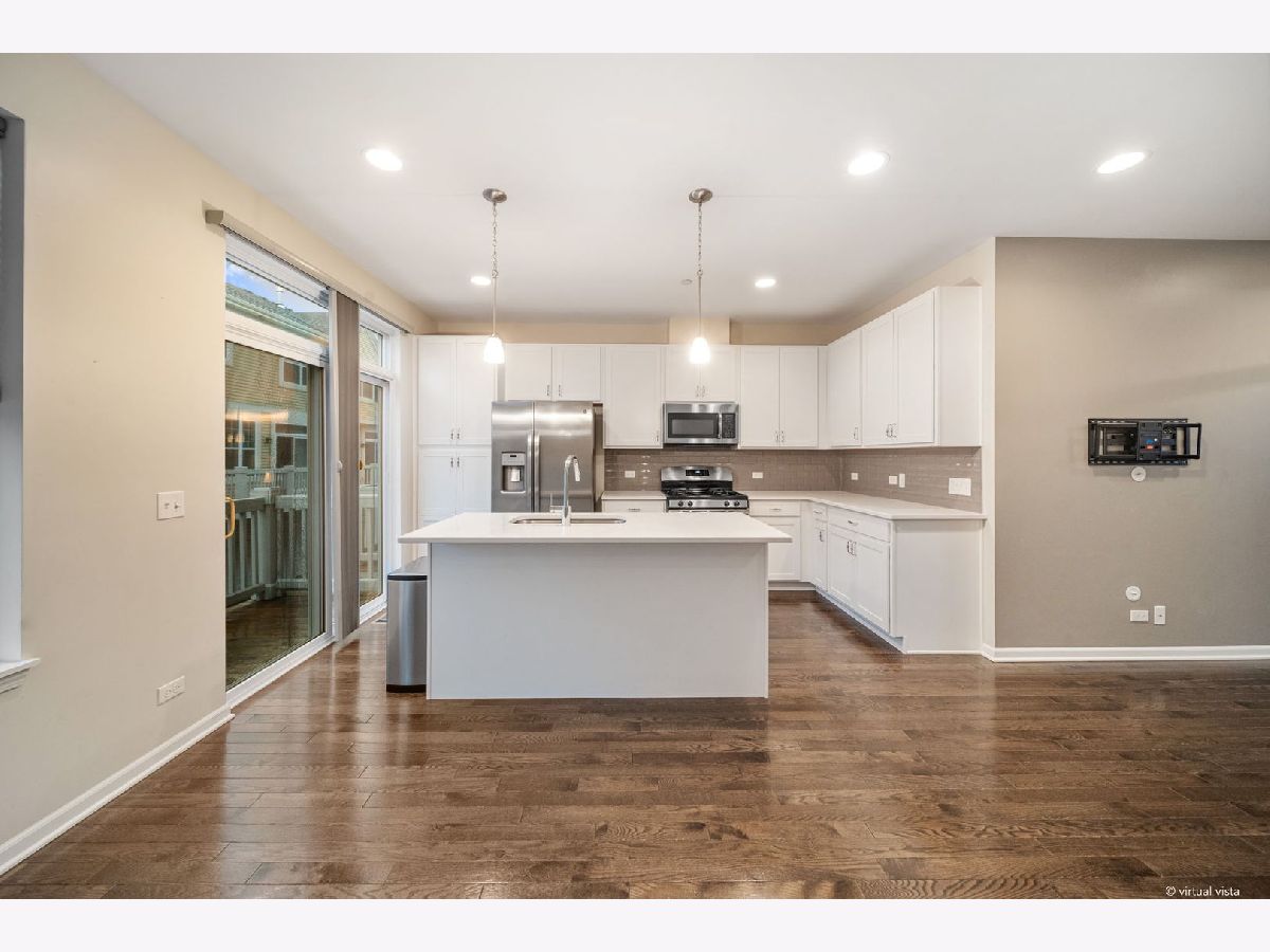 This stunning three-story townhouse is ideally located within walking distance to downtown Des Plaines, just minutes from the Metra, shopping, library, and restaurants. Featuring an open-concept layout, this luxury Lexington townhome offers 9-foot ceilings, gleaming hardwood floors, and a beautifully appointed kitchen with 42" white cabinets, granite countertops, stainless steel appliances, and a spacious island-perfect for entertaining. The dining area opens to an extended balcony, ideal for outdoor grilling. The main level also includes a versatile bedroom or office and an updated half bath. Upstairs, you'll find two spacious primary suites, each with its own private full bath, along with convenient second-floor laundry. The main primary suite features a vaulted ceiling, blackout shades, a large walk-in closet, and a luxurious bathroom with dual sinks and a generously sized shower. The finished lower-level bonus room offers endless possibilities-perfect as a family room, bedroom, home office, gym, or playroom-and provides direct access to the attached two-car garage. This home truly has it all-style, space, and location. Schedule your showing today!