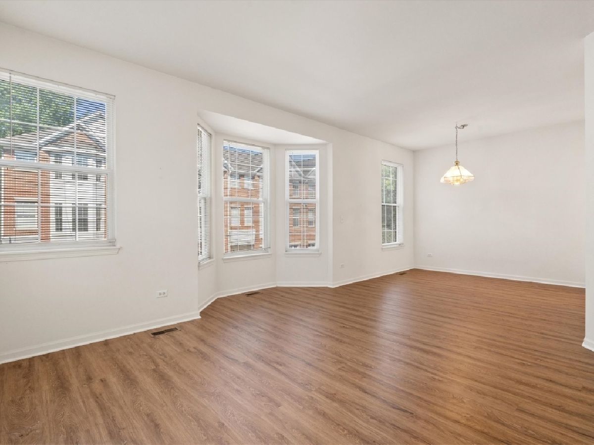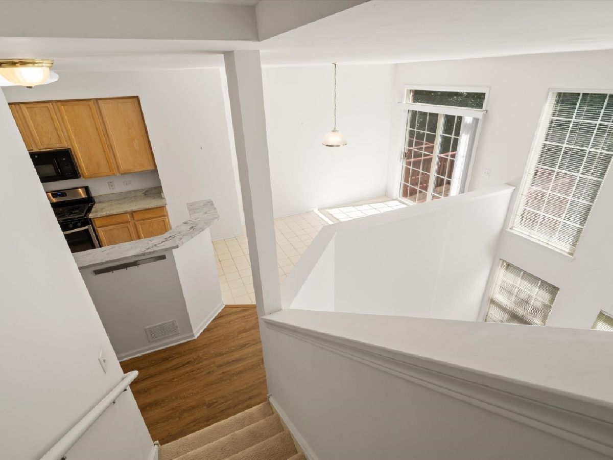 Close to downtown Palatine and train station, education, dining , entertainment and park district trails. Corner unit with private court yard, small fenced yard, small association with custom architectural design. Low HOA. Fairly new appliances. Very spacious with lots of natural light. FEATURES: 3BR/2.5Bath, 1,938 s.f. Wood Deck (under 5 yrs old), 9-ft first floor ceilings. Soaring volume ceiling. Stainless appliances: refrigerator, oven, dishwasher (under 5 years old). Microwave. Kitchen Granite countertops with deep sink. Spacious kitchen pantry. Washer & dryer. (under 5 years old). Pedestal sink in powder room. Cable/internet/security ready. Bay windows in living room and bedroom. Master bedroom has separate deep soak tub and shower with cultured marble tops and dual sinks, and huge walk-in closet. 2nd Bedroom has bay window with large walk-in closet. Bathrooms have full width mirrors and vanity. 2.5 Car attached garage. Huge storage room Eng. Basement. Corner location with lots of windows. Nice neighborhood. Air conditioning - Central heat - 50 gal water heater (under 5 years old). Ceramic floor - Kitchen - Bathrooms - foyer. 5 year old roof with new gutters Low HOA.