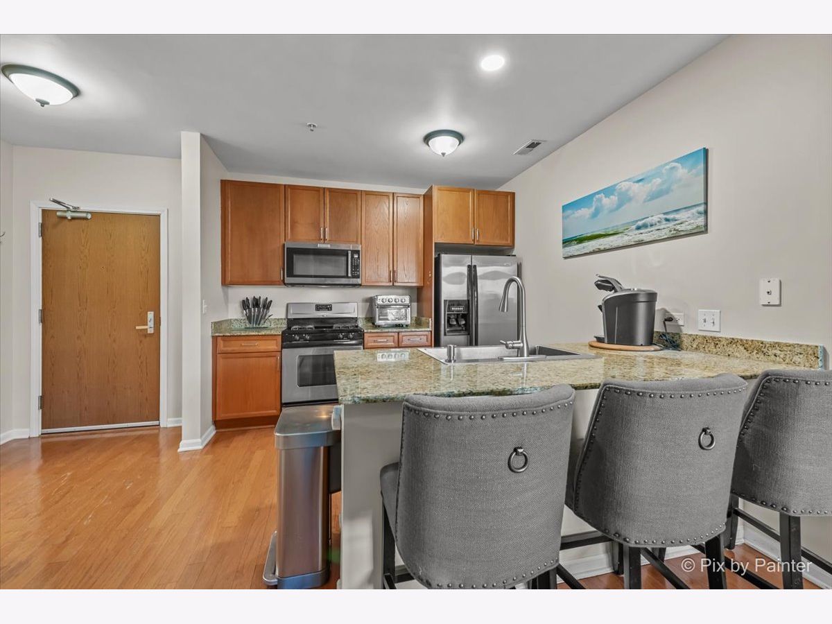 Start 2026 in this RARELY AVAILABLE, MOVE-IN-READY Condo! This SPACIOUS 1 BED + OFFICE/FLEX SPACE is Light & Bright in the SOUGHT AFTER, QUIET, COMMUTER-FRIENDLY, CLOSE to EVERYTHING, STYLISH ~ RESIDENCES AT THE GROVE. You'll enjoy the OPEN CONCEPT FLOOR PLAN, perfect for everyday living & entertaining. Plenty of Room for your Sectional & Big Screen TV in the Living Room with Expansive Sliding Glass Door to bring the outside, in. Windows & Slider overlook the EXPANSIVE GREEN SPACE & a NEW PATIO & LANDSCAPING set the stage to enjoy morning coffee or an after work beverage. Room for Multiple Cooks in the PARTY-SIZED KITCHEN with Bar Seating, GRANITE Counters & STAINLESS Appliances. Room to RELAX in the KING-SIZED BEDROOM with DUAL CLOSETS (No Sharing) & Attached Bath. TRULY MOVE-IN-READY. Plenty of UPDATES for your PEACE OF MIND: Private Patio & Landscaping, 2025 Washer/Dryer & Dishwasher, Microwave. Garbage Disposal and Bedroom Carpet (2022). Pull Right Into PARKING SPACE #1 in the HEATED GARAGE, Plus Your PERSONAL STORAGE Unit Directly in Front of Your Parking, as well as Bike Storage. The Monthly Assessment covers HEAT, WATER, and GAS, as well as access to a range of PREMIUM AMENITIES: FITNESS CENTER, PARTY ROOM, OUTDOOR TERRACE with Grills & Waterfall. A++ LOCATION, around the corner from Madison Street's vibrant dining scene, shops, the Blue Line, bus stops, bike trail, parks and the 290 expressway. The amenities of Oak Park are just minutes away too. This pet-friendly condo is the perfect place for easy, comfortable living. Don't miss out on this incredible opportunity! MAKE IT YOURS TODAY ~ BEFORE SOMEONE ELSE DOES!