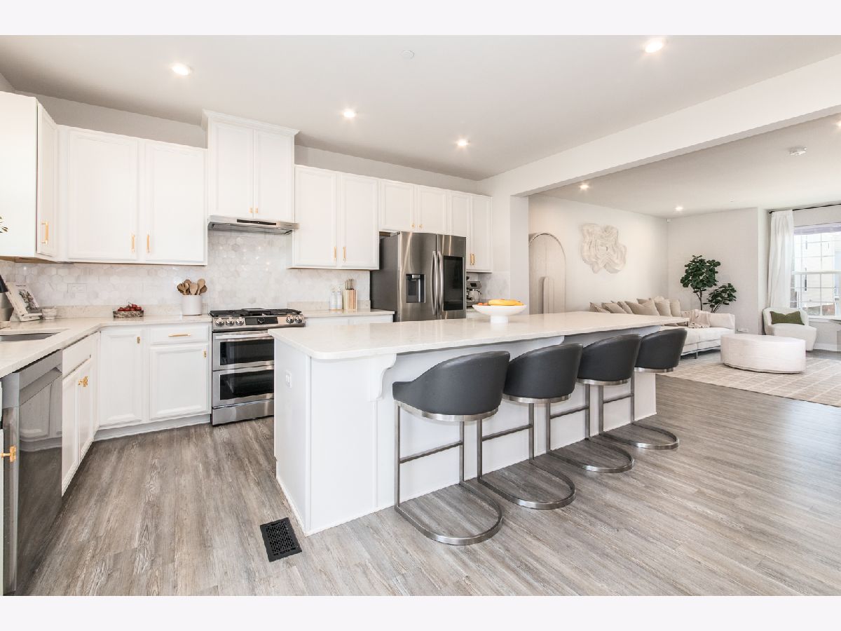 If you're looking for space, style, comfort and convenience, this stunning 3 story townhouse is ideal. Your main living level has a large open floor plan, with a nook off of living room that is perfect for a home office. 9' ceilings, bright and light with abundant windows and a pond view from the kitchen and balcony. Cabinets galore, quartz countertops and a spectacular 11' island for entertaining friends and family. Three bedrooms all situated on upper level, as well as laundry. Additional room off of the garage can be a play room, family room, or whatever fits your needs. Built in 2020, owners chose a premium lot with upgrades throughout and have added high end appliances, Italian marble backsplash and gorgeous lighting fixtures in the past 3 years.The Buckingham Place community offers a private park, children's playground, fenced in dog park, sports courts, and more! Close to Elementary School, Cumberland Metra Station as well as downtown shops and restaurants. Just perfect!