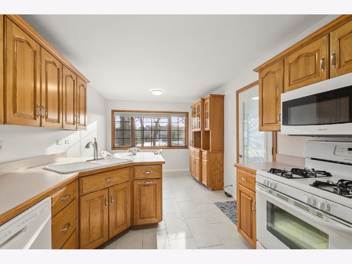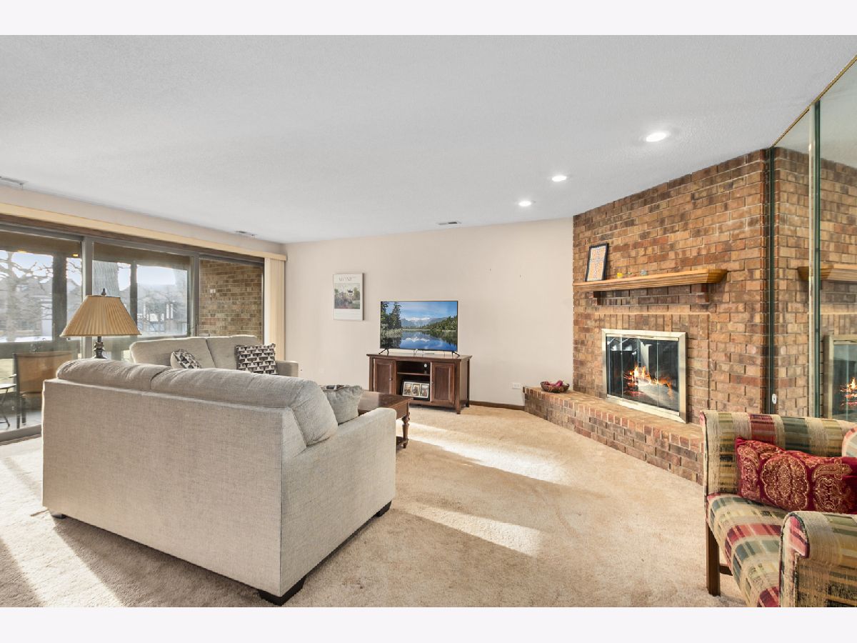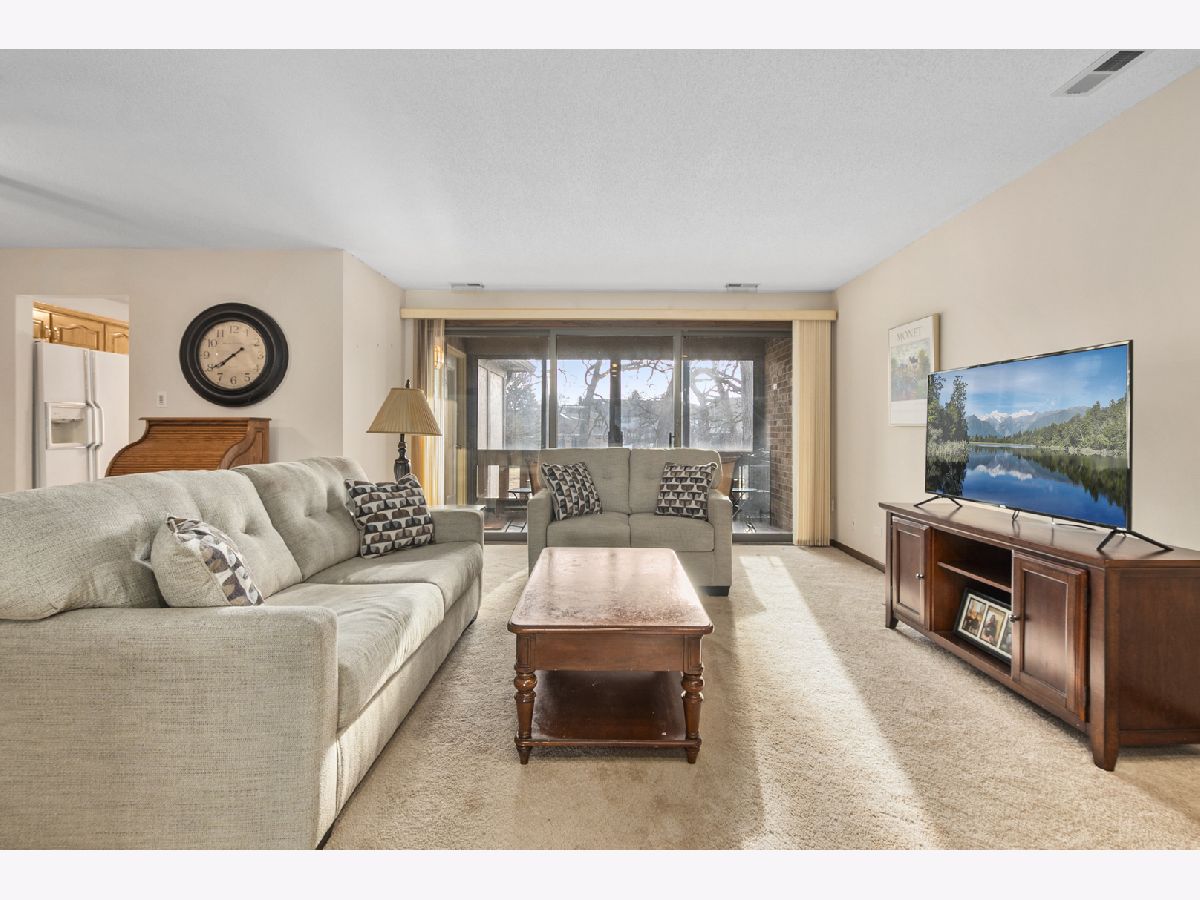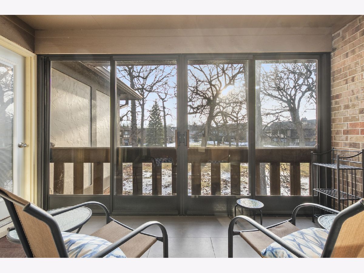 Welcome to the Oak Hills lifestyle, where resort-style amenities include a pool, clubhouse, tennis and pickleball courts, all set within a beautifully maintained golf course community. This well maintained, two bedroom condo features a spacious, open living and dining area highlighted by a gas fireplace - perfect for entertaining or family gatherings. The large eat-in kitchen offers ample cabinets, a built-in buffet with interior lighting and a dinette space that overlooks the tree-lined common area. Grab your coffee and settle in on your enclosed balcony with a beautiful view. Sliding doors and tiled floor make the balcony a cozy spot in early spring and fall! The generously sized primary bedroom includes a walk-in closet and bathroom with a custom walk-in shower. A second bedroom, a full bath and laundry room complete this fabulous condo. Storage closet can be found across from your one car garage space. Now is the moment to experience Oak Hills at its finest.