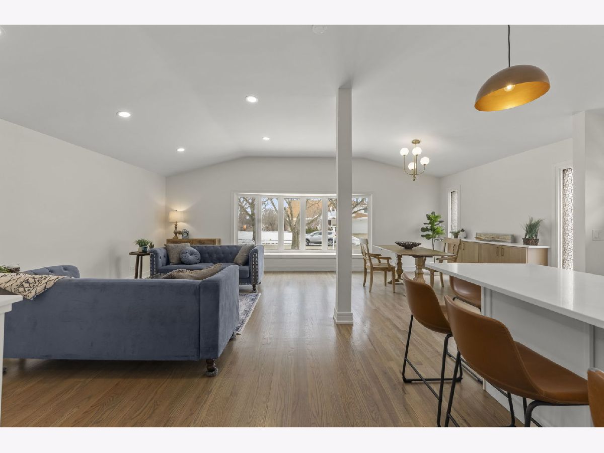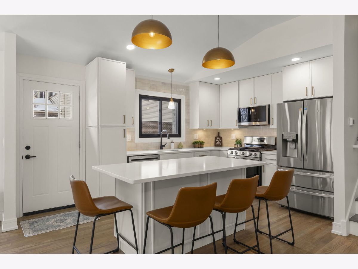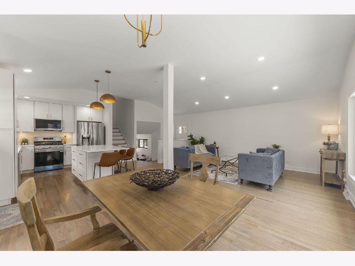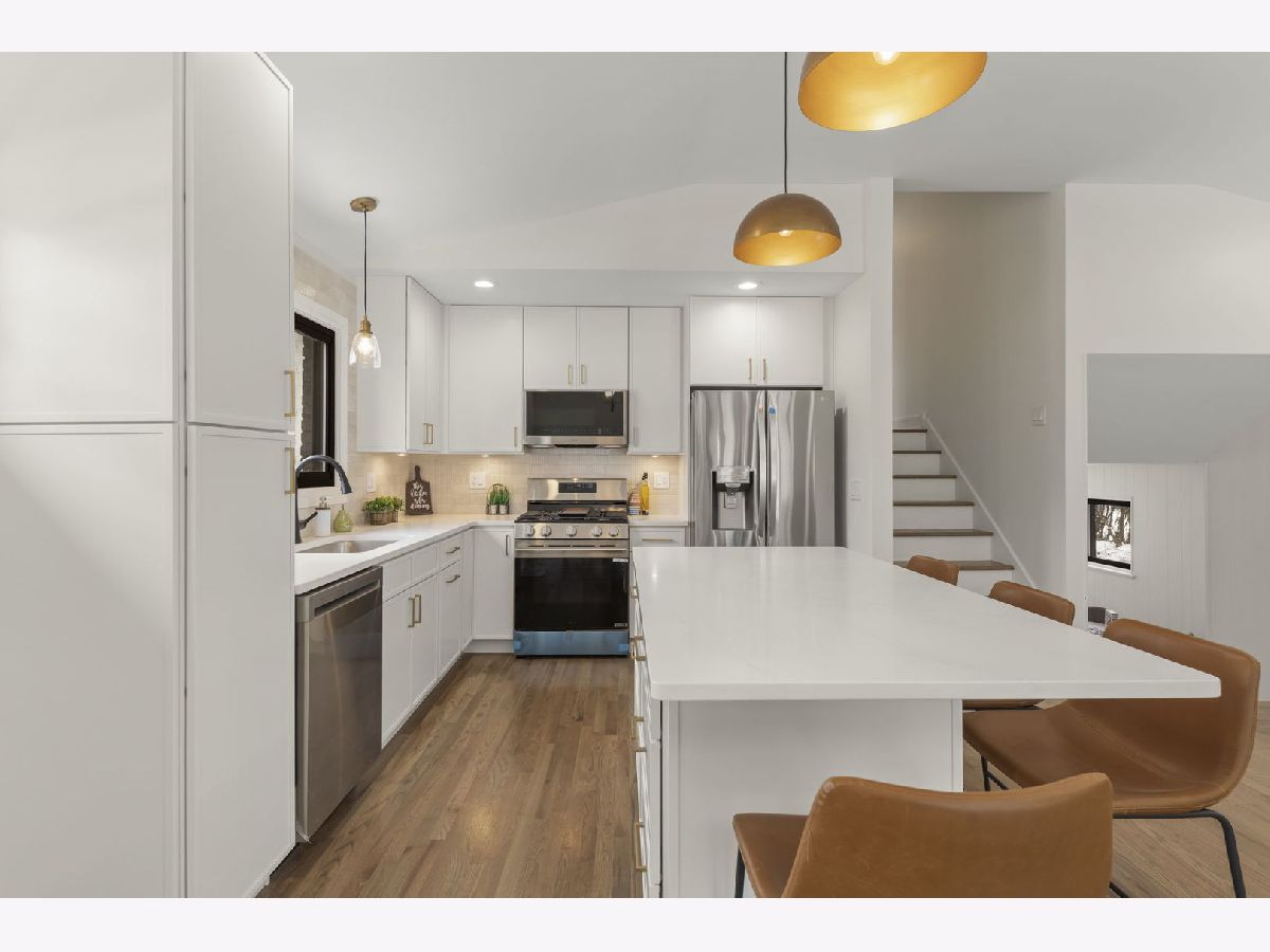 Step into this beautifully updated split-level home with a finished sub-basement that truly has it all! From the moment you walk through the door, you're greeted by soaring vaulted ceilings and an open, light-filled layout that effortlessly connects the kitchen, living, and dining spaces-perfect for both everyday living and entertaining. The main level shines with stunning medium brown and gray hardwood floors, designer light fixtures, sleek quartz countertops, custom cabinetry, and a stylish built-in feature in the dining area that adds both charm and function. Upstairs, you'll find three generously sized bedrooms, including a serene primary suite with direct access to a beautifully updated full bath featuring a double-sink vanity and a gorgeous custom-tiled shower. The lower level offers the perfect retreat with a cozy yet spacious family room that walks out to the backyard, along with a fourth bedroom or private home office and a fully remodeled bathroom-ideal for guests or flexible living. Need even more space? The finished sub-basement delivers an incredible bonus area that can be transformed into a media room, game room, playroom, or dream home gym. Outside, enjoy a generous lot and an oversized two-car garage, all tucked into a sought-after neighborhood close to shopping, dining, parks, schools, and West Ridge Center. This is the one buyers have been waiting for-stylish, spacious, and completely move-in ready!