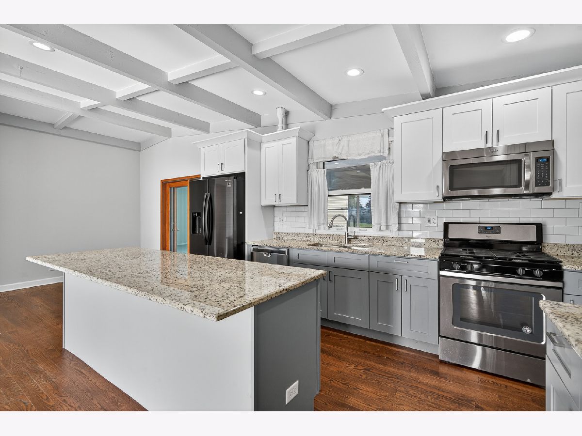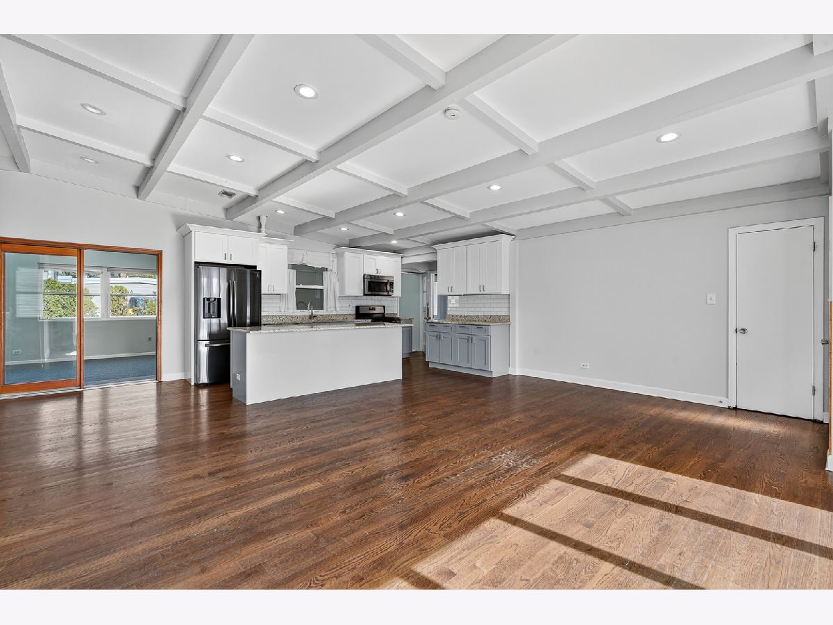 Beautifully updated and move-in ready 4-Bed/2-Bth ranch with over 3,000 sq ft of living space! This home is much larger than it appears and truly has space for everyone. As you enter the front door, you're greeted by a spacious, open concept living room, dining room and kitchen with hardwood floors, recessed lighting, coffered ceilings and plenty of natural light pouring in from the abundance of windows. The updated kitchen features a large island with a breakfast bar, all newer SS appliances and plenty of cabinet space. Behind the kitchen you'll find your massive family room with extra tall vaulted ceilings and skylights, letting in a ton of light. This room is perfect for movie nights, entertaining, a playroom and so much more. There are 4 great sized bedrooms on the main level along with an updated full bath. Downstairs, the finished basement provides even MORE living space, great for a rec room, game room, home theatre, play room or whatever suits your needs. The laundry and another full bath are also in the basement. Outside, enjoy your fenced-in yard and detached 2.5 car garage. Updates include new furnace 2024 & gut rehab in 2018. You truly can't beat this home or it's location in the top rated Maine South school district and close to parks, public transit, I-90, groceries and so much more. Schedule your tour today, this one won't last long!