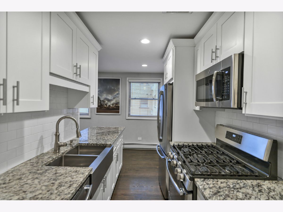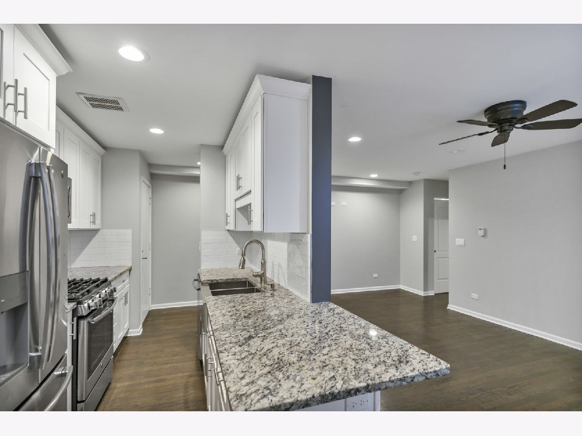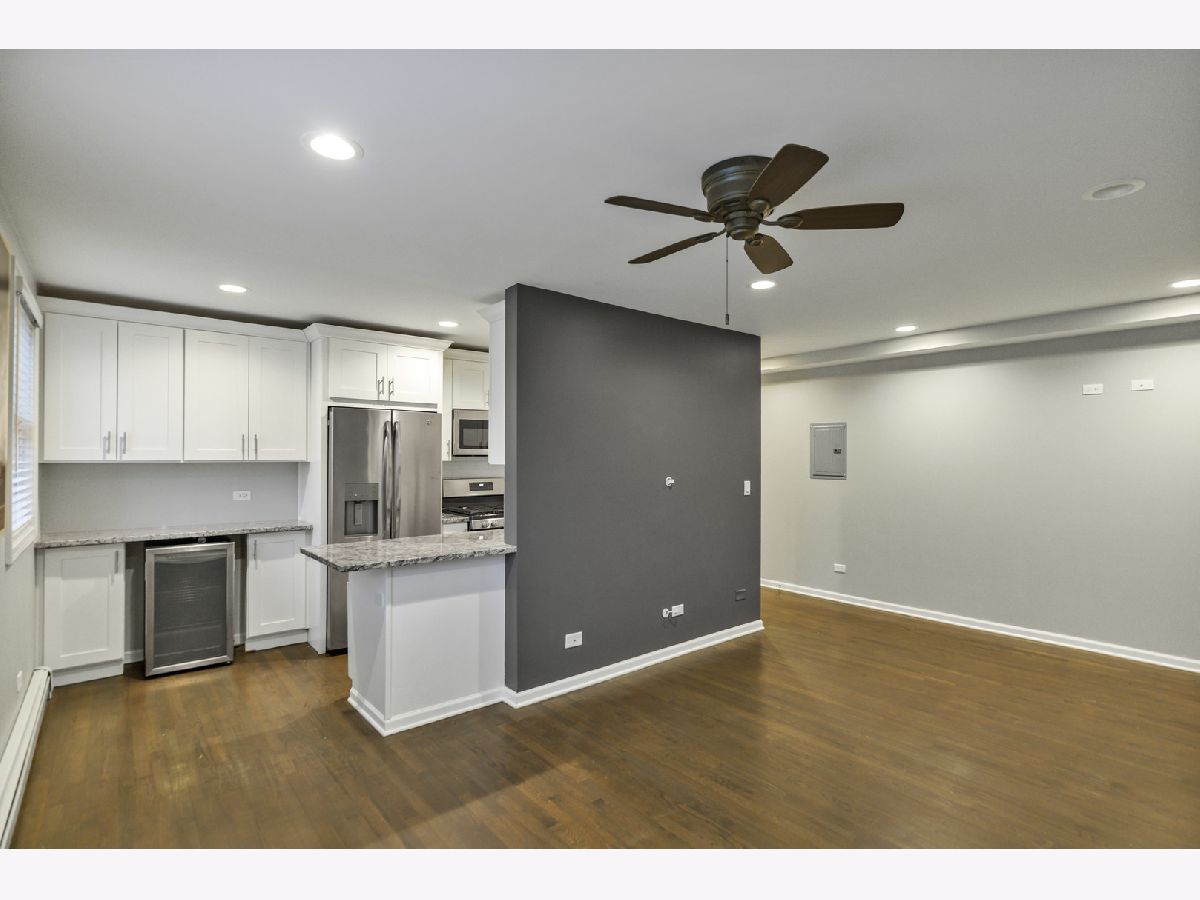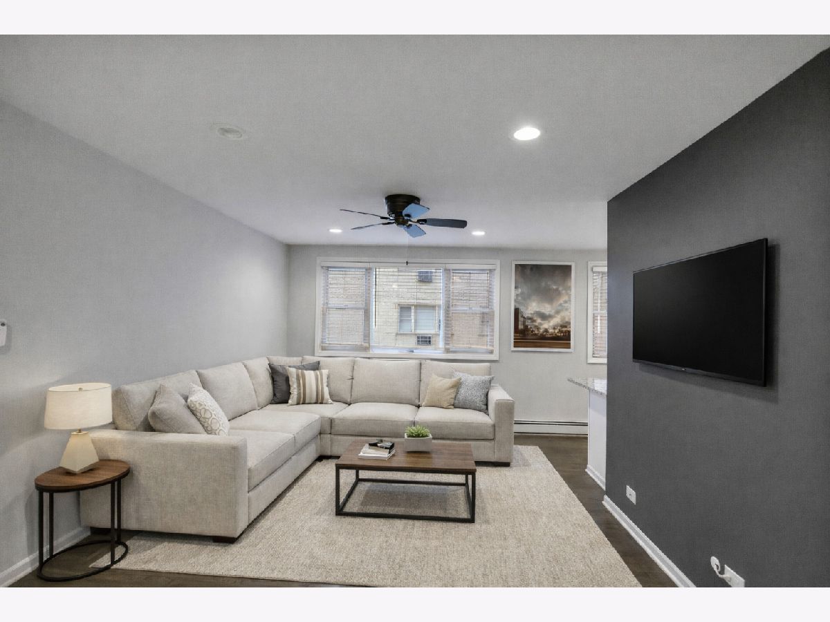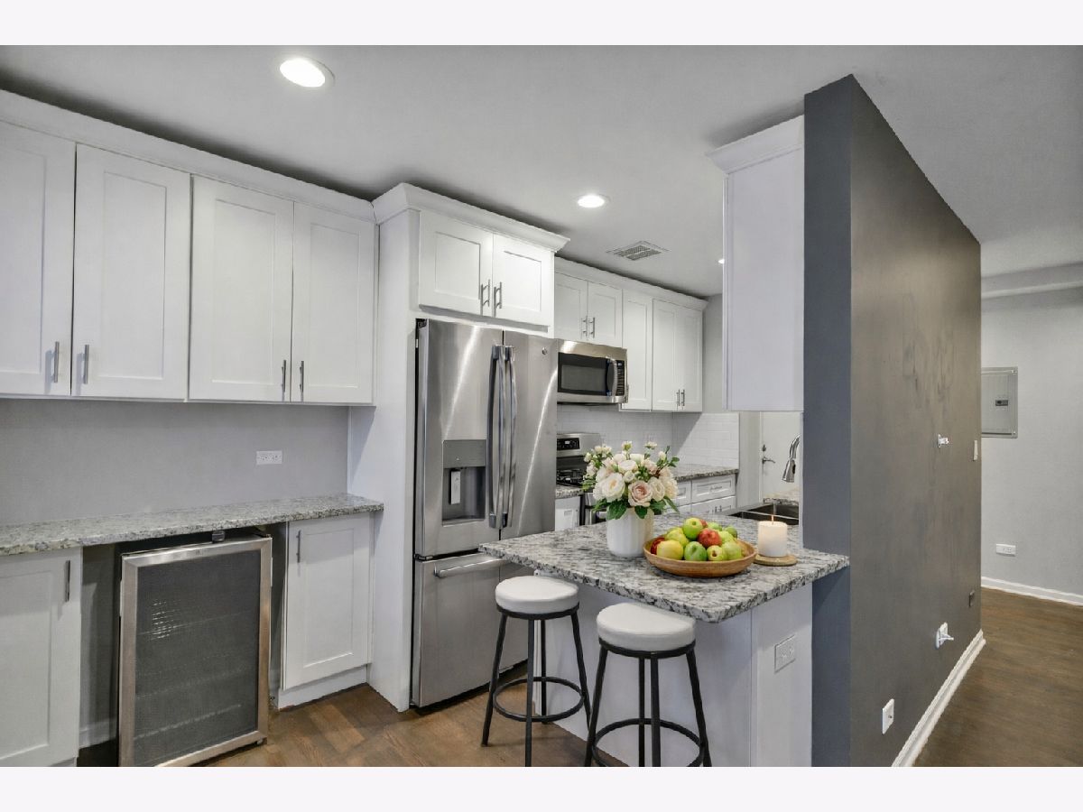 Welcome home to this beautifully maintained 1-bedroom, 1-bath condo offering comfort, style, and everyday convenience. A welcoming lobby sets the tone as you enter the building, leading to a thoughtfully designed residence with hardwood floors and recessed lighting throughout the main living areas. The spacious living room provides the perfect backdrop for relaxing or entertaining, flowing seamlessly into a functional galley kitchen complete with a breakfast bar, and ample cabinet and counter space. The primary bedroom is both comfortable and practical, featuring built-in shelving and generous closet space for easy organization. The full bath showcases elegant tile details and includes a tub with shower for timeless appeal. Additional highlights include one garage parking space and convenient common-area coin laundry. Perfectly positioned near Elm Middle School, Dominican University, and Concordia University Chicago, this home offers close proximity to dining, groceries, shopping, and outdoor recreation-bringing lifestyle and location together in one exceptional opportunity.