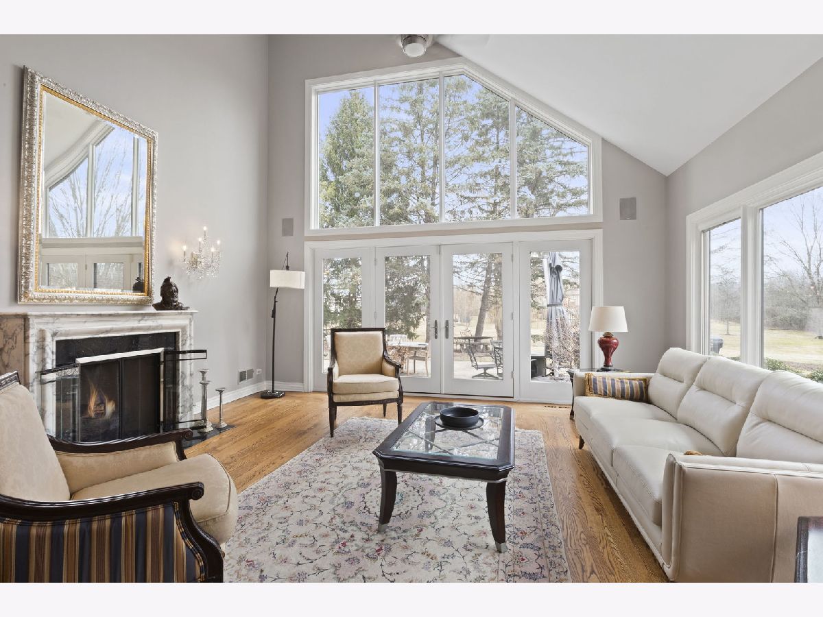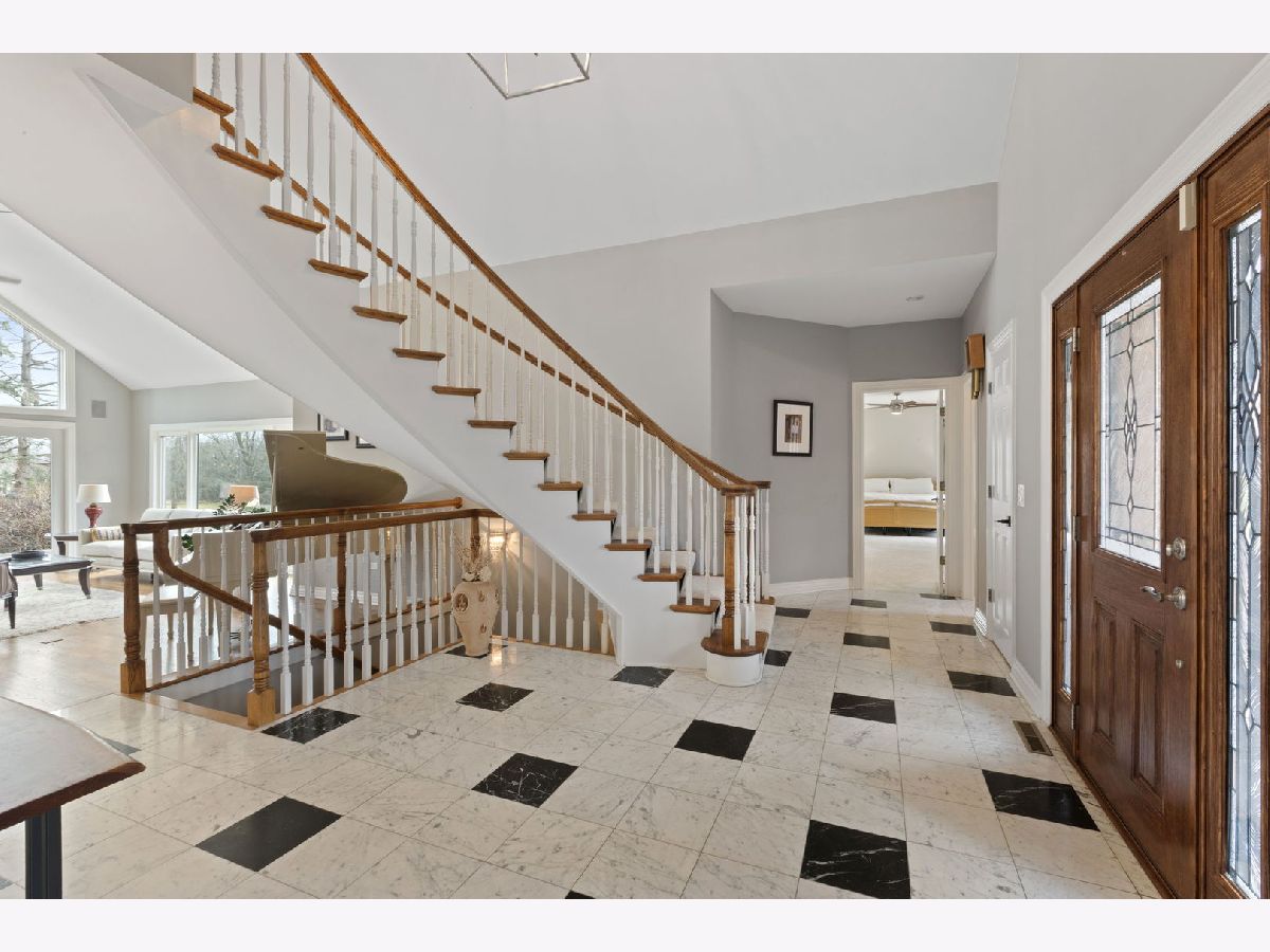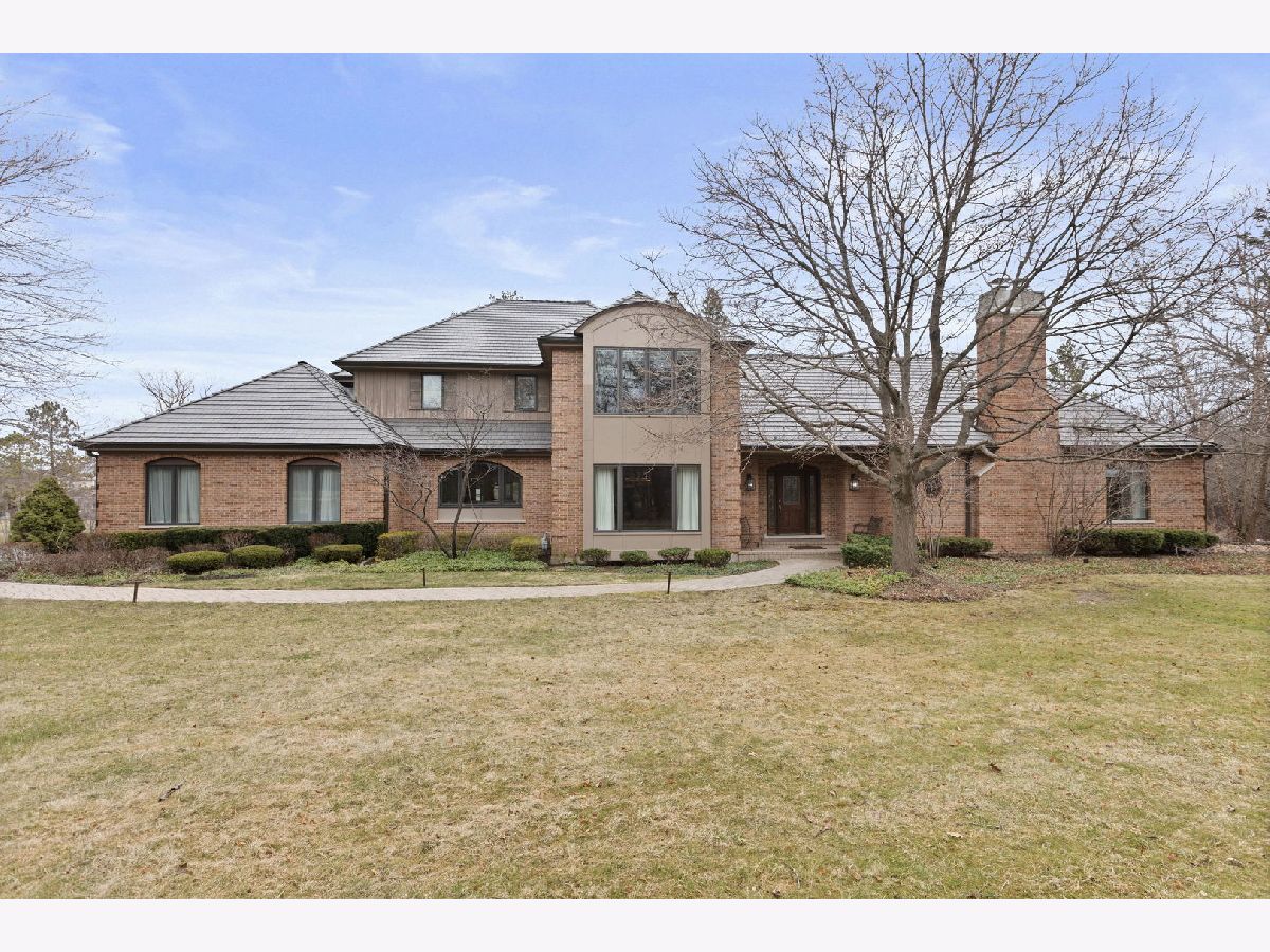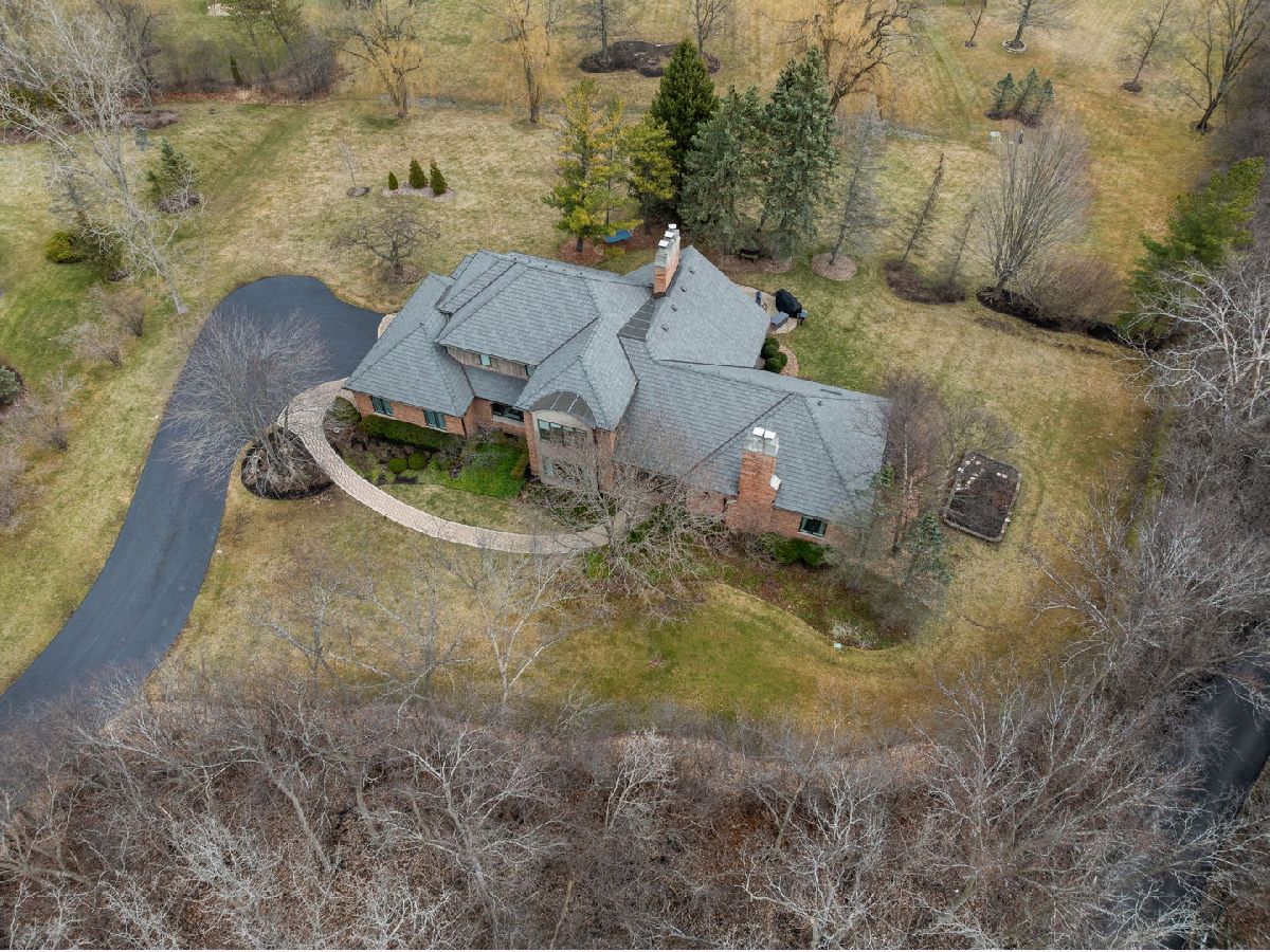 Set back along historic Ridge Road, this elegant brick manor stands with distinction along one of Lake Forest's most coveted residential corridors. A sweeping drive introduces a thoughtfully designed residence of over 4,200 square feet, highlighted by a first-floor primary suite and crowned by a new DaVinci roof in 2024. Framed by expansive, mature grounds spanning 1.38 acres, the home enjoys a serene, estate-like setting that feels both private and deeply rooted in its surroundings. Inside, a dramatic double-height foyer with curved staircase and marble floors introduces light-filled interiors defined by exquisite millwork, volume ceilings, and arched windows and doorways. Formal living and dining rooms provide spacious areas to gather and showcase sweeping views of the property. The soaring two-story family room with clerestory windows, fireplace, and wet bar, opens to a brick paver patio surrounded by mature landscaping. Timelessly renovated in 2024, the kitchen features granite counters, Sub-Zero refrigerator, double ovens, a large island, and sunny breakfast area with seamless entertaining flow to the dining, family, and sun rooms. The main-level primary suite is a true sanctuary with a fireplace, private office/sitting room, two walk-in closets and a large spa bath appointed with a whirlpool tub, walk-in shower, and dual vanities. Upstairs are three additional bedrooms, including one with an ensuite bath and two bedrooms share a very spacious hall bathroom. The finished lower level expands the home's versatility by threading together a large recreation space, a bar area with mini fridge, half bath, cedar closet, and abundant storage options. A first-floor laundry room, formal and informal powder bathrooms, and three-car attached garage, featuring epoxy flooring and EV charging, complete the home's amenities. Centrally located just moments from Lake Forest's historic downtown, lakefront, and nationally recognized schools, this Ridge Road residence represents a rare convergence of architectural character, privacy, and expansive land.
