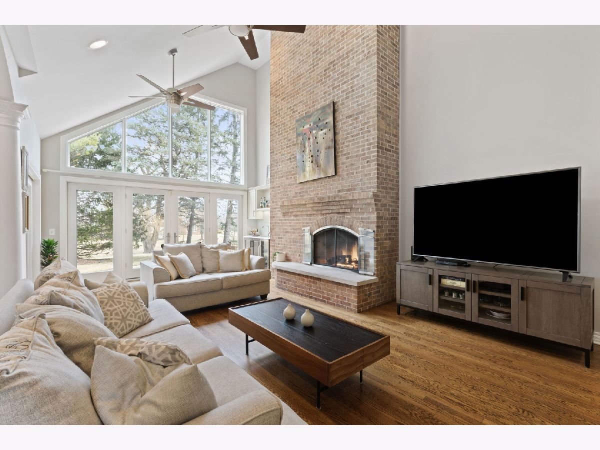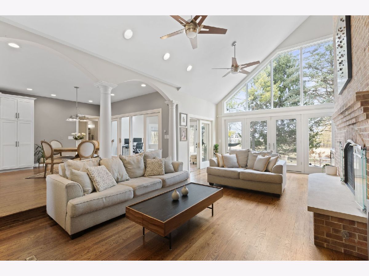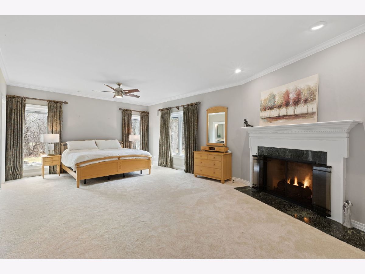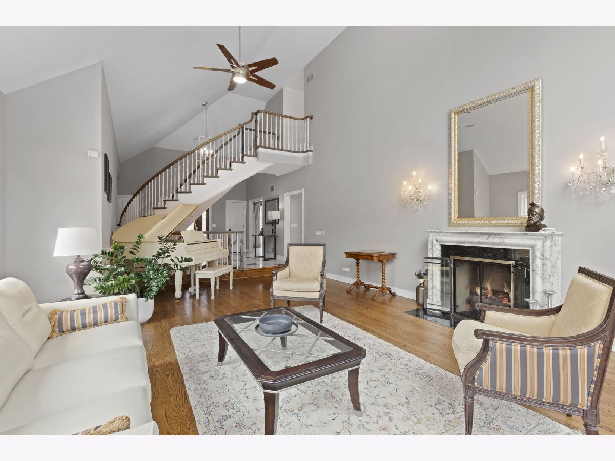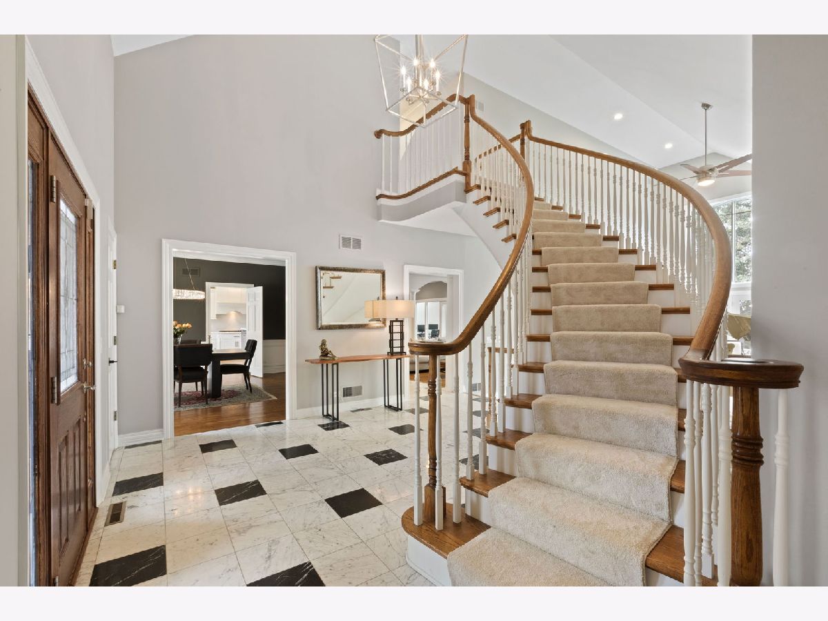 Set back along historic Ridge Road, this elegant brick manor stands with distinction along one of Lake Forest's most coveted residential corridors. A sweeping drive introduces a thoughtfully designed residence of over 4,200 square feet, highlighted by a first-floor primary suite and crowned by a new DaVinci roof in 2024. Framed by expansive, mature grounds spanning 1.38 acres, the home enjoys a serene, estate-like setting that feels both private and deeply rooted in its surroundings. Inside, a dramatic double-height foyer with curved staircase and marble floors introduces light-filled interiors defined by exquisite millwork, volume ceilings, and arched windows and doorways. Formal living and dining rooms provide spacious areas to gather and showcase sweeping views of the property. The soaring two-story family room with clerestory windows, fireplace, and wet bar, opens to a brick paver patio surrounded by mature landscaping. Timelessly renovated in 2024, the kitchen features granite counters, Sub-Zero refrigerator, double ovens, a large island, and sunny breakfast area with seamless entertaining flow to the dining, family, and sun rooms. The main-level primary suite is a true sanctuary with a fireplace, private office/sitting room, two walk-in closets and a large spa bath appointed with a whirlpool tub, walk-in shower, and dual vanities. Upstairs are three additional bedrooms, including one with an ensuite bath and two bedrooms share a very spacious hall bathroom. The finished lower level expands the home's versatility by threading together a large recreation space, a bar area with mini fridge, half bath, cedar closet, and abundant storage options. A first-floor laundry room, formal and informal powder bathrooms, and three-car attached garage, featuring epoxy flooring and EV charging, complete the home's amenities. Centrally located just moments from Lake Forest's historic downtown, lakefront, and nationally recognized schools, this Ridge Road residence represents a rare convergence of architectural character, privacy, and expansive land.
