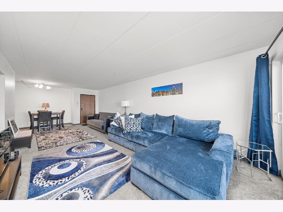 Welcome to this beautifully updated top-floor condo located in the heart of Bridgeview. This spacious one-bedroom, one-bath unit offers modern living with a large living room filled with natural light, perfect for relaxation and entertaining. The designated dining area seamlessly connects to a stylish galley kitchen equipped with high-quality appliances, making cooking a delight. Step outside to the west-facing balcony, an ideal spot to enjoy your morning coffee while soaking in the sunrise. The condo includes a water heater installed in 2022, ensuring comfort and efficiency. You'll also appreciate the convenience of one designated parking space with additional storage, as well as a laundry facility located in the building. Pets are welcome! Accessibility is enhanced by the elevator in the flexicore building, which is conveniently situated near popular restaurants, shopping destinations, local parks, and the Bridgeview Community Center. Experience modern living with unmatched convenience in this charming condo!