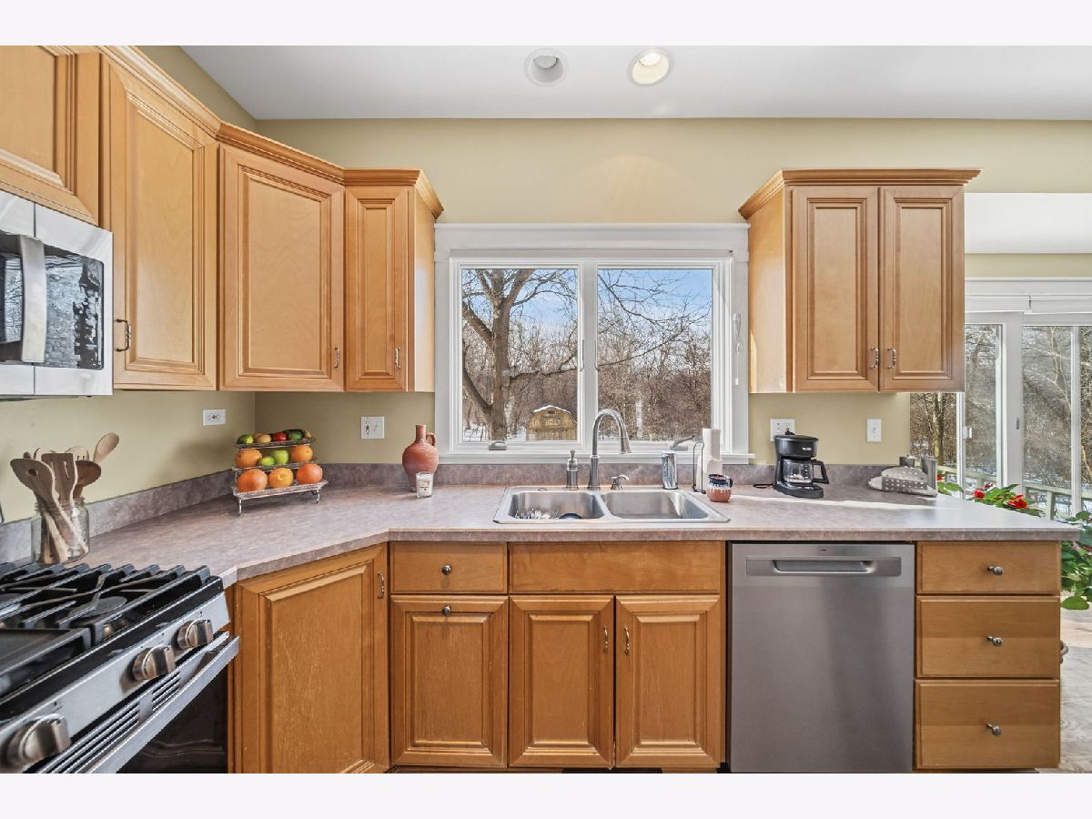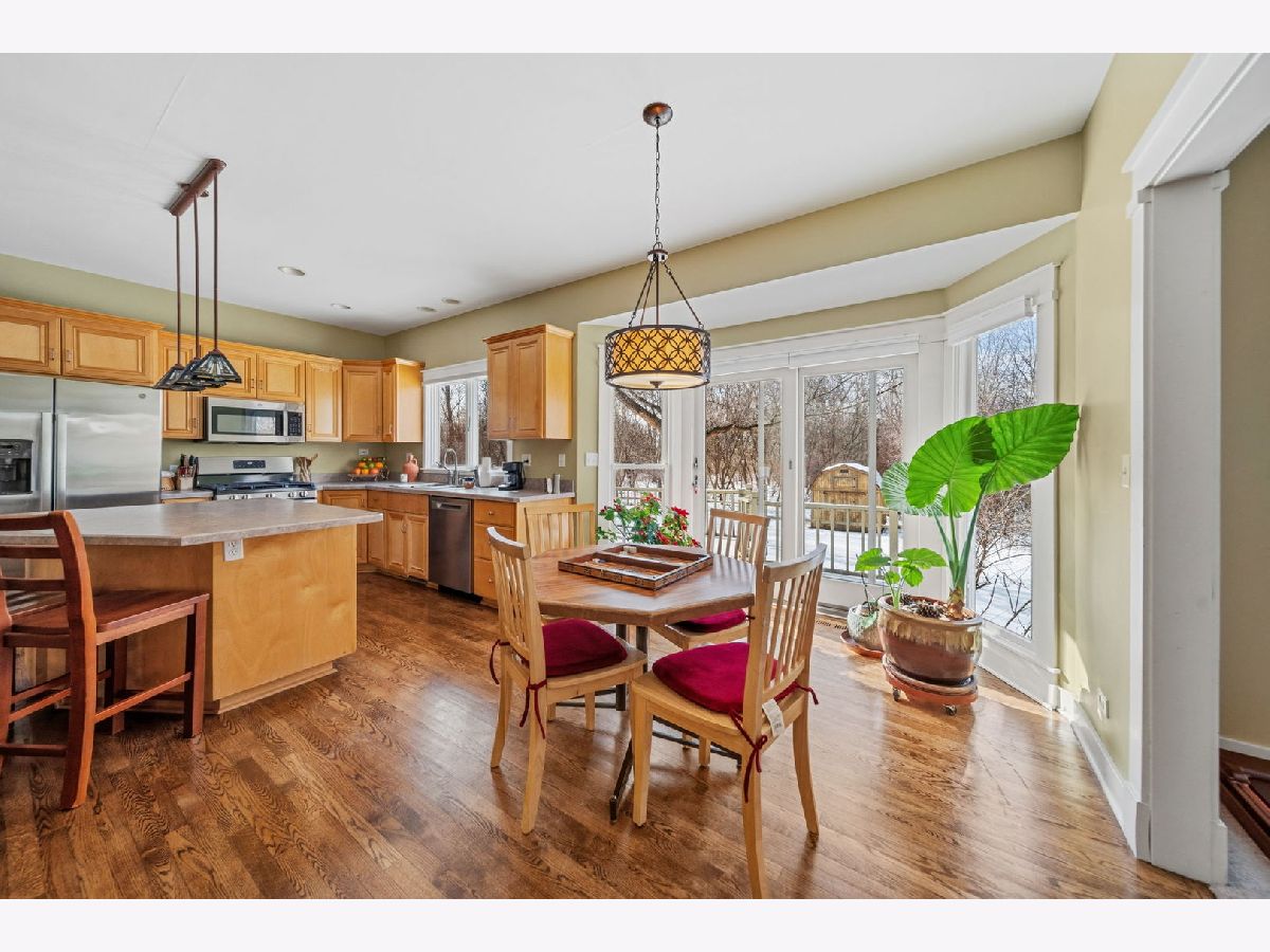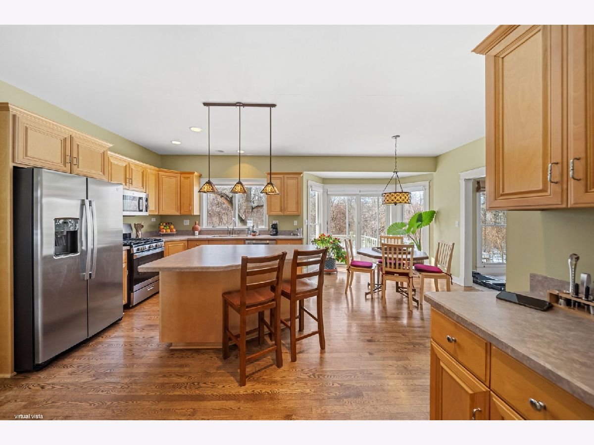 This inviting home is designed for comfortable living, with spacious rooms and thoughtful features throughout. The kitchen offers a large island perfect for everyday meals, homework time, and gathering together. Stainless steel appliances, abundant cabinetry, and a walk-in pantry complete this well-appointed space. The adjoining family room is both cozy and welcoming, centered around a beautiful stone fireplace and stunning views that create the ideal setting for relaxing evenings. The primary suite provides a peaceful retreat, featuring an oversized ensuite with a jetted tub and an attached flex space ideal for a nursery, playroom, workout room, dressing area, or home office. Three additional upper-level bedrooms offer comfortable accommodations for family or guests and share a spacious hall bath with a double vanity. A second-floor laundry room adds convenience to busy daily routines. Practical touches like a large mudroom with a dog shower and a finished basement with room to grow support an active family lifestyle. Outside, the expansive deck overlooks 2.75 wooded acres where children and adults alike can explore, play, and unwind. Mature fruit trees and a charming chicken hutch add character and hands-on opportunities to enjoy the outdoors together. Set in a highly desirable area with top-rated schools and close to all that the Fox River Valley has to offer, this home presents a rare blend of space, privacy, and natural beauty-an ideal place to put down roots and create lasting family memories.
