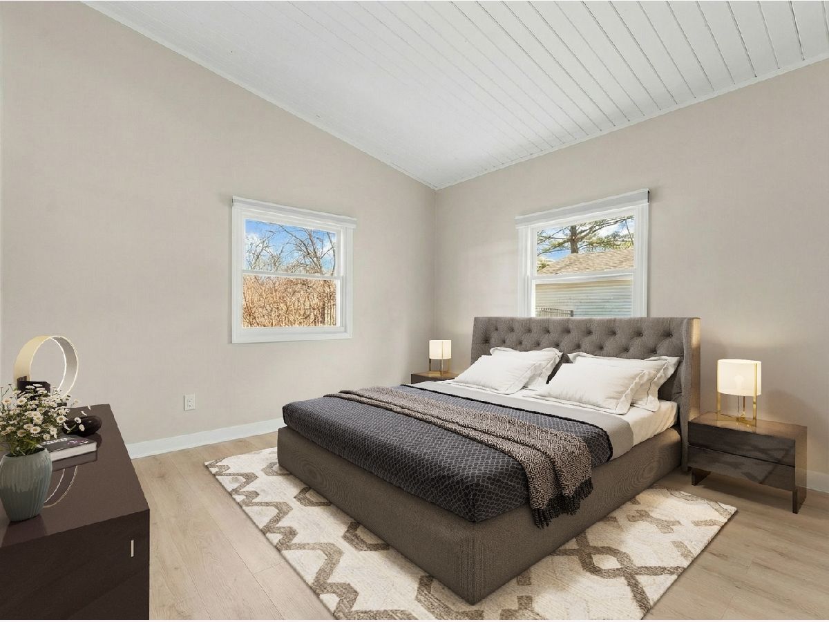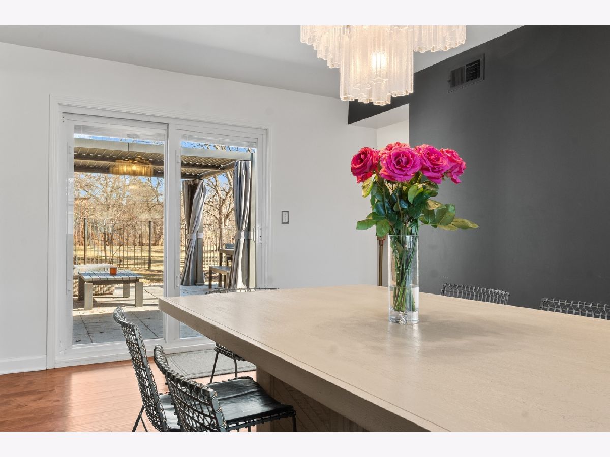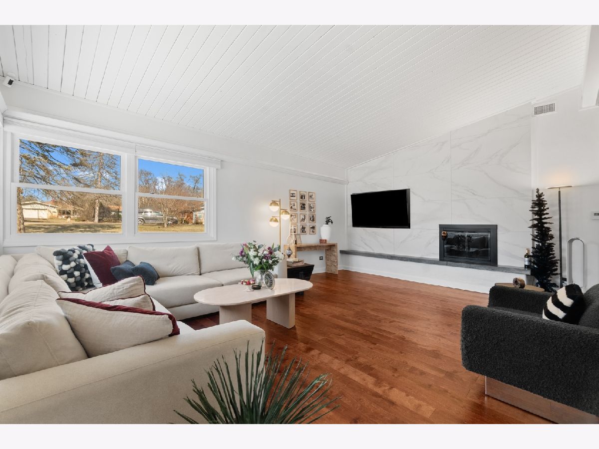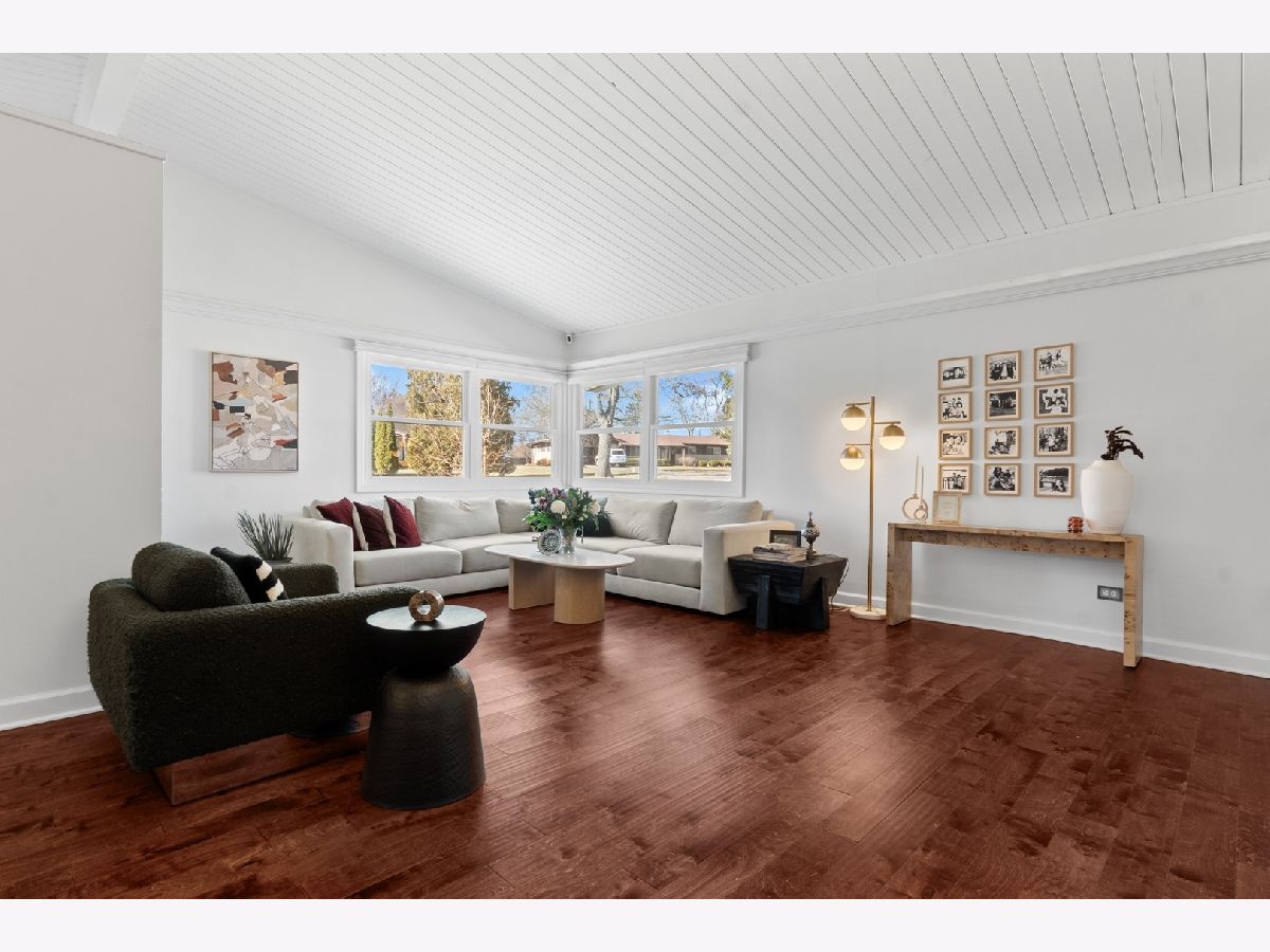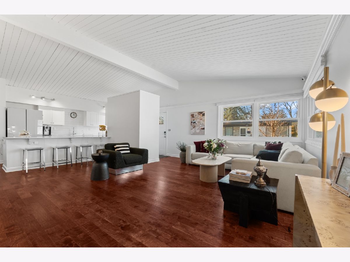 ** PROSPECT SCHOOL DISTRICT** Walking distance to the Metra/the vibrance of all Downtown Mount Prospect has to offer (award winning restaurants, parks, recently built library and much more). Discover the ease of single-level living in this beautifully remodeled ranch, set on a private half-acre lot at the end of a quiet cul-de-sac. Fully renovated in 2023, this four-bedroom, two-and-a-half-bath home blends fresh modern finishes with the tranquility of a wooded, natural setting. A newly finished driveway, updated exterior lighting, full exterior painting, and a 2023 roof create an inviting first impression. Inside, vaulted ceilings and an open, versatile floor plan offer effortless flow throughout the home. A gracious living and dining area welcomes you with warm hardwood floors, serene views of the yard, and a newly replaced fireplace that anchors the room. The kitchen sits at the heart of the home and was refreshed with new millwork, abundant counter space, a very large island, with 2024 appliances and ample cabinetry. The adjoining dining room opens directly to the expansive patio, ideal for entertaining, dining al fresco, or enjoying quiet mornings overlooking the large backyard and wooded surroundings. A first-floor laundry and mudroom, complete with a new washer installed in 2025, add everyday convenience. The private primary suite is thoughtfully separated from the additional bedrooms and features newly updated flooring, a custom closet build-in, and a remodeled bath with new cabinetry, lighting, and fixtures. Three additional bedrooms offer space for family, guests, or a dedicated office. All bathrooms were refreshed in 2023 with new cabinets etc and the entire home was fully repainted to create a cohesive, modern feel. Additional updates include 2018 windows, furnace, and AC; a 2024 water heater; and updated interior millwork and doors throughout. This home offers exceptional flexibility, privacy, and turnkey comfort-perfect for year-round enjoyment in a peaceful natural setting, yet close to everything you need.