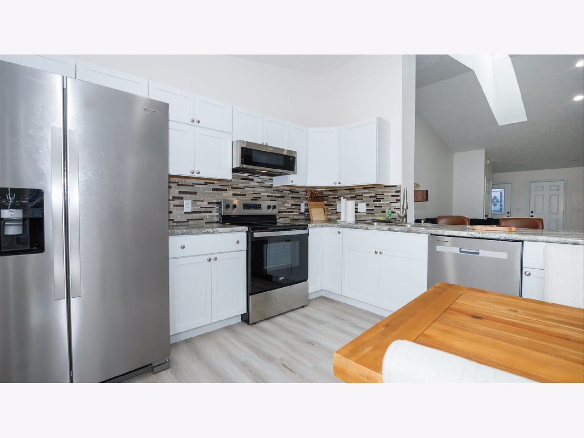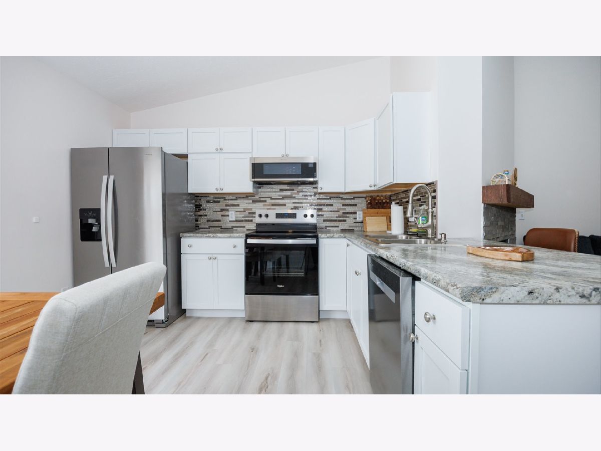 Welcome to this remodeled 3 Bed 3 Bath Home in Old Farm Lakes. Walk into a large and welcoming open concept layout with vaulted ceilings and a spacious living room. The eat-in kitchen features stylish countertops, a tile backsplash, and modern cabinets with sleek hardware. Ample natural light, a skylight, and a contemporary fireplace with a floating mantel and stacked stone surround. The main floor includes a primary suite with a private bath and walk-in closet, a second bedroom, a fully remodeled bathroom, and main floor laundry. The finished basement offers a bar, family room, third bedroom, and an additional full bathroom. Perfect for entertaining or extra living space. Recent updates: Refrigerator, Gas Range, Oven are a year old, Roof (2019), Flooring (2022), Lighting (2022), Fireplace (2022), Countertops (2020), Sump Pump (2021), Garage Motor & Spring (2022, Wi-Fi enabled), and Bathroom Remodel (2020). Don't miss your opportunity on this updated beauty!