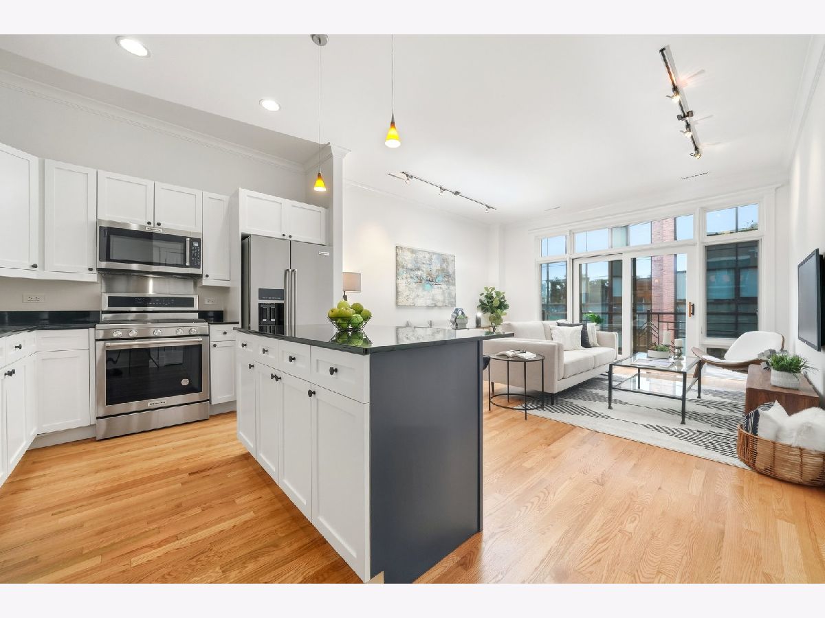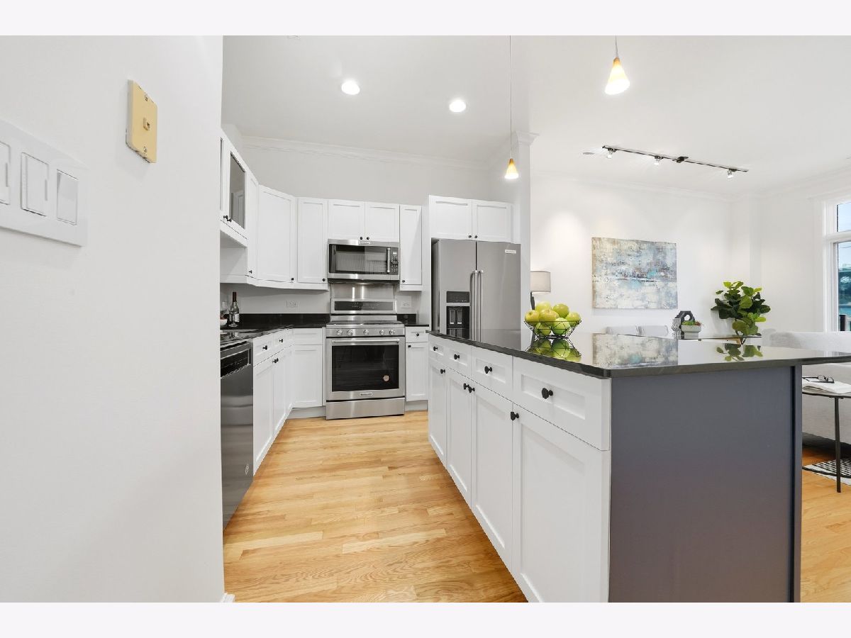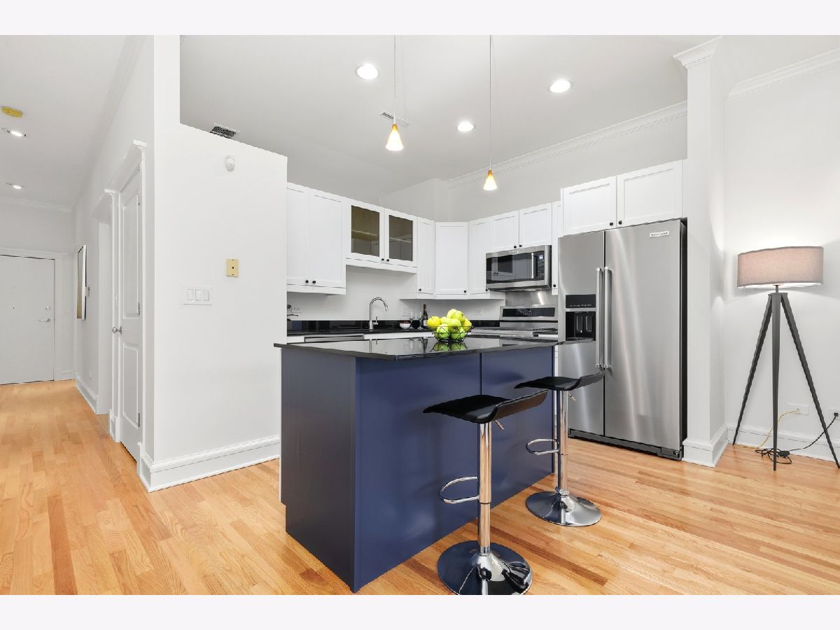 Welcome to 800 West Cornelia, designed by architects Sullivan & Goulette and built by GVP Development (recipient of numerous neighborhood awards in Lakeview & Lincoln Park). 800 West Cornelia is a boutique soft loft "elevator" building situated in the heart of the North Halsted, Wrigley Field & East Lakeview area. Unit 307 has undergone an amazing facelift with every square inch painted, refinished and stained hardwood floors, new plush carpet in the bedroom and every cabinet door (kitchen & bathroom) were restored and painted along with new hardware. Almost 10' ceilings and gorgeous crown molding throughout. The Cook's kitchen features beautiful white contemporary cabinetry, double sink, granite counter tops, stainless steel appliances and a large island with more cabinets and room for bar stools. The huge spa bathroom has great storage space, double sinks and an enormous walk-in shower. The living space offers space for several furniture placement, floor to ceiling windows and best of all a large east facing Balcony. The interior bedroom has a step-in closet with organizers. Unit 307 also has central heat and air, recess lighting and in-unit laundry. Here's the age of the appliances: Oven, Refrigerator, Sink & Microwave 2023 | Dishwasher 2018 | Full-Size Front Loading Washer & Dryer 2018 | AC 2020 | HVAC was serviced in 2022. Walk to everything that East Lakeview has to offer, Boystown, Wrigley Field, The Lake & all the shops and restaurants in the neighborhood....what more can you say, except, Welcome Home.