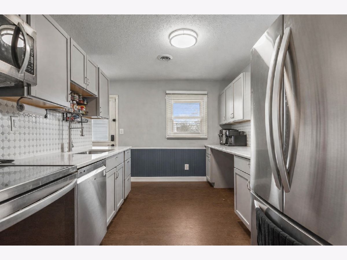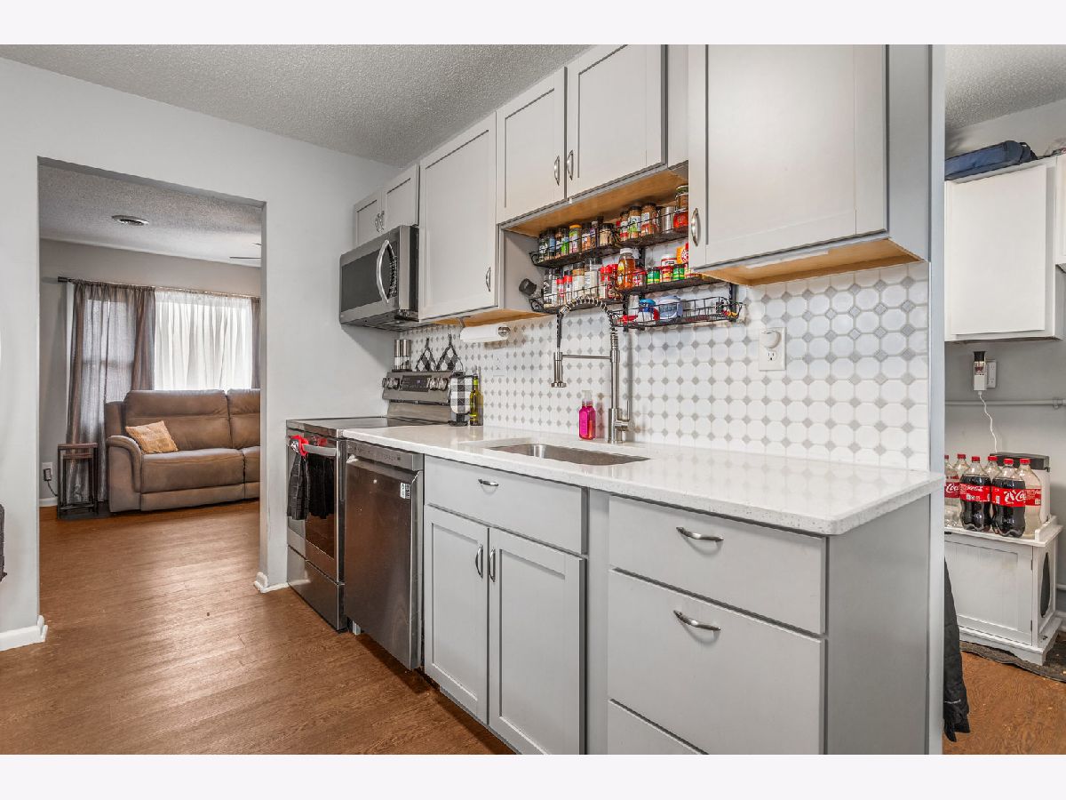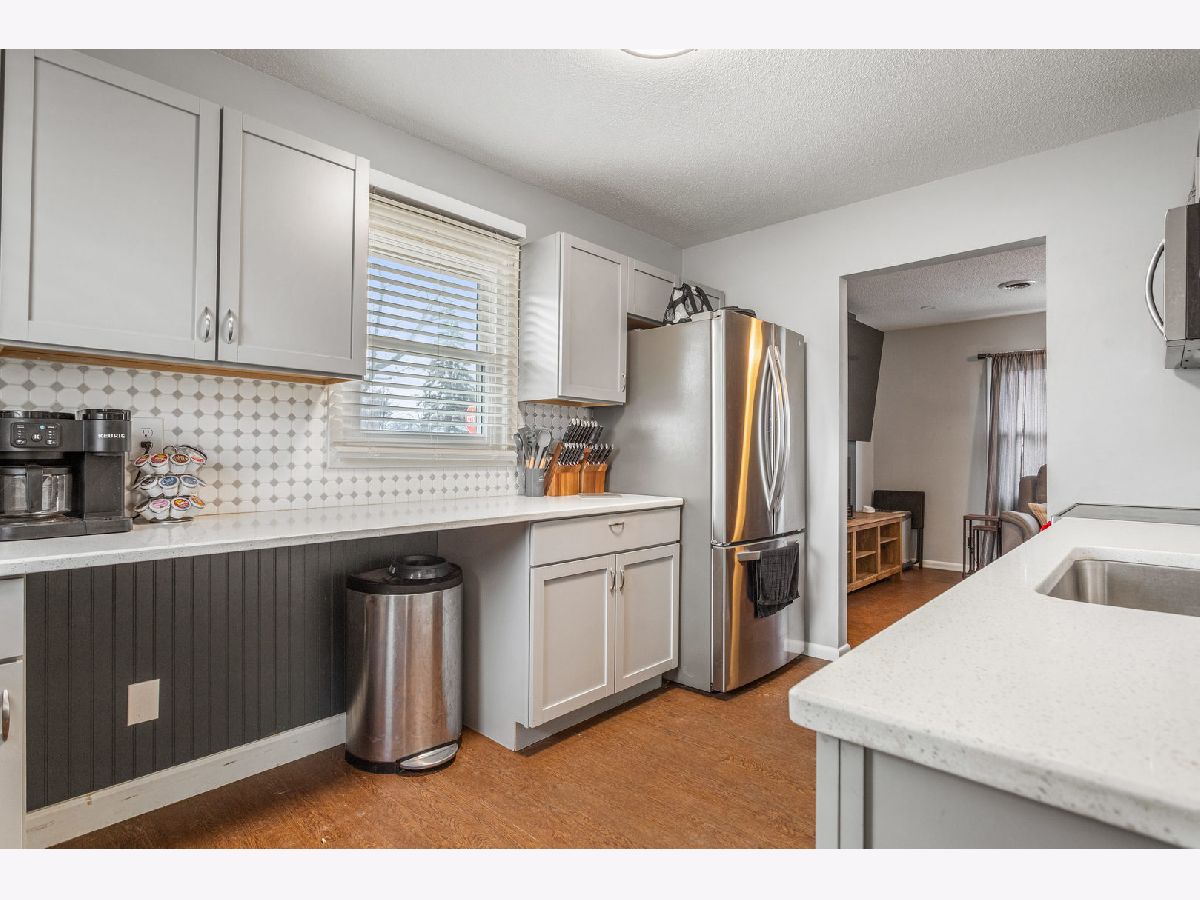 This inviting single-story home offers 3 bedrooms and 1.5 bathrooms on a generous corner lot. The living room is filled with natural light and features a striking electric fireplace as the focal point. The updated kitchen showcases quartz countertops, a classic tile backsplash, stainless steel appliances, and flows seamlessly into a convenient mud room, pantry, and laundry area just inside the back door. Beautiful LVP flooring runs throughout the home, adding both style and durability. The full bathroom features a beautifully tiled shower. Outside, the private backyard is designed for entertaining with a privacy fence and low-maintenance faux grass. A spacious detached 1.5-car garage completes this great combination of comfort, thoughtful updates, and outdoor space.