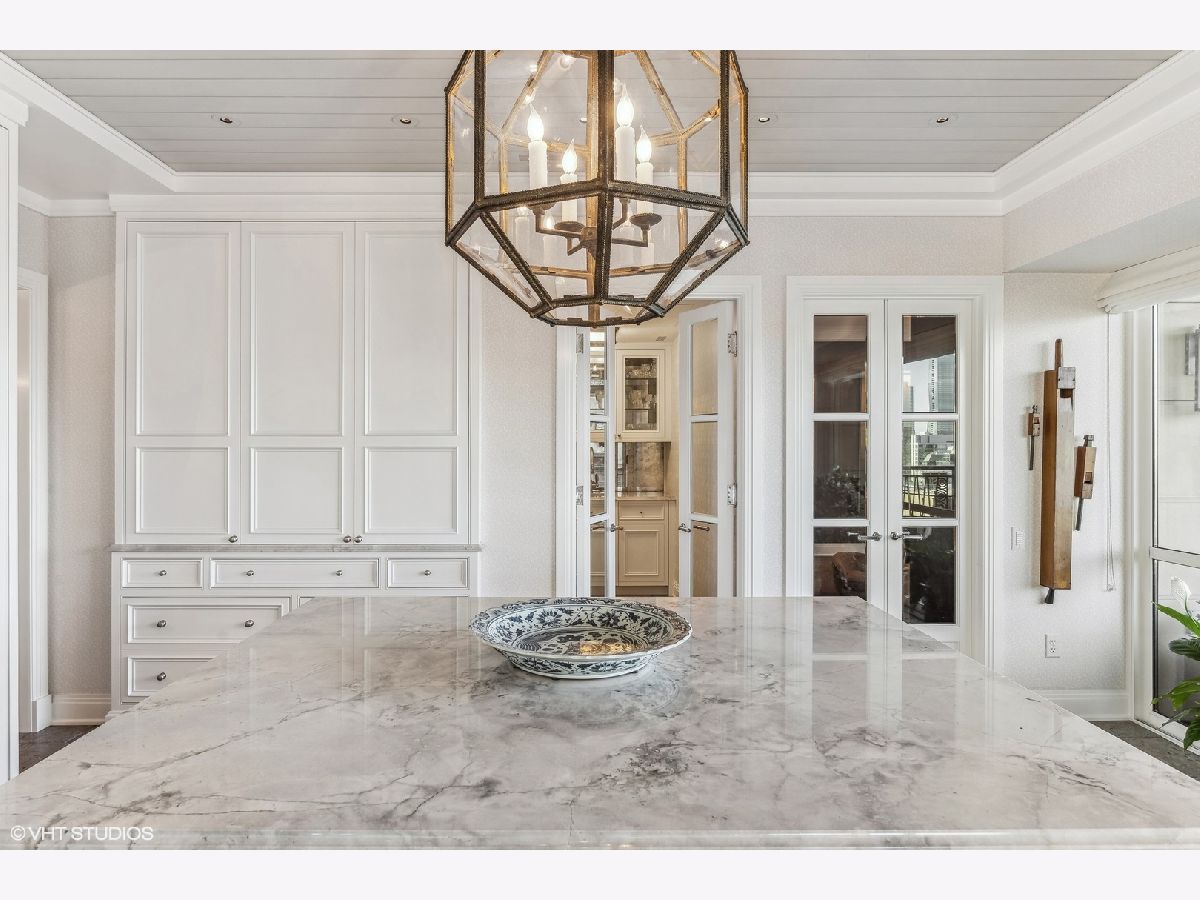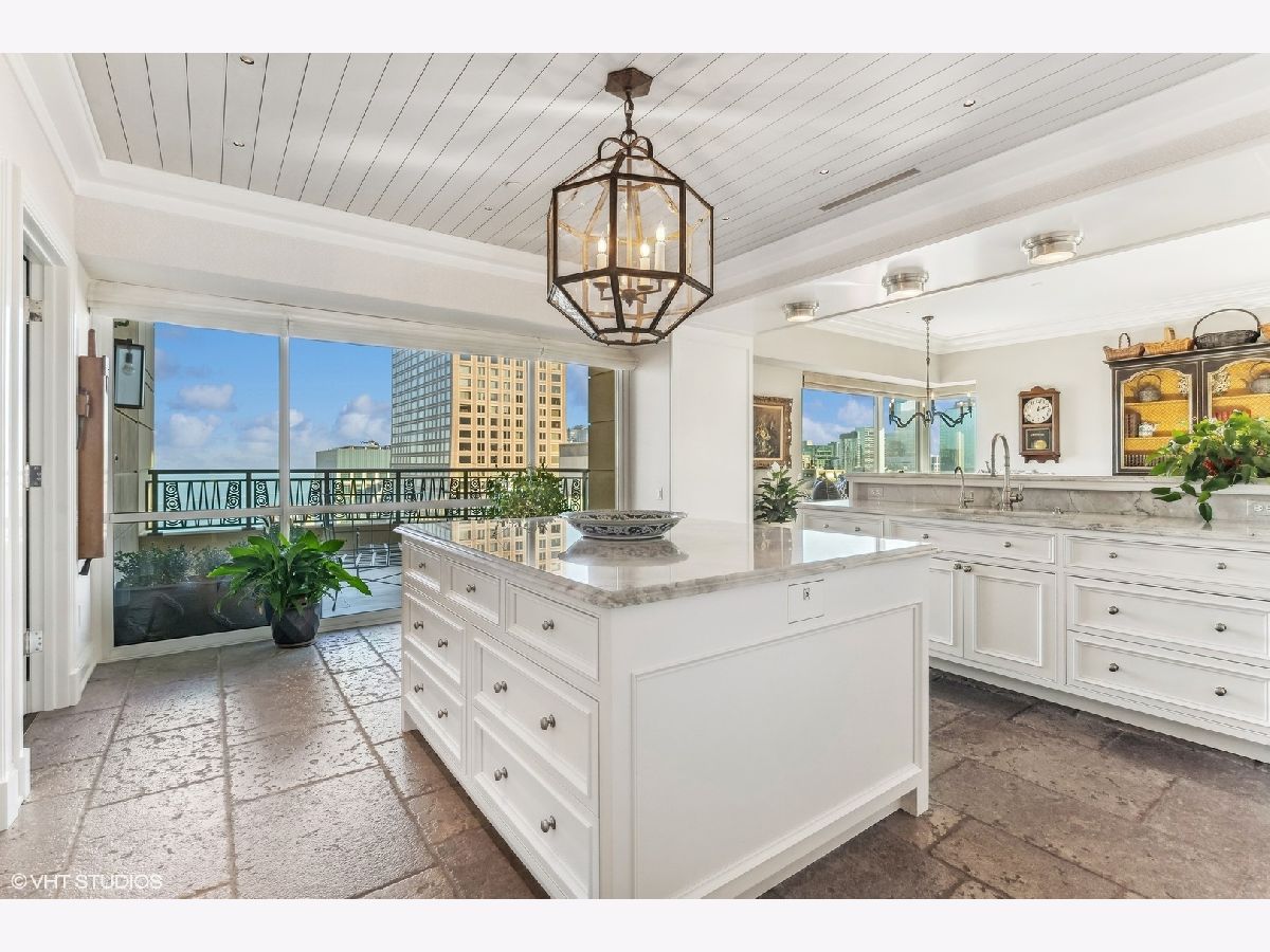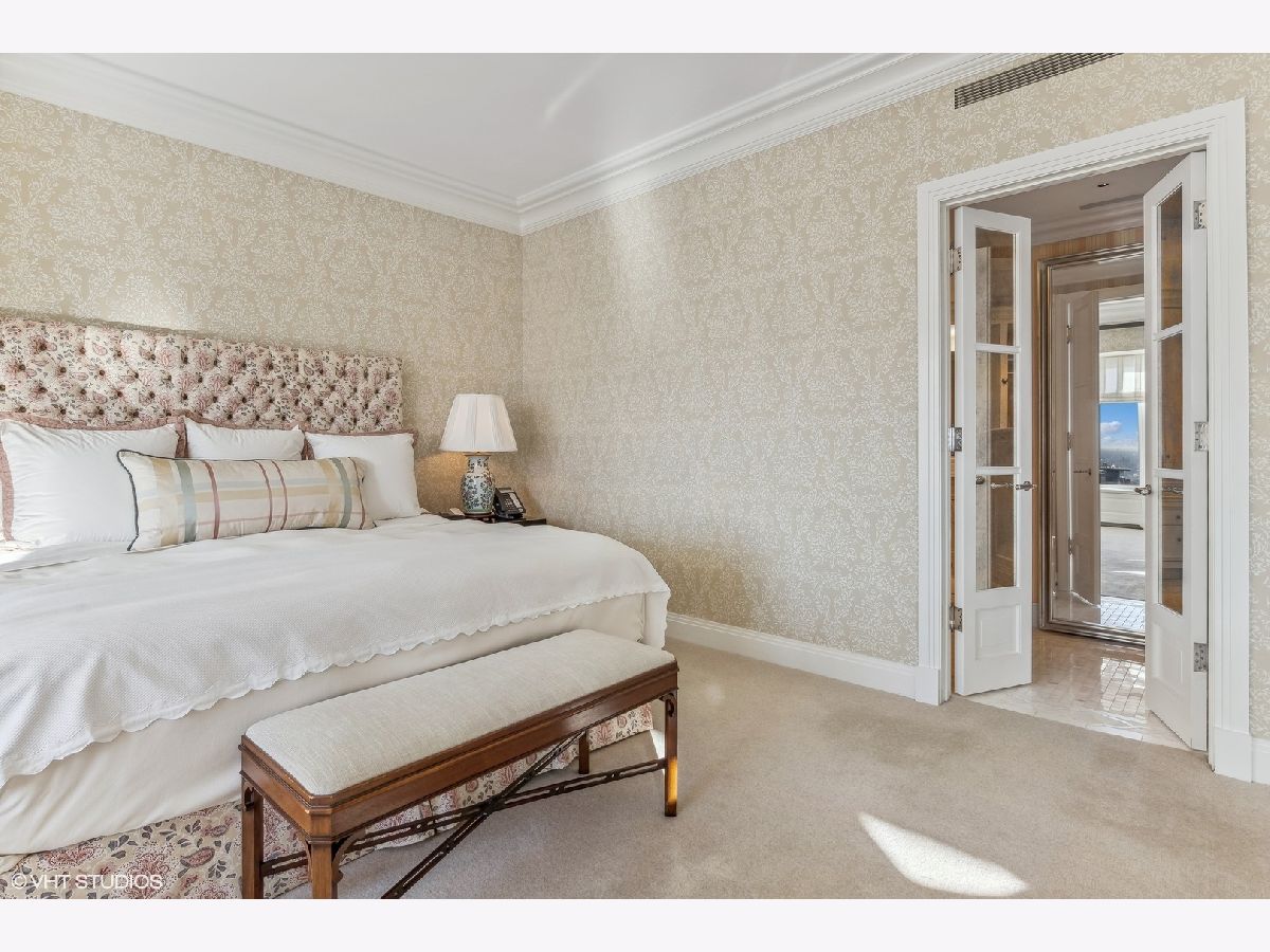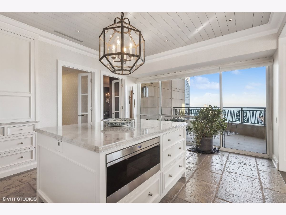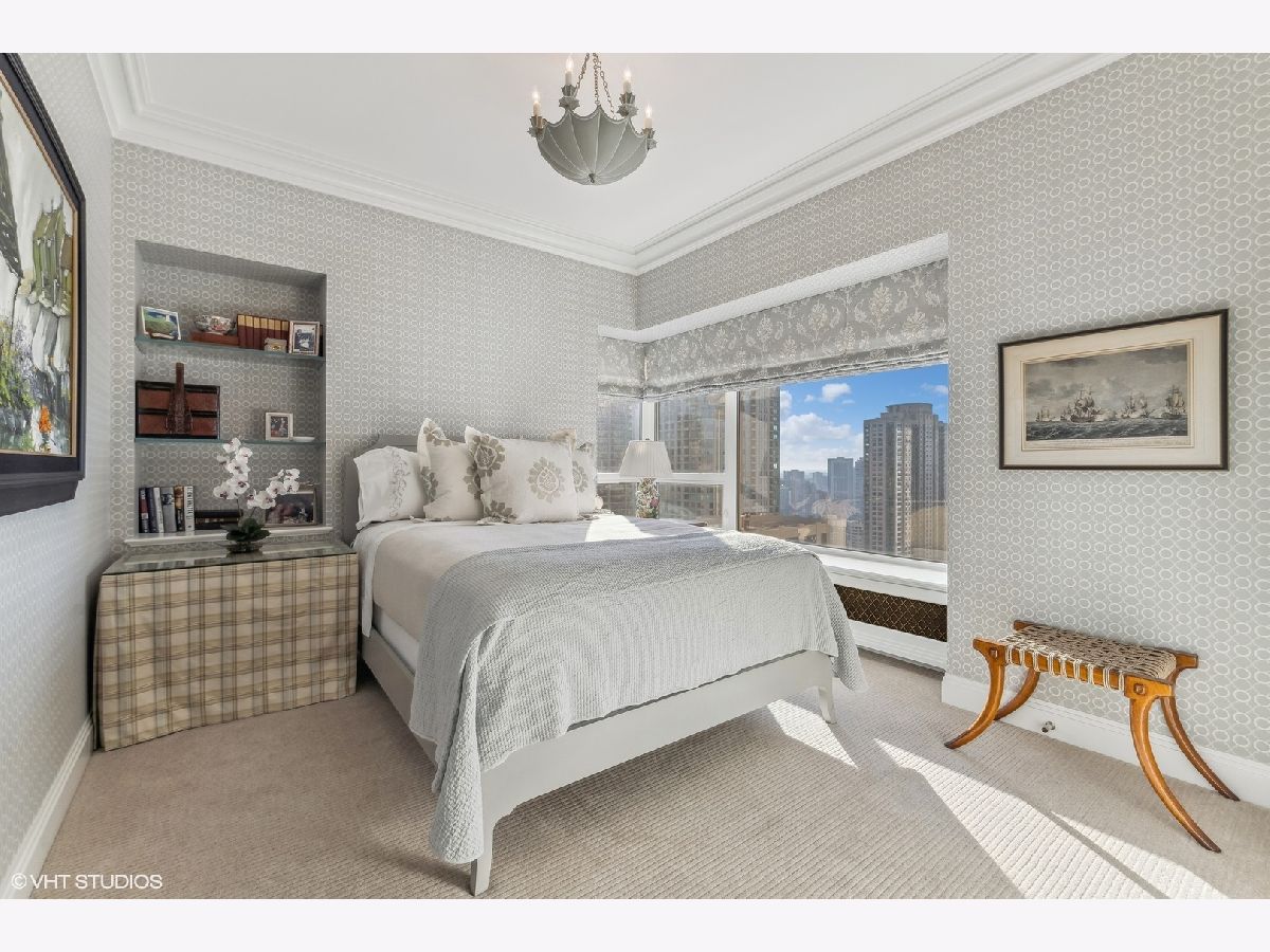 This extraordinary, elegant residence at Park Tower stands as a testament to sophistication and grandeur. Custom designed by Robert Klingel, elegance surrounds you in this expansive 5,250 square foot, 4 bedroom plus paneled library / office. This home has been meticulously crafted using only the finest materials and design. A grand foyer welcomes you into the home, setting the tone for the grandeur that lies beyond. A spectacular 30 x 20' living room is anchored by a fireplace and oversized windows that artfully frame the east-facing views of the lake and city. Two pairs of French doors with beveled glass leads you to the rich wood-paneled office, showcasing the craftsmanship that went into creating this sanctuary. The custom cabinets seamlessly integrate into the paneling, providing both functionality and aesthetic appeal. Each cabinet is a work of art, featuring handcrafted details and ornate handles that add a touch of luxury to the room. These cabinets are not only storage solutions but also contribute to the overall design, adding depth and dimension to the space. As you explore the office, you'll discover hidden gems - a discreetly concealed television and hidden storage. A graceful transition to the formal dining room dressed in embroidered silk wallcoverings by Holly Hunt that creates a backdrop of sophistication that sets the stage for memorable gatherings. The piece de resistance of this dining sanctuary is undoubtedly the crystal chandelier that hangs majestically from above, casting a soft, ambient glow that dances off the wallpaper, creating an atmosphere of intimacy and grace. The dining room flows into the eat-in kitchen offering south and east-facing views. Anchored by an oversized center island, the kitchen features quartzite countertops that complement the custom cabinetry with polished nickel detailing and a center chandelier. The extensive suite of appliances by Wolf and Sub Zero and a discrete butler's pantry that offers additional ovens, wine storage and prep space. The oversized balcony is just off the kitchen providing the perfect amount of space to relax and enjoy the city and lake views. An extension of the kitchen is a cozy breakfast nook that is nestled in the SE corner and flows seamlessly into the comforting embrace of the family room that exudes an atmosphere of casual elegance. The bedroom wing offers 4 bedrooms including a primary suite that is a study in grandeur. Featuring a 29x14 bedroom wrapped in windows to the west, an incredible organized closet, and a spacious ensuite bath with radiant heated floors. Elegantly appointed in marble with polished nickel fixtures throughout, the primary bathroom features two separate custom carved vanities, Rohl plumbing fixtures and a luxurious shower. Three additional bedrooms, South facing bedroom two is wrapped in elegant wallcoverings and is ensuite, while bedrooms three and four enjoy western views and sunsets. Completing the residence are a beautifully appointed powder room, a discreet utility room with side-by-side washer and vented dryer, and a separate service entrance for the ultimate in privacy. No detail has been overlooked, from the custom interior lighting, the luxurious drapery fabrics, the textured wall coverings to the motorized shades throughout and a Control 4 system that automates the home. This five-star dwelling surpasses all expectations. The NoMi Club, offering a state-of-the-art fitness center and an indoor pool, coupled with premium hotel services, elevates the resident experience to unprecedented levels. Two garage spaces and a capacious storage unit are included. Seize the ultimate lifestyle opportunity in this prime location, where every element of luxury living has been meticulously curated. This residence at Park Tower is more than a home; it's a symphony of indulgence in the heart of the city. 2023 Taxes: $68,350.03 (a $13K decrease from 2022).