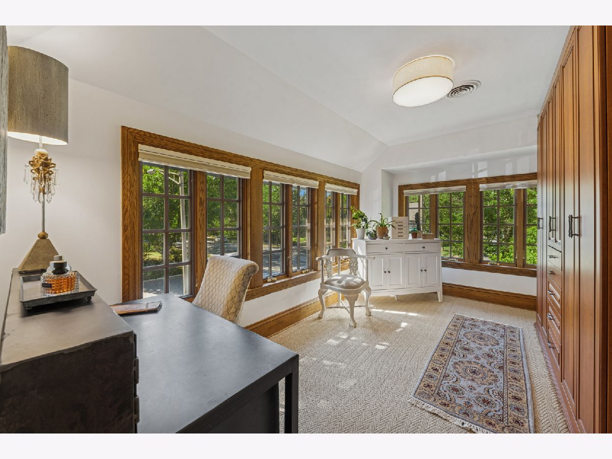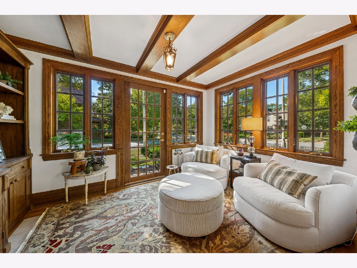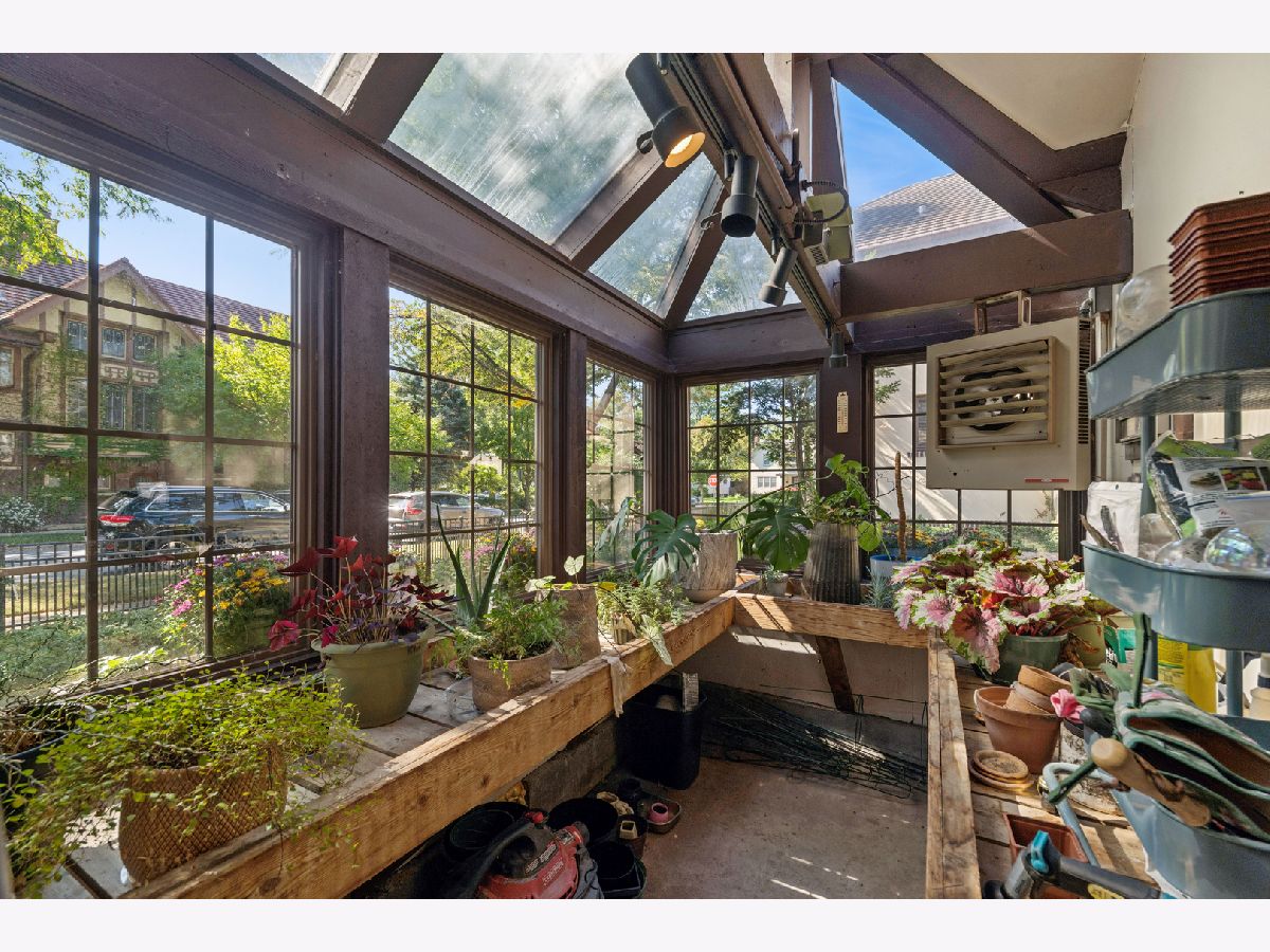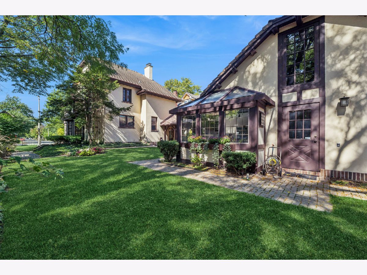 This distinctive home, located in the Frank Lloyd Wright Historical District and Mann school district, is a stunning combination of old world charm with modern amenities The home sits on a large corner lot completely enclosed with a new aluminum fence. Vibrant landscaping, recent stucco and trim paint also enhance the curb appeal. Beautiful historic period doors, wainscoting, trim and floors are all in excellent condition. The 9' ceilings and abundant windows adds to the rich character throughout. The sunken 1st floor sunroom adjacent to the living room is a favorite spot for relaxing all year long. The romantic ensuite features the second gas-burning fireplace, its own marble bath and sunken sitting room or office with built-ins for your wardrobe. The 3rd floor bedroom (currently used as a media room) is a 4th bedroom with its own full bath. The basement offers a rec room plus a play/hobby room, large laundry, office area and many storage and shelved areas. But wait, don't clutter up your basement! Look at the 25X22 walk-up loft or studio above the oversized (28X24) heated garage. For gardeners, your very own heated greenhouse attached to the garage. You'll feel like you are in the English countryside entertaining on your 28X10 covered patio. UPDATES SINCE PURCHASE: 2025 aluminum fence; all kitchen appliances, quartz countertops & backsplash, kitchen sink & garbage disposal; sump pump & sealed crock in basement; 3rd floor, sunroom and stairway carpet; new light fixtures & ceiling fan; new paint & wallpaper; new woven wood blinds in kitchen, & new window treatments throughout ADD'L UPDATES/FEATURES: 200 AMP Electrical service, Gas line hook-up for outdoor grill, Downstairs furnace 2022, Upstairs A/C 2021