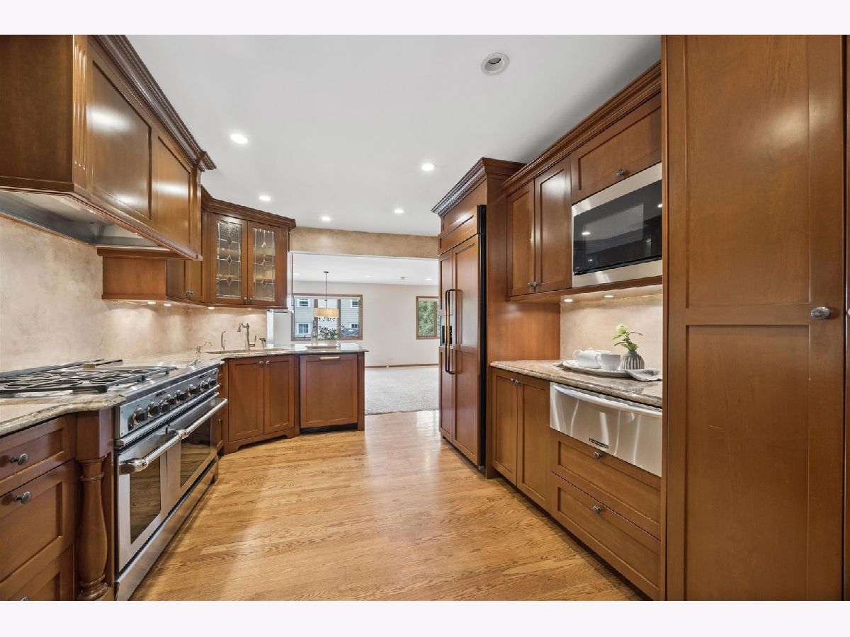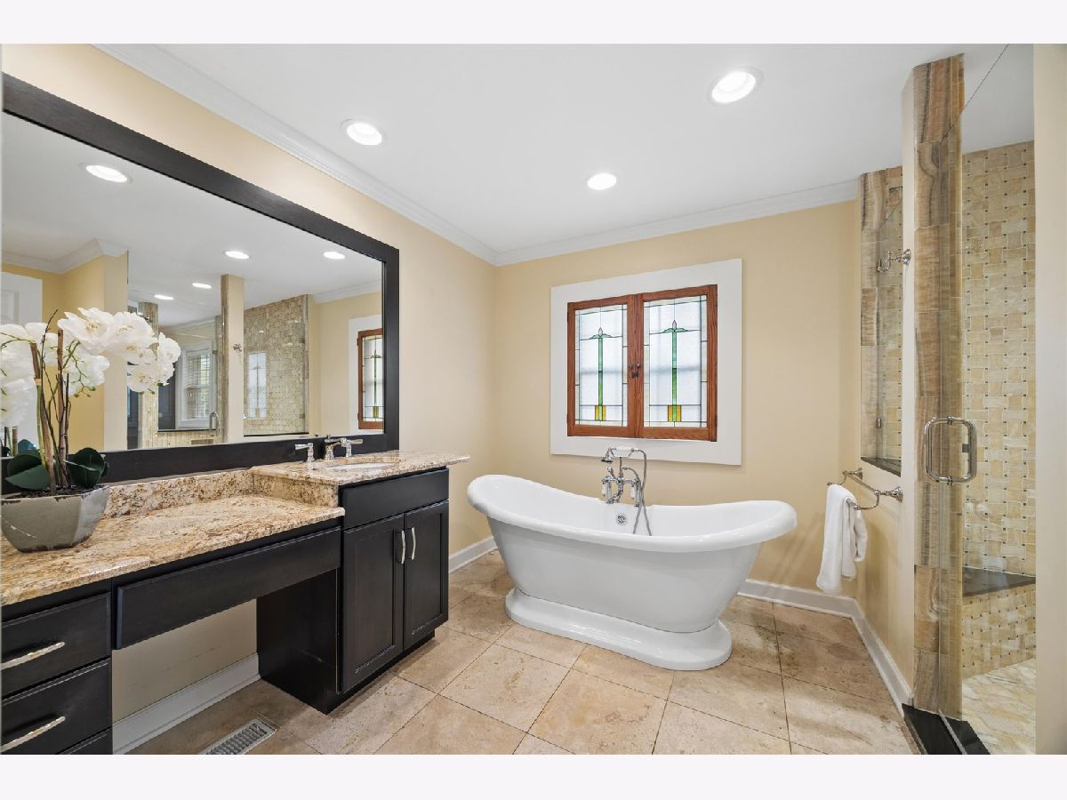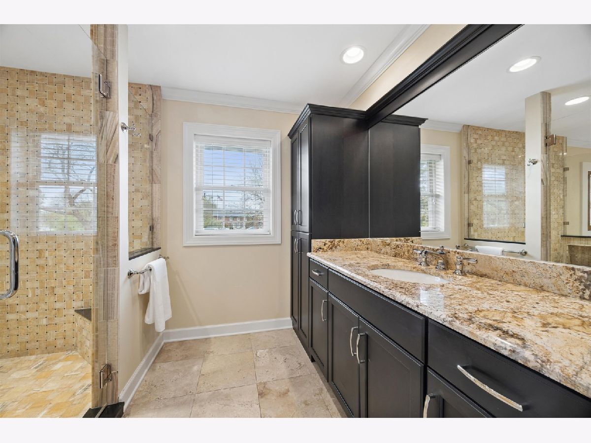 Lovely split-level home in a prime Madison school location on a generous 76 x 146 lot. The updated kitchen features top-of-the-line appliances, new cabinetry, granite countertops and seating space. A spacious family room with fireplace overlooks the large fenced yard with both a deck and stone terrace. The living room, with a large picture window, flows to the dining room.The second floor showcases a newly renovated and reconfigured primary suite with dual walk-in closets and a standout primary bath: separate vanities and commodes flanking a central glass-enclosed shower. Two additional bedrooms share the renovated hall bath. The lower level, with a newer full bath and sliding glass doors to the back terrace, works well as a home office, den or fourth bedroom. The basement offers a rec/workout room, laundry and storage. Attached 2-car garage. Exceptional location-just steps to Robbins Park, Madison School, the Community Center and Hinsdale Central. Move-in ready with thoughtful updates throughout.