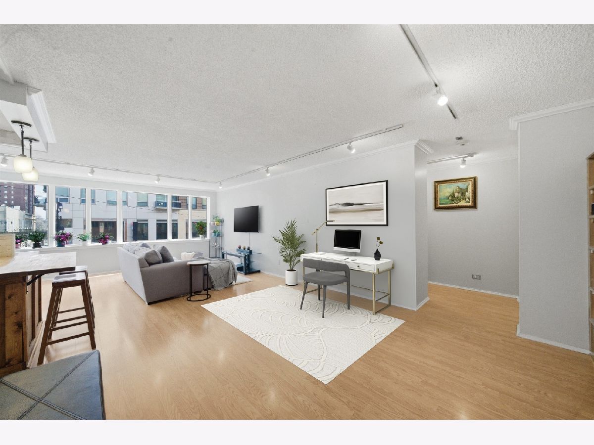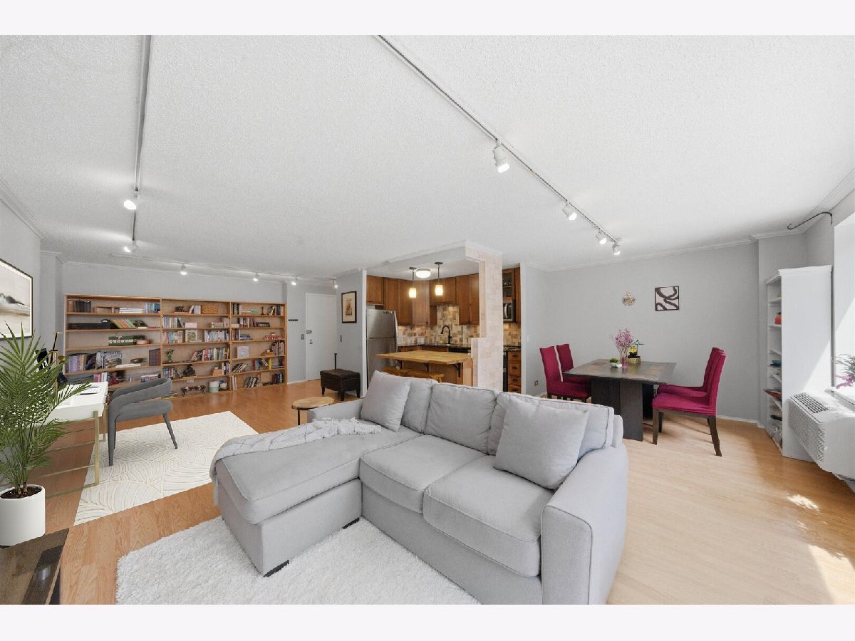 Now available! Sun-drenched 2 Bed + 2 Bath with stunning east-facing Grant Park views! Spacious 1,250 SF layout with room for dining + home office Updated finishes + in a full-amenity building in the heart of Printer's Row. Seize this amazing opportunity to own a beautifully updated 2 Bed / 2 Bath at The Terraces of Dearborn Park! Bright east-facing exposure with large windows pouring in natural light and showcasing scenic views down 8th St toward Grant Park. Ideal 2 bedroom floor plan with flexible living space for formal dining + dedicated home office. Features include engineered hardwood floors, 8' ceilings, updated lighting, and abundant closet space throughout. Open-concept kitchen with shaker cabinetry, stainless steel appliances, granite countertops, breakfast bar, and space for dining table-perfect for entertaining and everyday living. Spacious primary suite fits a king bed + full furniture set and includes a large walk-in closet and bonus flex space for office, vanity, or seating area. Both bathrooms updated with marble-style tile flooring, refreshed vanities, and newer fixtures. Ideally located next to Dearborn Park this full-amenity & professionally managed building features renovated lobbies, newer elevators, laundry room, and community spaces. HOA includes cable + gigabyte internet, water, storage, on-site maintenance, and evening door staff. Garage parking available for rent or purchase in attached garage. No car? No problem! Printer's Row is one of the only neighborhoods with a 100 Walk Score / 100 Transit Score / 95 Bike Score and is steps to Grant Park, the Lakefront, Museum Campus, an abundance of dining and night life, Trader Joe's, Whole Foods, and the Loop. Homes with this combination of space, natural light, and true walkability in this location rarely come available-schedule your showing today!