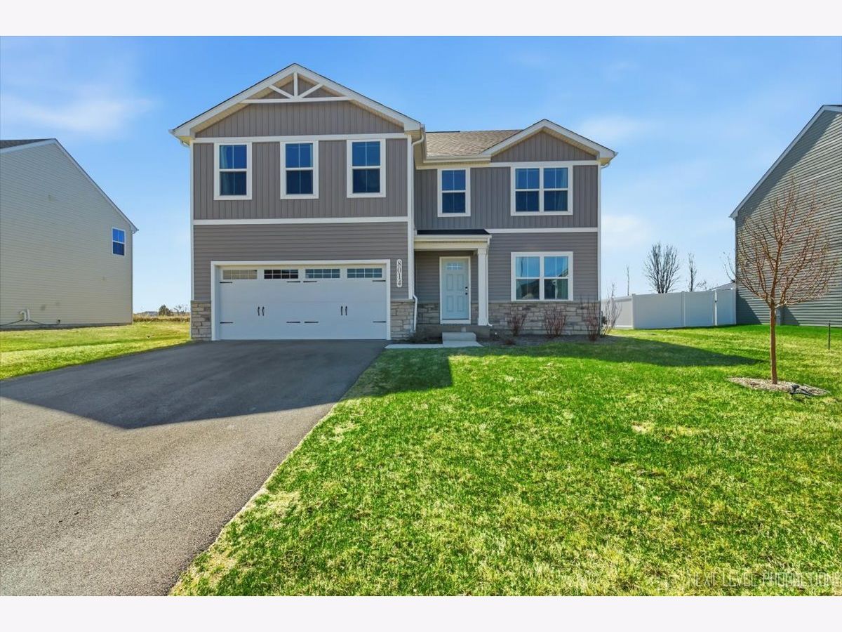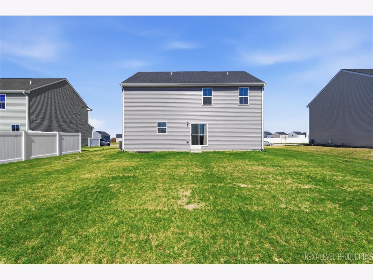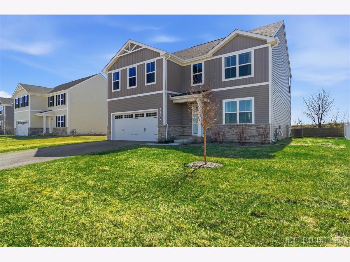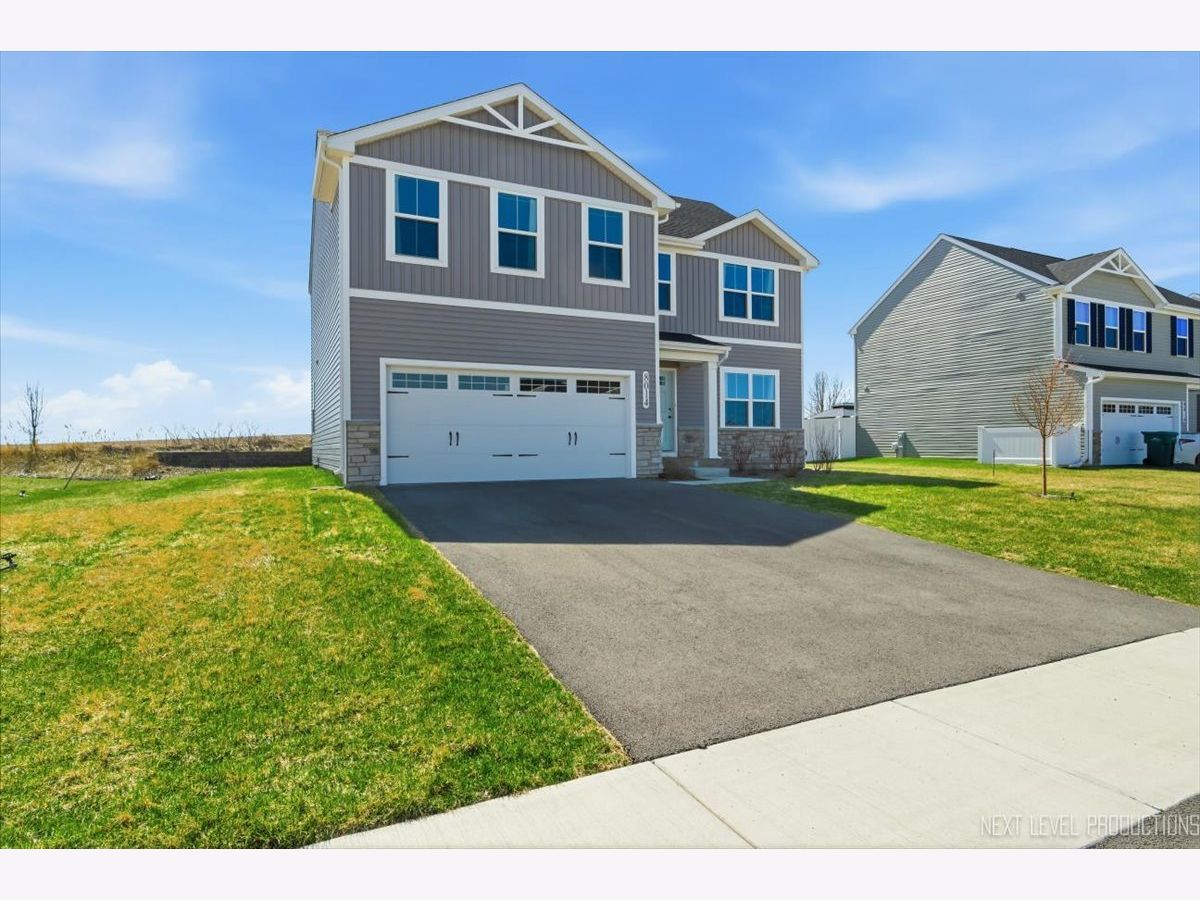 Beautiful like new 5 bedroom, 2.5 bath vinyl and stone two story home built in 2025 in the desirable Deer Crossing neighborhood of Plainfield, offering modern design, space, and everyday convenience. Set on a landscaped lot with a covered front porch and 2 car attached garage, this newer home welcomes you with wood laminate flooring, recessed lighting, neutral decor, and a flowing open floor plan. The spacious family room opens to an eat in kitchen featuring an island, breakfast bar, and stainless steel appliances, with an adjacent dining room that includes a slider to the backyard for easy indoor outdoor living. A first floor home office provides the perfect work from home setup. Upstairs, you'll find five generously sized bedrooms including a primary suite with a private bath and double bowl vanity, along with the convenience of a second floor laundry room. The full unfinished basement offers endless potential for future living space or storage. Additional features include a smart thermostat and a prime location close to schools, shopping, dining, and the expressway.
