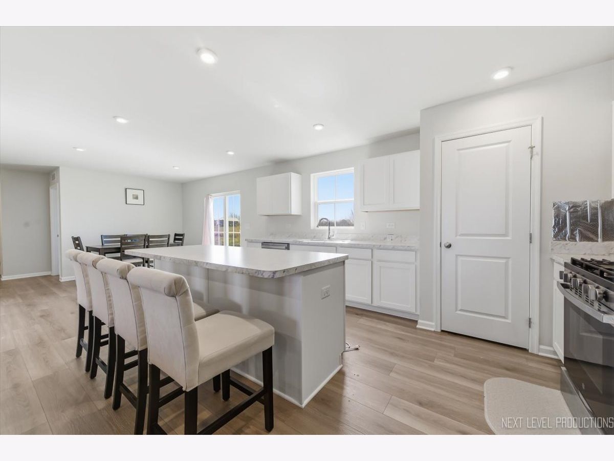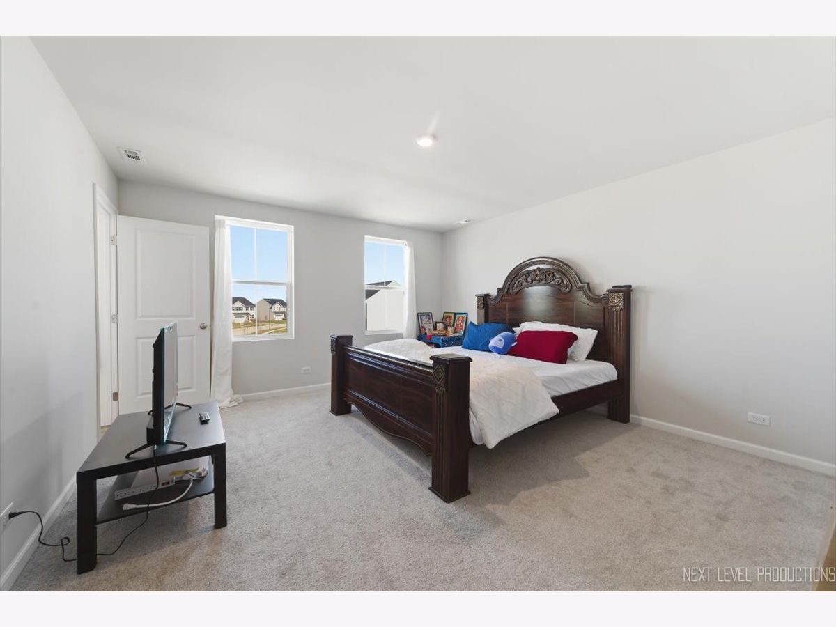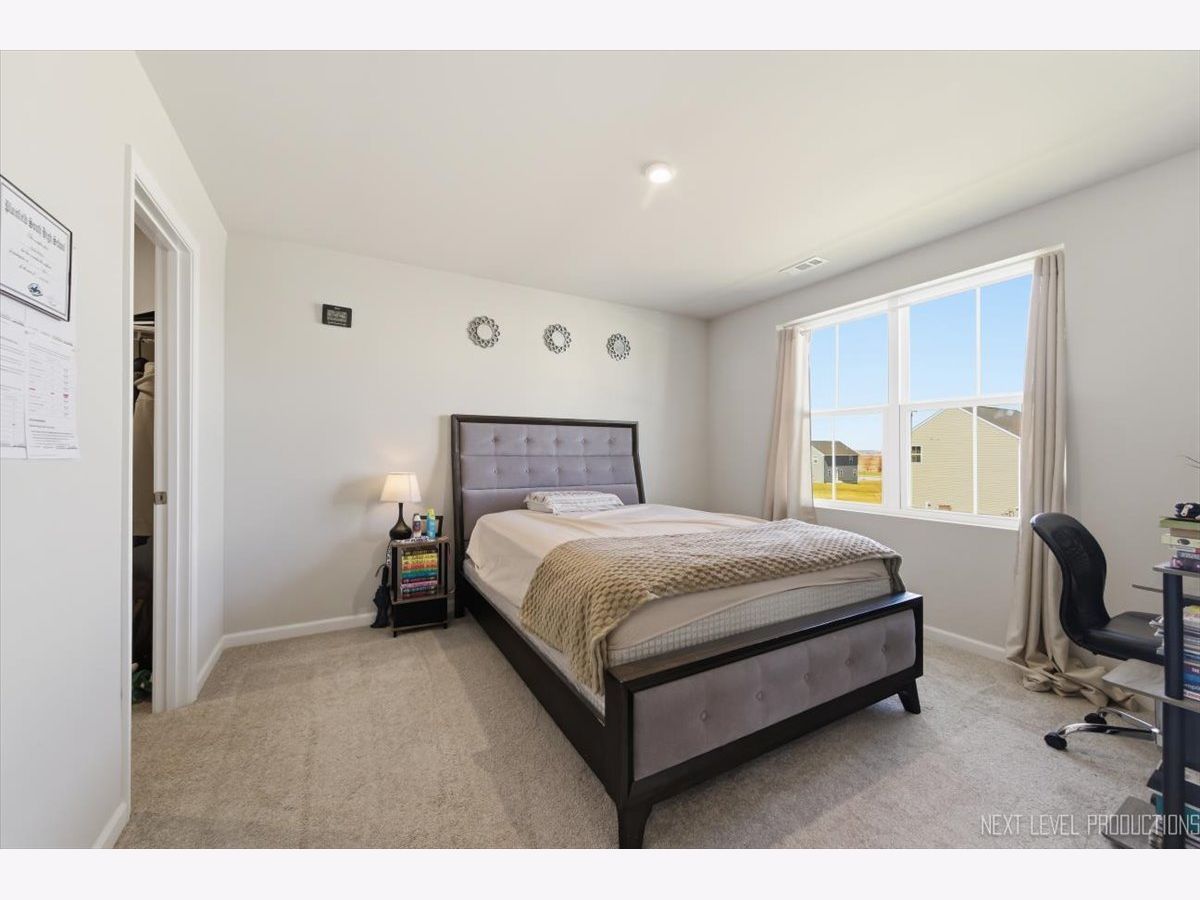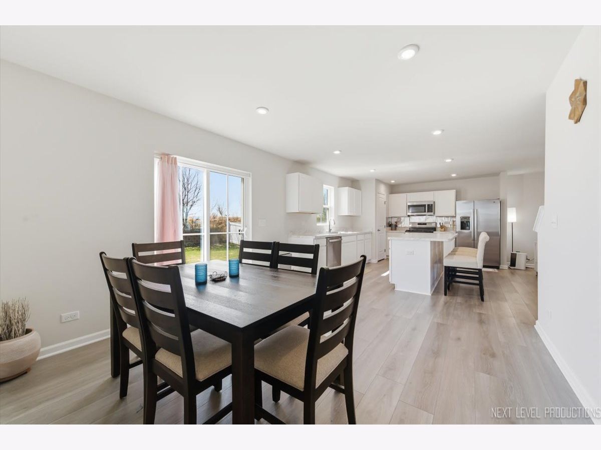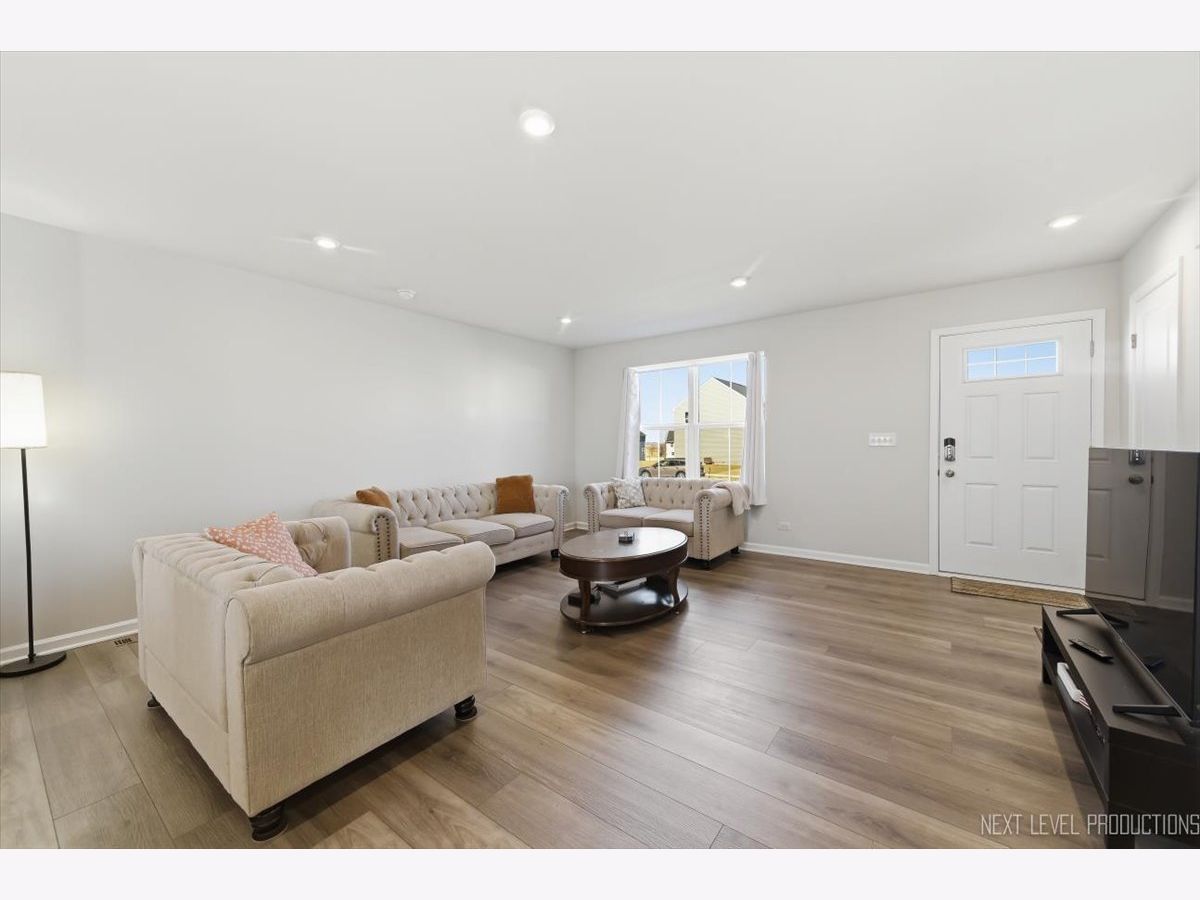 Beautiful like new 5 bedroom, 2.5 bath vinyl and stone two story home built in 2025 in the desirable Deer Crossing neighborhood of Plainfield, offering modern design, space, and everyday convenience. Set on a landscaped lot with a covered front porch and 2 car attached garage, this newer home welcomes you with wood laminate flooring, recessed lighting, neutral decor, and a flowing open floor plan. The spacious family room opens to an eat in kitchen featuring an island, breakfast bar, and stainless steel appliances, with an adjacent dining room that includes a slider to the backyard for easy indoor outdoor living. A first floor home office provides the perfect work from home setup. Upstairs, you'll find five generously sized bedrooms including a primary suite with a private bath and double bowl vanity, along with the convenience of a second floor laundry room. The full unfinished basement offers endless potential for future living space or storage. Additional features include a smart thermostat and a prime location close to schools, shopping, dining, and the expressway.