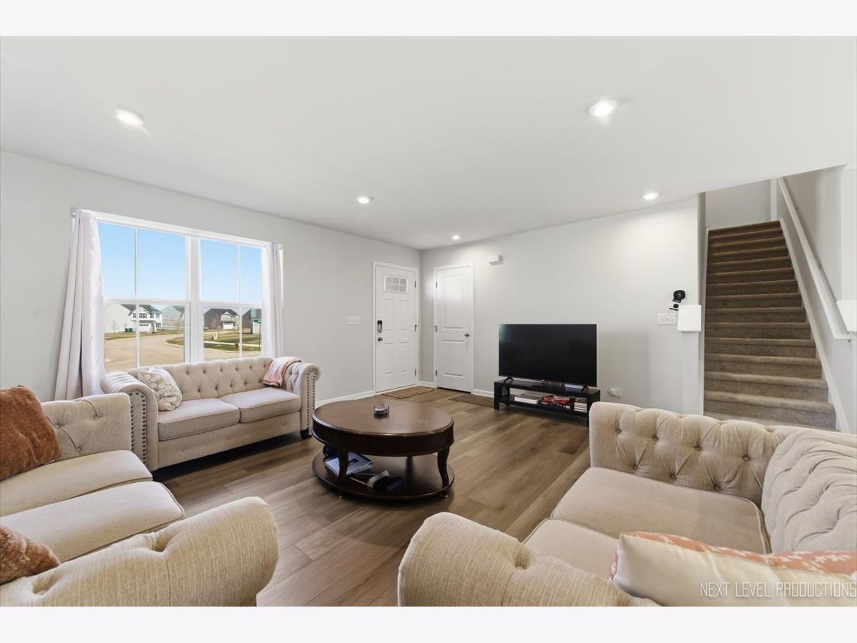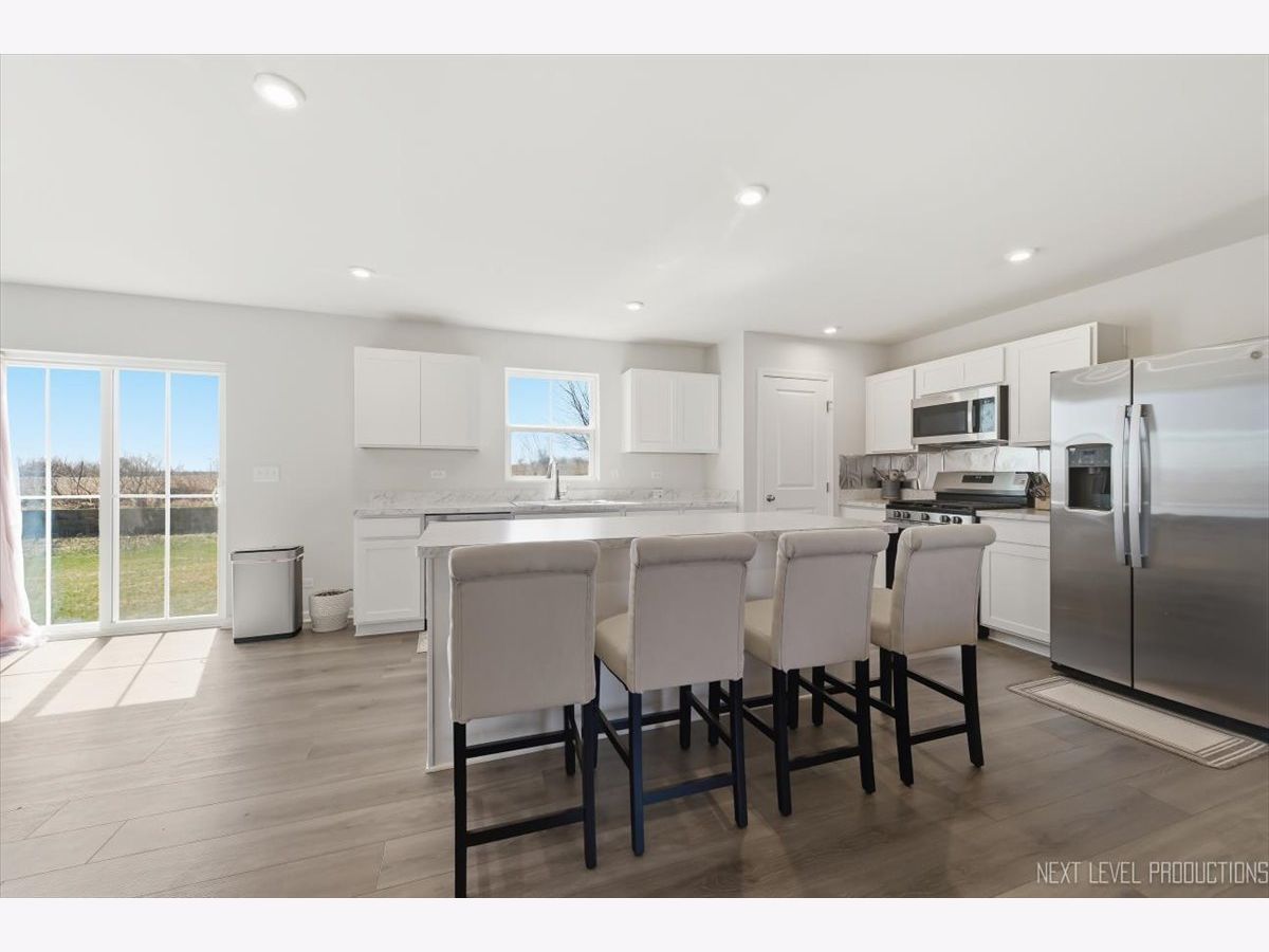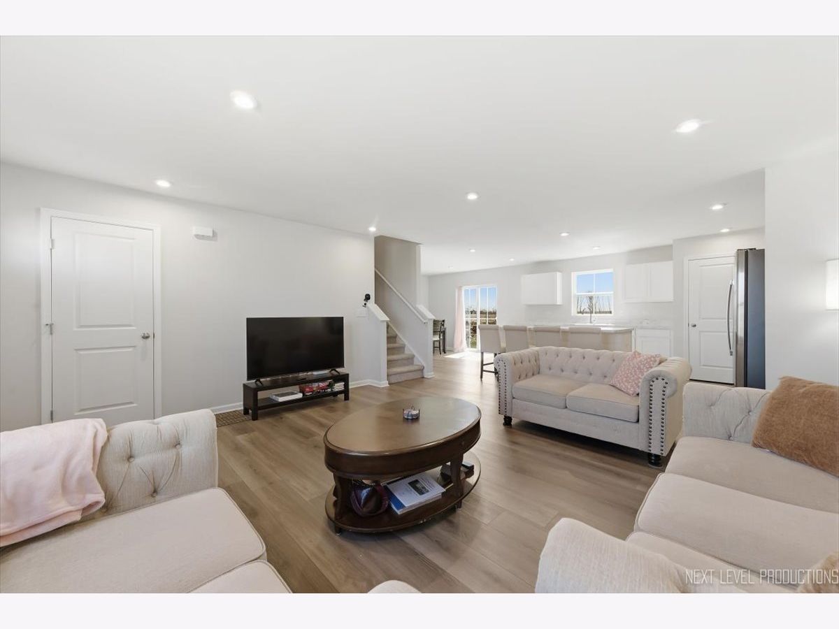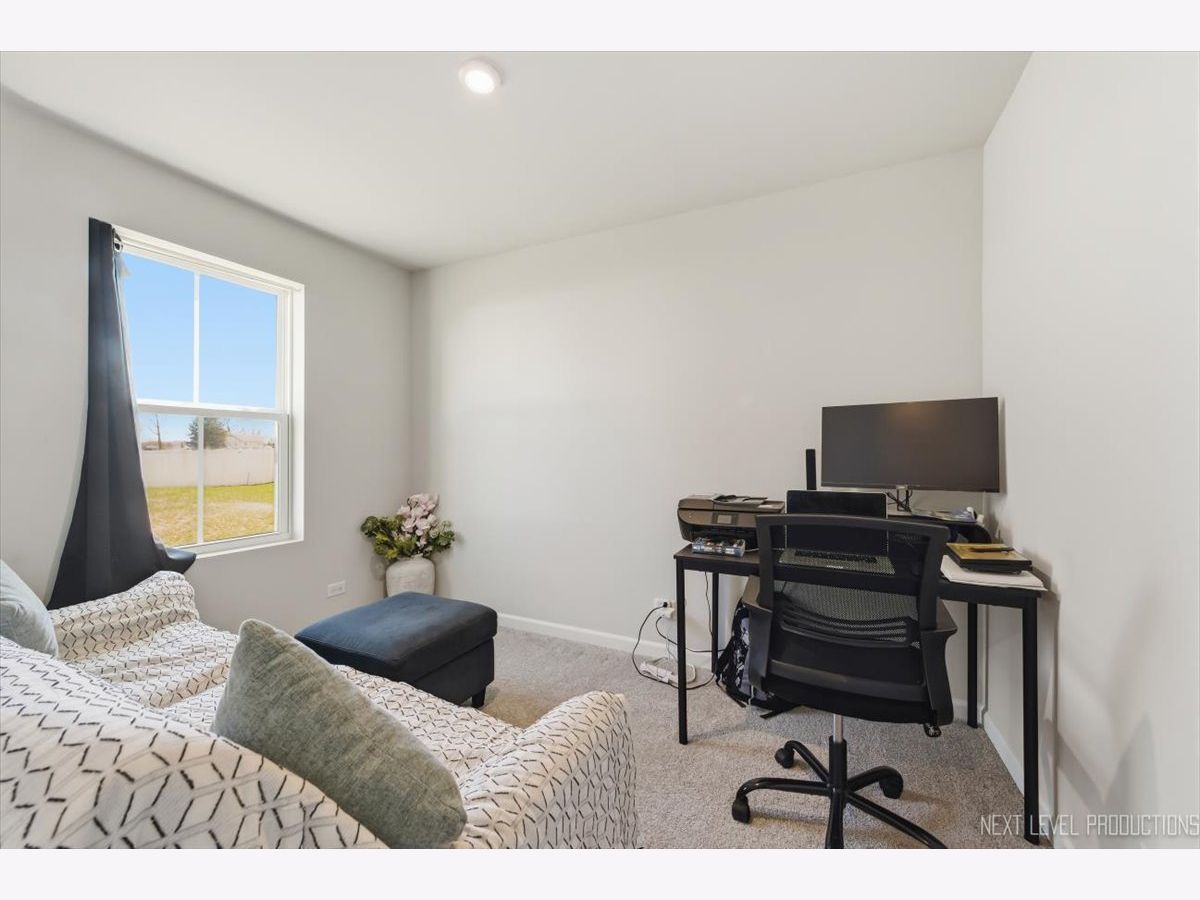 Beautiful like new 5 bedroom, 2.5 bath vinyl and stone two story home built in 2025 in the desirable Deer Crossing neighborhood of Plainfield, offering modern design, space, and everyday convenience. Set on a landscaped lot with a covered front porch and 2 car attached garage, this newer home welcomes you with wood laminate flooring, recessed lighting, neutral decor, and a flowing open floor plan. The spacious family room opens to an eat in kitchen featuring an island, breakfast bar, and stainless steel appliances, with an adjacent dining room that includes a slider to the backyard for easy indoor outdoor living. A first floor home office provides the perfect work from home setup. Upstairs, you'll find five generously sized bedrooms including a primary suite with a private bath and double bowl vanity, along with the convenience of a second floor laundry room. The full unfinished basement offers endless potential for future living space or storage. Additional features include a smart thermostat and a prime location close to schools, shopping, dining, and the expressway.
