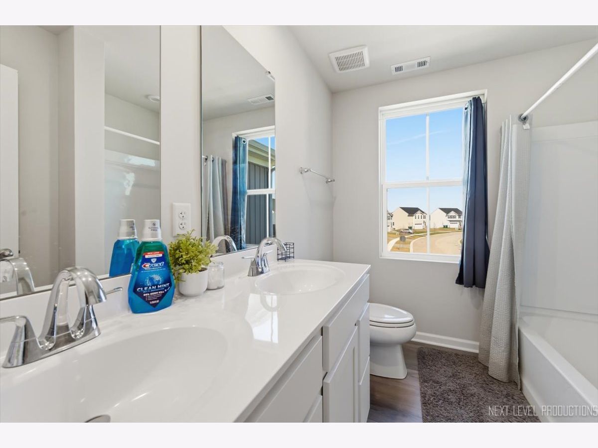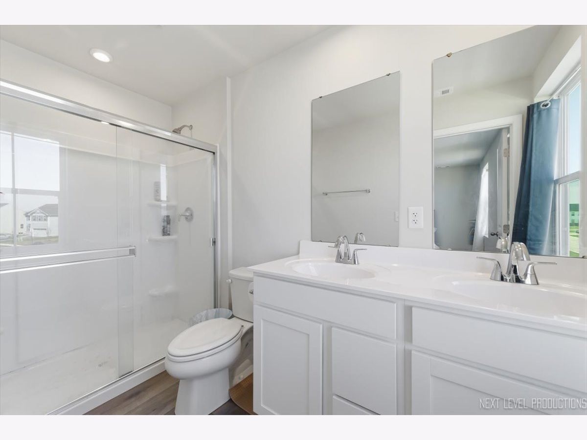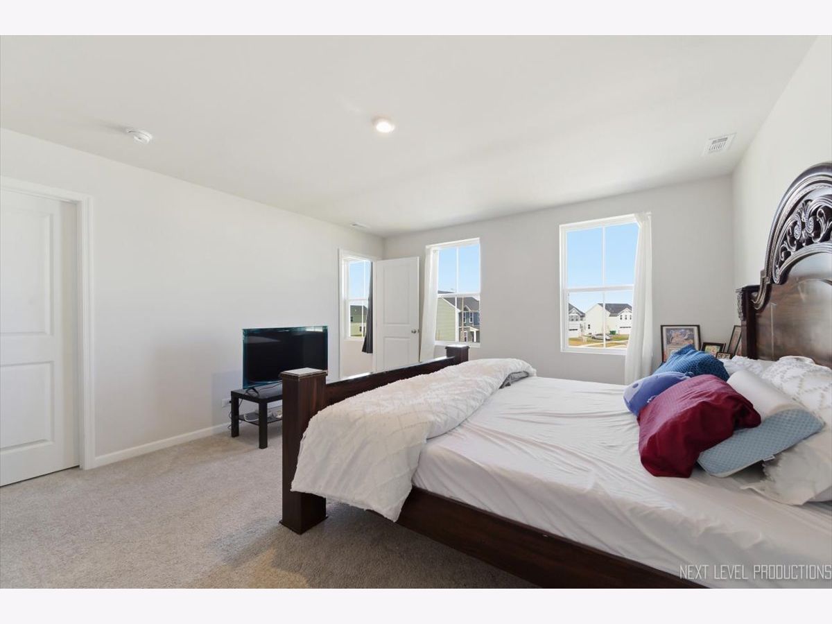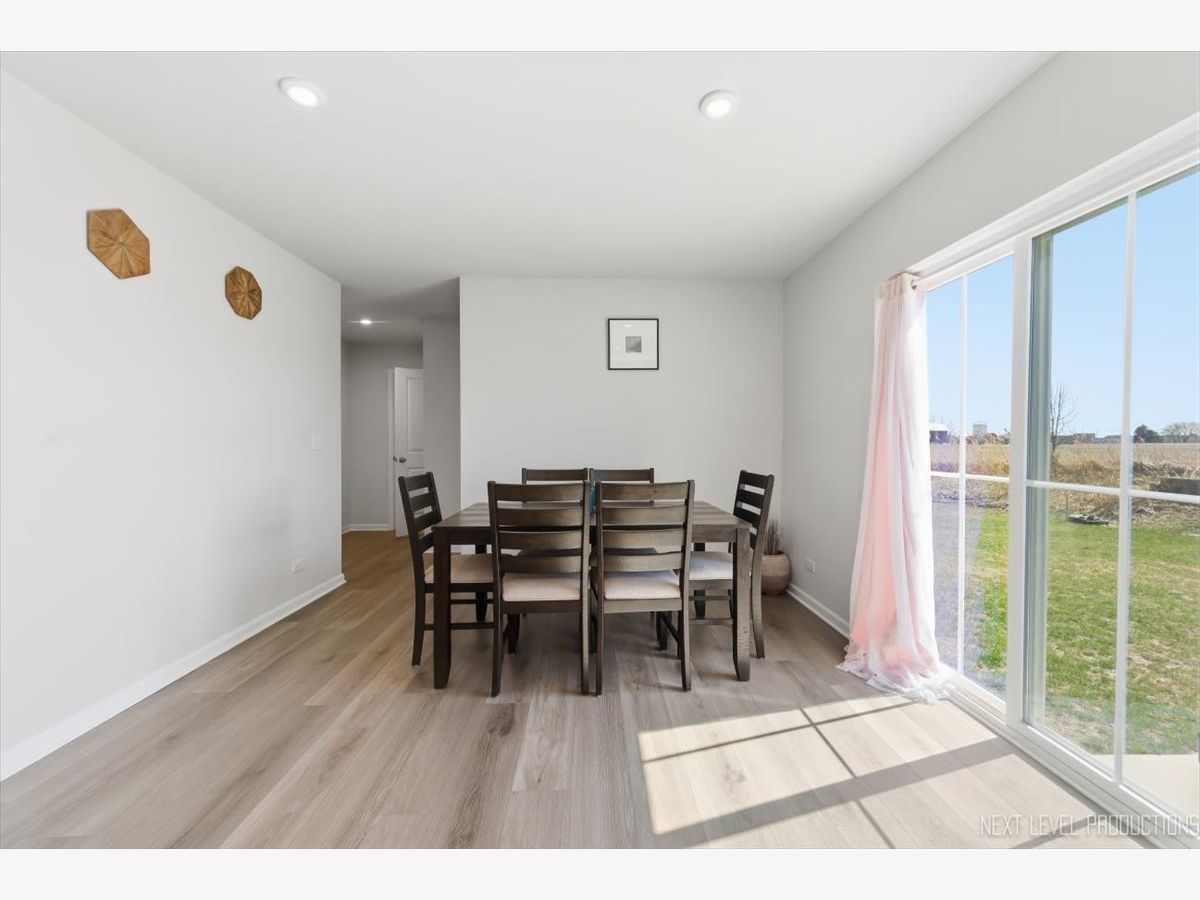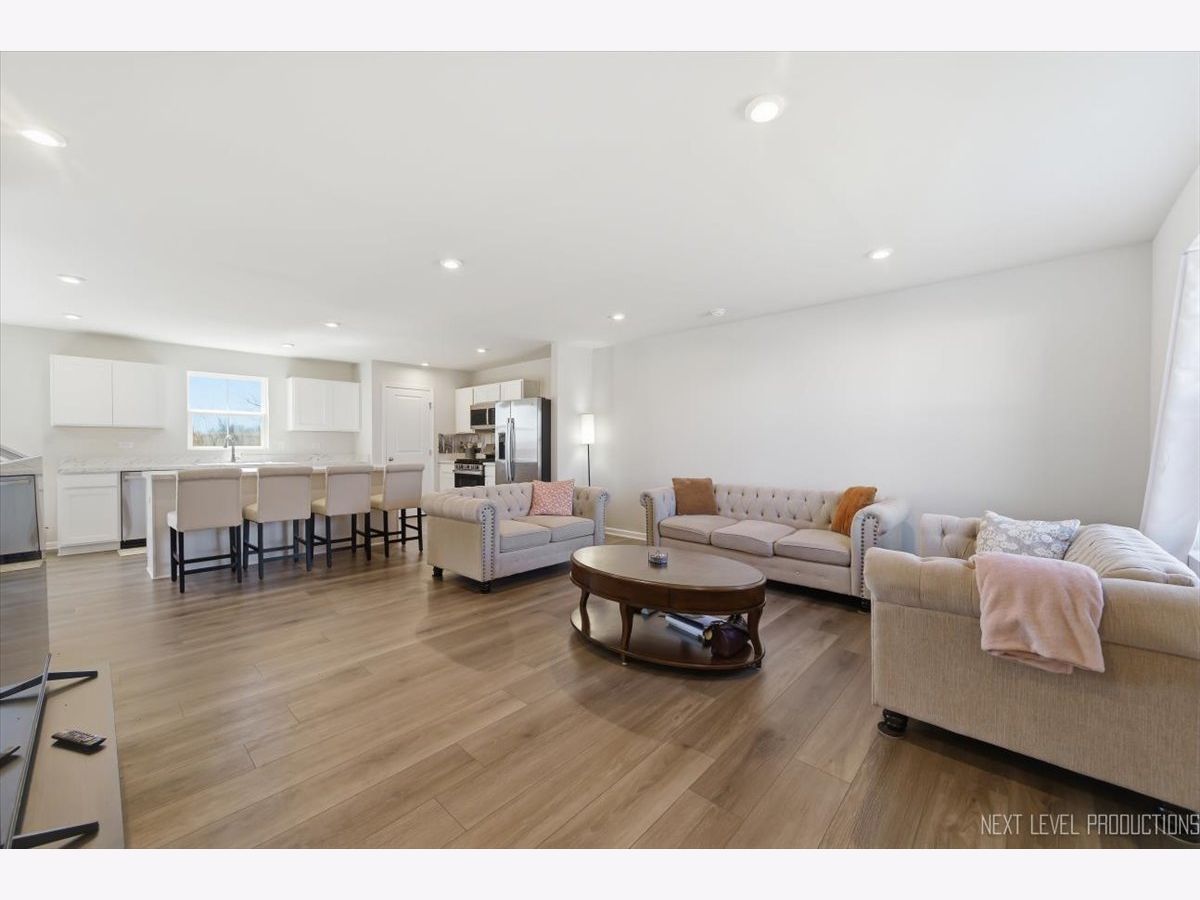 Beautiful like new 5 bedroom, 2.5 bath vinyl and stone two story home built in 2025 in the desirable Deer Crossing neighborhood of Plainfield, offering modern design, space, and everyday convenience. Set on a landscaped lot with a covered front porch and 2 car attached garage, this newer home welcomes you with wood laminate flooring, recessed lighting, neutral decor, and a flowing open floor plan. The spacious family room opens to an eat in kitchen featuring an island, breakfast bar, and stainless steel appliances, with an adjacent dining room that includes a slider to the backyard for easy indoor outdoor living. A first floor home office provides the perfect work from home setup. Upstairs, you'll find five generously sized bedrooms including a primary suite with a private bath and double bowl vanity, along with the convenience of a second floor laundry room. The full unfinished basement offers endless potential for future living space or storage. Additional features include a smart thermostat and a prime location close to schools, shopping, dining, and the expressway.