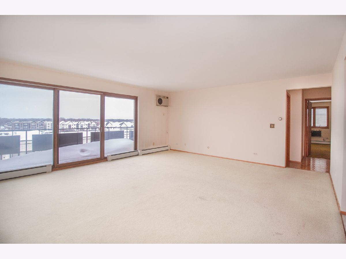 Grove Tower! Top floor (6th), 2 bedroom, 1.5 baths unit with sweeping, unobstructed views. Attached, 1 car garage with adjacent extra storage. Big living room with a huge 16 foot long balcony. Master suite with private half bath and a walk-in closet. Bathroom closet is big enough to add a shower, which has been done in other units. Eat-in kitchen. Plenty of closets. Newer Pella windows. HOA includes heat. Elevator building. Unit can use some sprucing up or remodeling depending on your taste.
