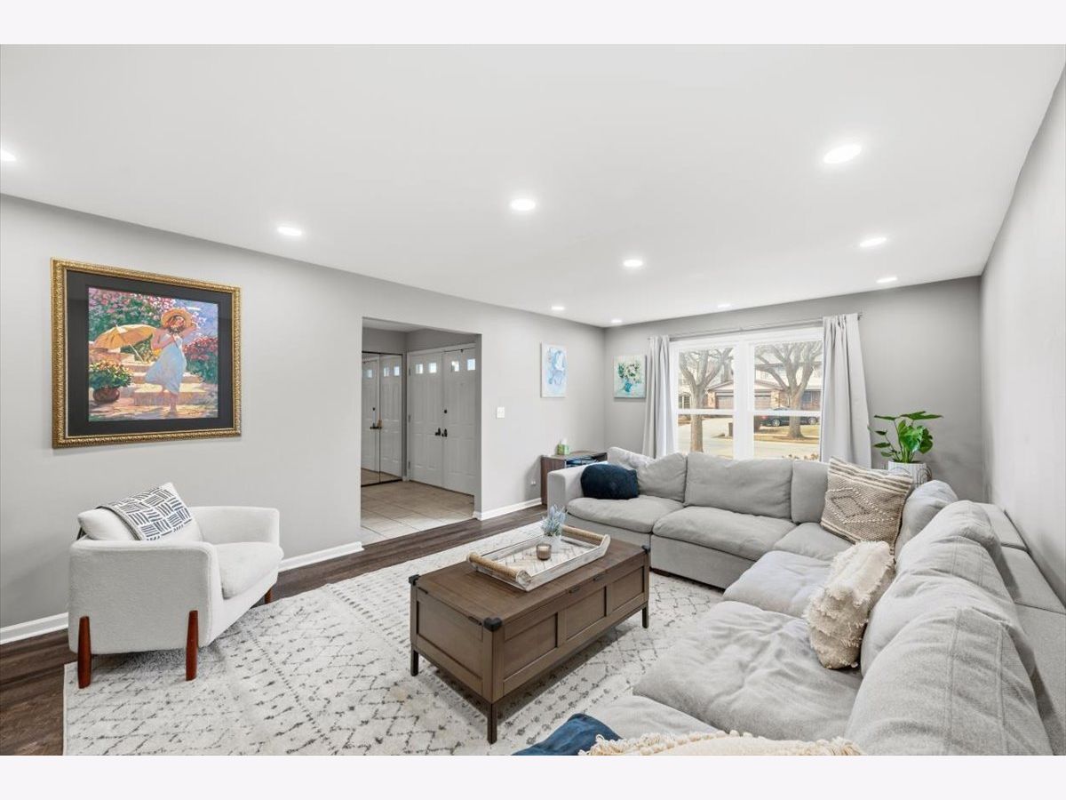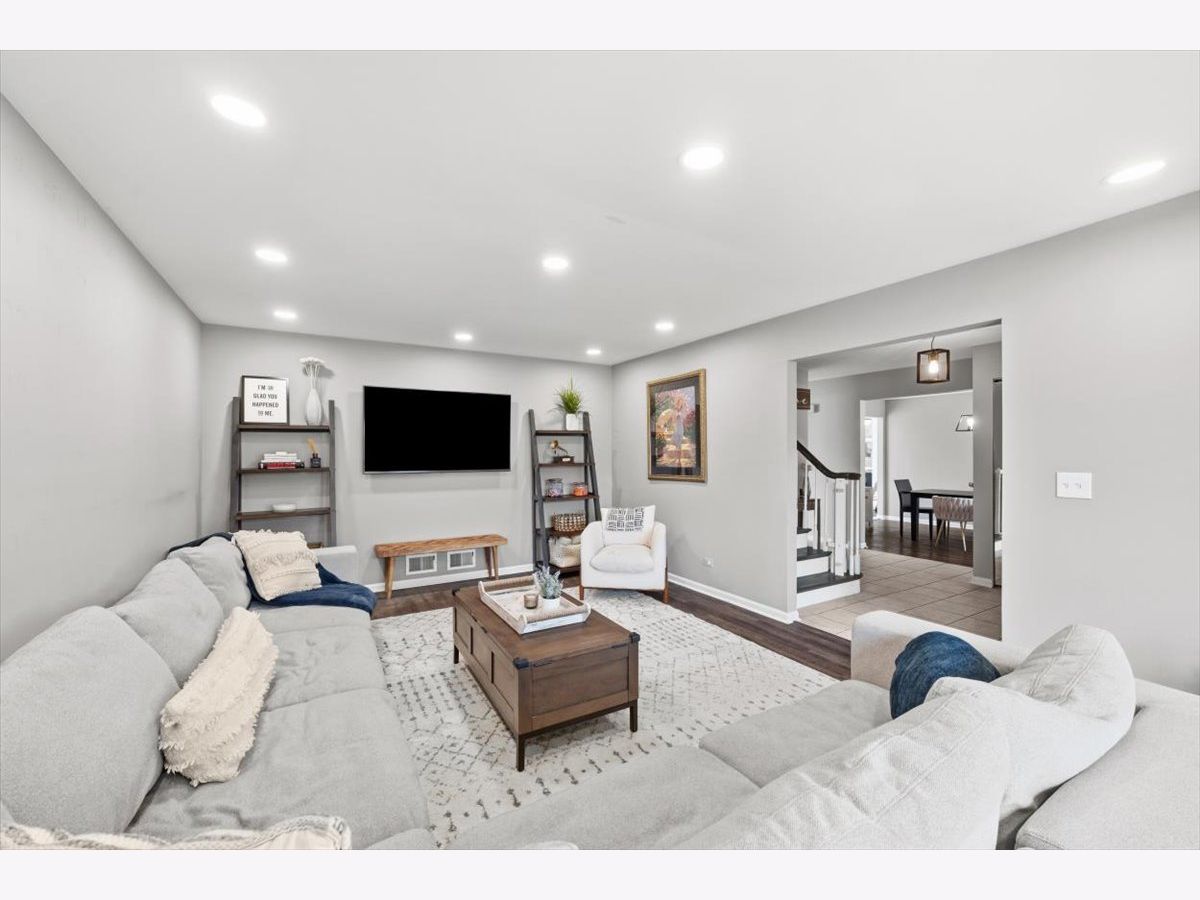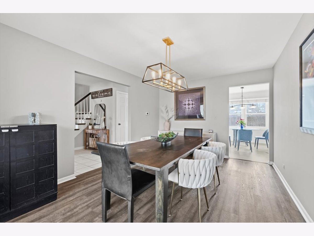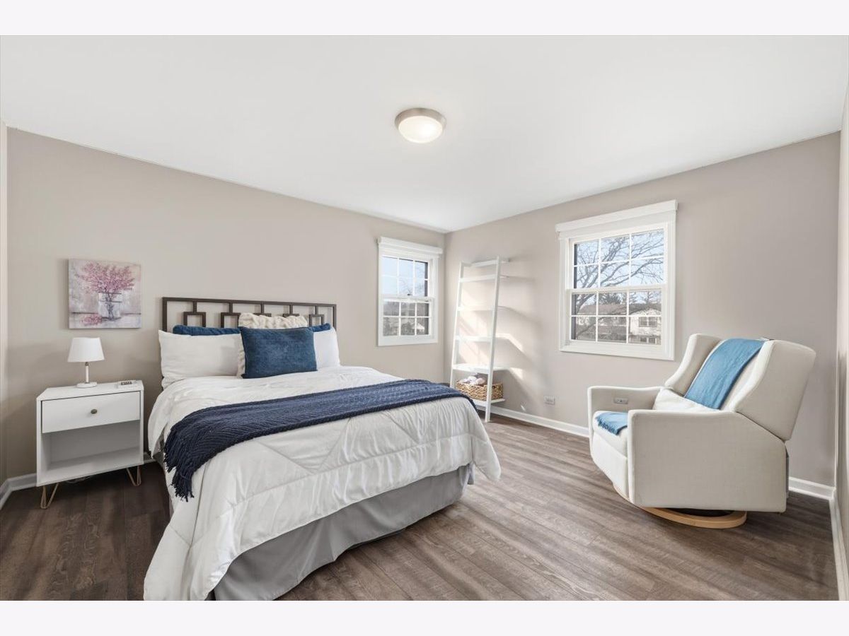 Welcome home to this sun-filled 4-bedroom, 2.5-bath colonial on an oversized lot in coveted Sutton Point! Brand-new engineered hardwood floors set the tone as you step into a warm, inviting layout with separate living and dining rooms-perfect for entertaining. The spacious family room features a cozy fireplace, built-in bookcases, and new slider to a massive, private backyard. Enjoy a freshly updated powder room and a bright eat-in kitchen with tons of cabinets, a large pantry, and a convenient laundry/mudroom just steps away. Upstairs, the primary suite offers a walk-in closet and private bath, while three additional bedrooms share a beautifully renovated full bath with double vanity. The finished basement adds even more living space with a rec room and storage. Newer HVAC, an incredible yard with no neighbors behind or on one side, and a concrete patio make this home truly special. Two car epoxy glazed garage and extended driveway perfect for 3rd car. Fully fenced yard. Award-winning District 27 and Glenbrook North High School-minutes to Metra, parks, YMCA, dining, and more!