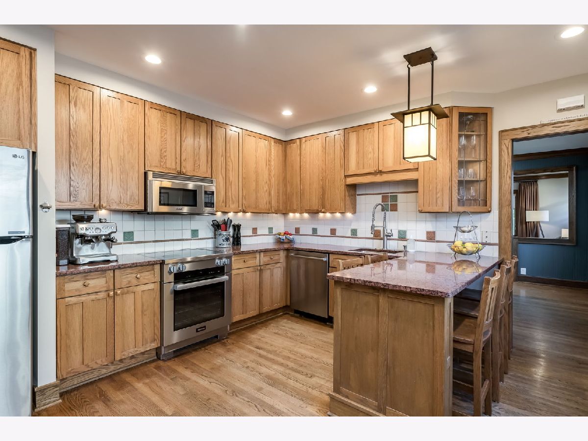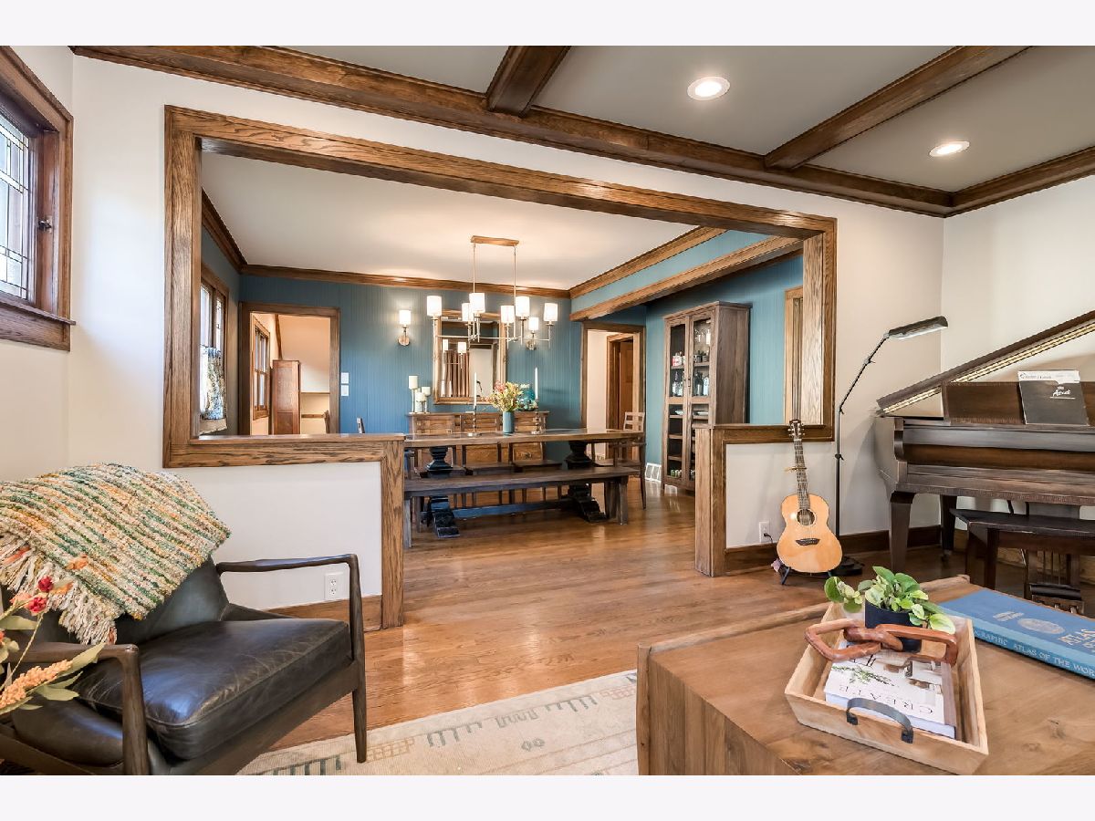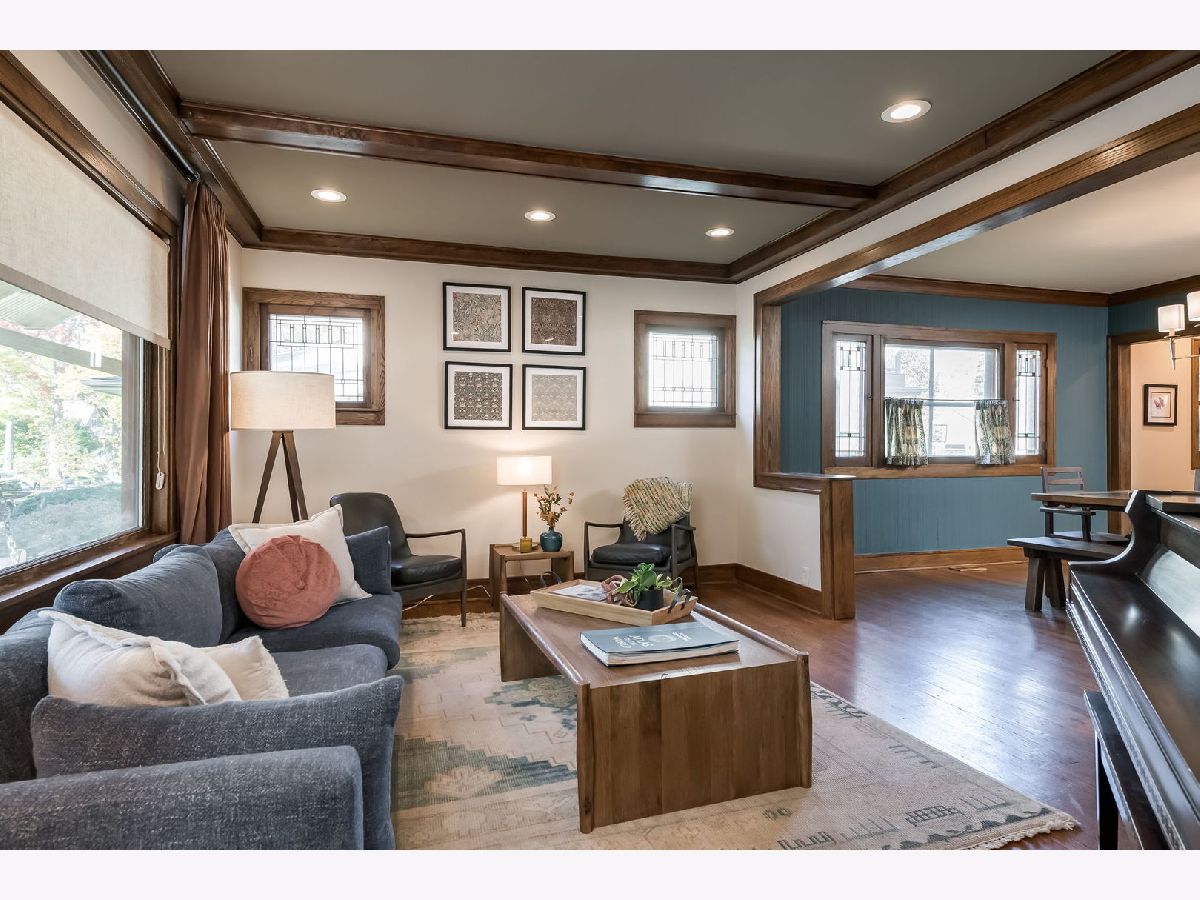 Impressive & inviting is this sprawling turnkey 5 BR/ 4BA Arts & Crafts gem. Rich, natural woodwork beckons from the moment you step inside this Prairie-Style treasure. Noteworthy are 3 finished levels of living coupled with a generous footprint. Flexible living space includes a full bath on each floor (in addition to a primary suite) and two 1st floor bedrooms. A circular floor plan makes for comfortable living and entertaining. Efficient kitchen has newer appliances and seating for 5 at peninsula. Well-designed family room comes with wood-burning fireplace and clever built-in cabinetry plus window-seat storage. The 2nd floor has three generous bedrooms (including primary), a full hall bath with dual sinks and convenient laundry room. Primary suite has private balcony, custom built-in cabinetry, and two walk-in closets. Basement was transformed and reconfigured in 2024 with a generous rec room, wet bar (wine fridge included), home office/ guest room, new full bathroom and an in-home sauna. Interior drain tile and sump pump installed. Two-car garage has an attached nicely finished space and perfect for a home office or other use. A mini split keeps it warm & cool, as needed. Great opportunity to move into a fabulous neighborhood. Less than 1 block from Mann Elementary (K-5). So many places to explore and enjoy in and surrounding Oak Park! Close proximity to Costco, Target, Trader Joe's, Jewel and so much more!