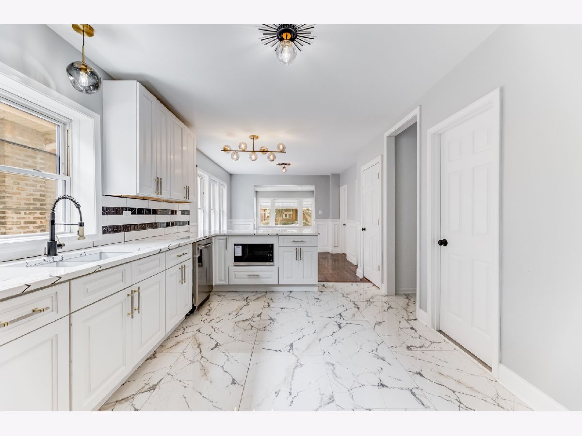Welcome to this spectacular 5 bedroom, 3 bathroom brick bungalow home with a 2 car garage. This beautifully updated home offers an abundance of space and natural light throughout. The gleaming hardwood floors welcome you in the spacious living room that features a breathtaking fireplace and a grandiose bay window with wonderful views of the beautiful tree lined street. The living room guides you into the spectacular dining room and stunning kitchen that features a breakfast bar in the peninsula, perfect for entertaining guests. You will find beautiful brand new stainless steel appliances in the gorgeous kitchen that boasts plenty of cabinet and countertop space. The main floor also offers a conveniently located full bathroom and two bedrooms. The second level features an expansive master bedroom, a second generously sized bedroom and a full bath. In the finished basement you will find a spacious family room, a bedroom, laundry room, and a full bath. The backyard features expansive yard space for the kids and pets to play, perfect to enjoy those summer barbecue's with family and friends. Spacious 2 car garage. Convenient proximity to the lakefront, parks, golfing, shopping and dining.