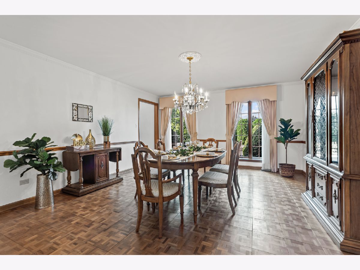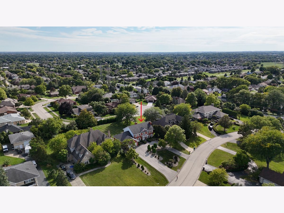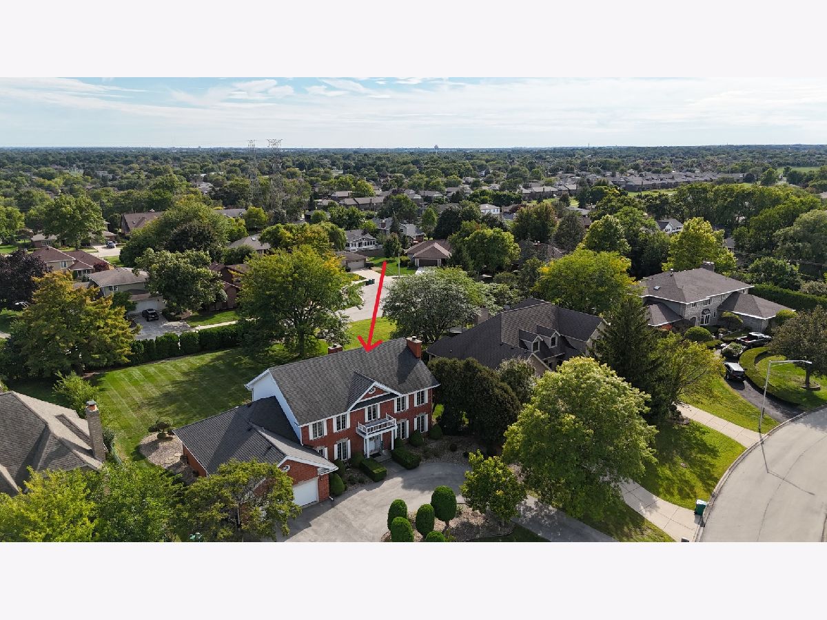 Welcome to this fabulous, custom built home in the Pluskota Subdivision of Orland Park. A rare offering, this home has been loved and cared for by one family since its construction, and sits on a high point, with great views of its surroundings - on the clear day you should be able to see Chicago skyline! This property features 5 beds, office, 3 full+2 half baths, a fully finished basement and an oversized 2 car garage. The entrance welcomes you with a bright, 2-story foyer and a gleaming staircase leading to the second floor. The main floor offers multiple spaces for family living and entertaining. The living and family room is divided by a beautifully designed pocket doors, and each room features a picturesque wood burning fireplace. The family room has a wet bar and features a beamed and vaulted ceiling. The living room floor has been reinforced to accommodate the weight of a grand piano. The large dining room, detailed with durable and elegant teak parquet flooring, offers space for any size of holiday/family gatherings. The kitchen is every chef's dream, with plenty of solid hardwood cabinets and counterspace, with new, stainless steel appliances and 2 pantry closets. A spacious breakfast table area will lead you through two oversized, newly installed Pella French doors to a sunny patio and over half acre yard, lined by mature trees & an equipped in-lawn sprinkler system. The hallway east of the kitchen leads to the laundry, full bathroom, and a quiet office, which may serve as guest private quarters, or an in-law arrangement. One area you will be sure to love, is the 2nd floor master suite with its deluxe spa-like bathroom, vanity nook, large walk-in closet and generously sized, bright master bedroom. Three additional bedrooms, as well as full hallway bathroom, located on the west side , completes the 2nd level. The fully finished basement will surprise you with an additional recreational family area, party room with extra cabinets, sink and counterspace for a potential kitchenette, half bathroom, 5th bedroom, wine cellar & extra storage room. The pride of ownership shines through every detail of this home: from double-stud walls (extra insulation), dual heating and cooling (energy efficiency), to incredible woodwork through the house! This home is all electric. There is gas line available just next door. Heating and cooling is provided by 2 newly installed, energy efficient and environmentally friendly heat pumps. This well maintained home is located in a top rated, award-winning school district, close to all kinds of dining, shopping, hiking/biking trails, and more!