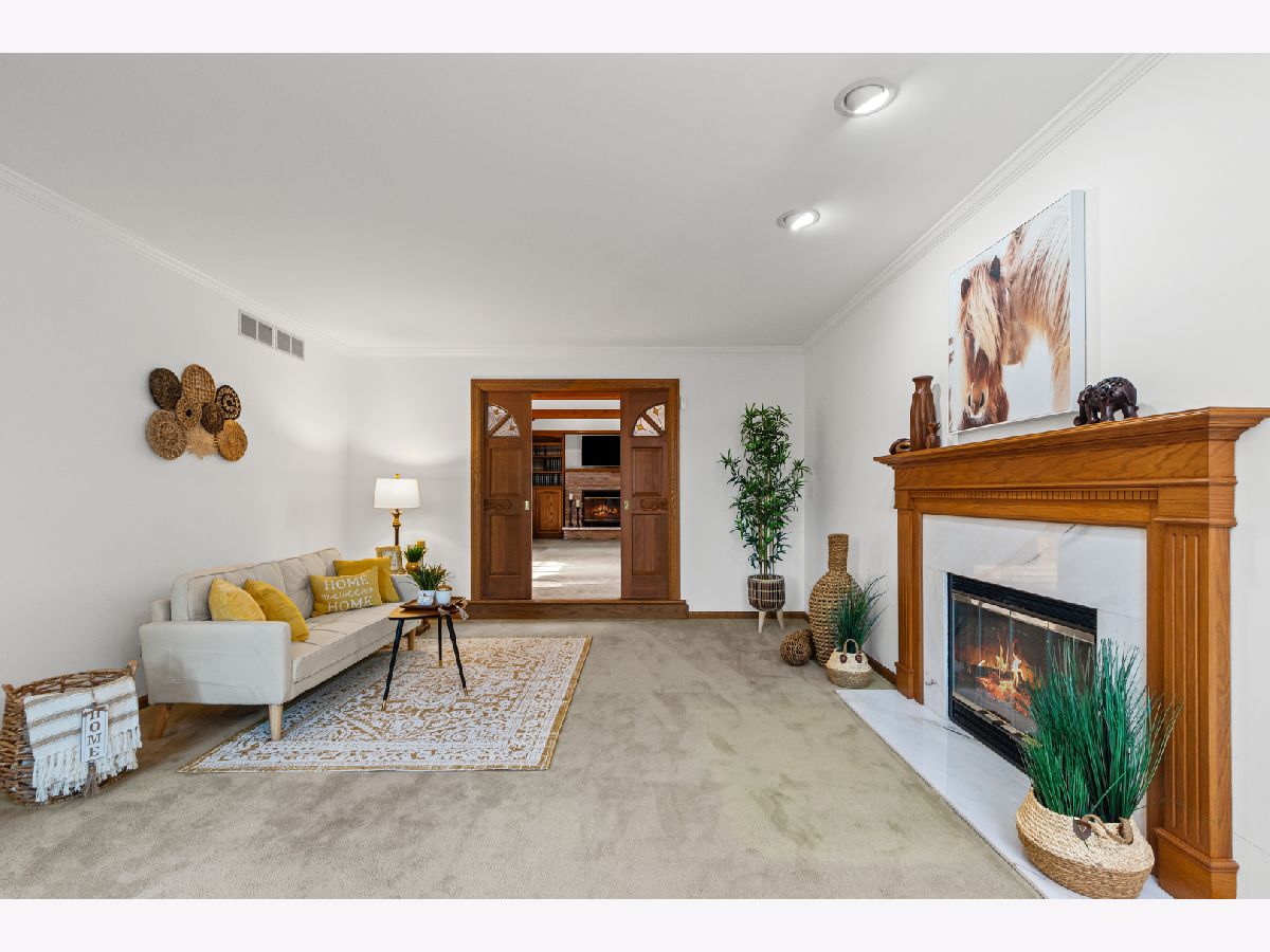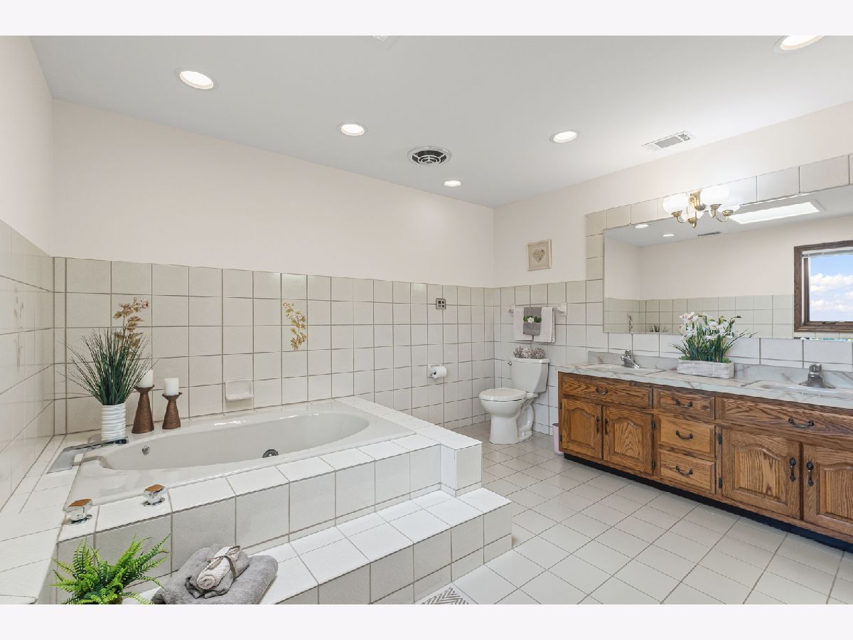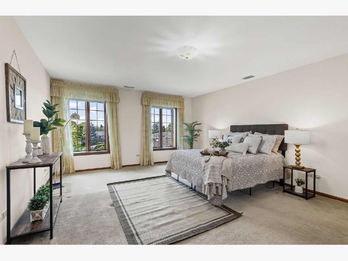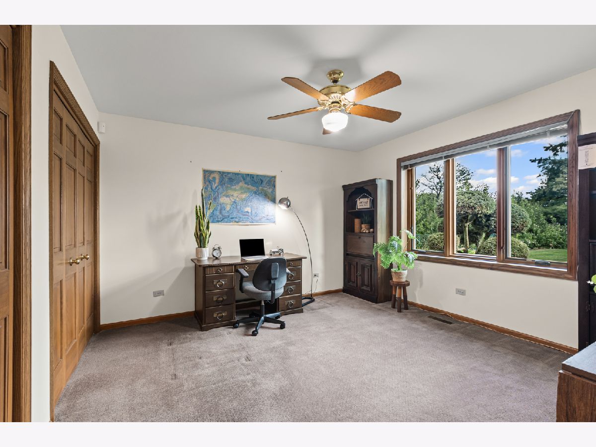 Welcome to this fabulous, custom built home in the Pluskota Subdivision of Orland Park. A rare offering, this home has been loved and cared for by one family since its construction, and sits on a high point, with great views of its surroundings - on the clear day you should be able to see Chicago skyline! This property features 5 beds, office, 3 full+2 half baths, a fully finished basement and an oversized 2 car garage. The entrance welcomes you with a bright, 2-story foyer and a gleaming staircase leading to the second floor. The main floor offers multiple spaces for family living and entertaining. The living and family room is divided by a beautifully designed pocket doors, and each room features a picturesque wood burning fireplace. The family room has a wet bar and features a beamed and vaulted ceiling. The living room floor has been reinforced to accommodate the weight of a grand piano. The large dining room, detailed with durable and elegant teak parquet flooring, offers space for any size of holiday/family gatherings. The kitchen is every chef's dream, with plenty of solid hardwood cabinets and counterspace, with new, stainless steel appliances and 2 pantry closets. A spacious breakfast table area will lead you through two oversized, newly installed Pella French doors to a sunny patio and over half acre yard, lined by mature trees & an equipped in-lawn sprinkler system. The hallway east of the kitchen leads to the laundry, full bathroom, and a quiet office, which may serve as guest private quarters, or an in-law arrangement. One area you will be sure to love, is the 2nd floor master suite with its deluxe spa-like bathroom, vanity nook, large walk-in closet and generously sized, bright master bedroom. Three additional bedrooms, as well as full hallway bathroom, located on the west side , completes the 2nd level. The fully finished basement will surprise you with an additional recreational family area, party room with extra cabinets, sink and counterspace for a potential kitchenette, half bathroom, 5th bedroom, wine cellar & extra storage room. The pride of ownership shines through every detail of this home: from double-stud walls (extra insulation), dual heating and cooling (energy efficiency), to incredible woodwork through the house! This home is all electric. There is gas line available just next door. Heating and cooling is provided by 2 newly installed, energy efficient and environmentally friendly heat pumps. This well maintained home is located in a top rated, award-winning school district, close to all kinds of dining, shopping, hiking/biking trails, and more!