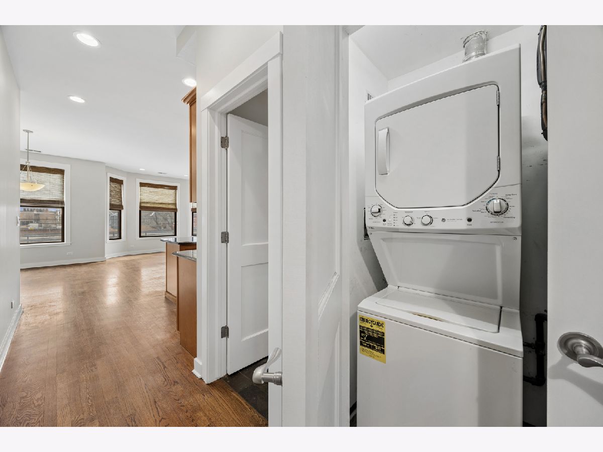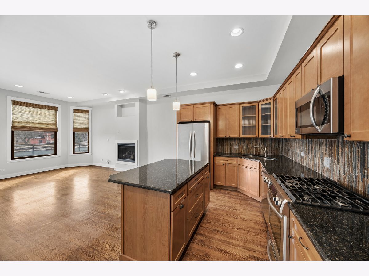 This condo has absolutely everything you could want! Freshly painted throughout, spacious and sunny! Kitchen opens to combination living and dining room. Modern kitchen with cherry cabinets, granite countertops, and stainless steel appliances. Living room features decorator shades and a gas fireplace. Wow! Down the hallway is the full sized washer/dryer, an updated full bath, two large bedrooms with terrific closets, including a primary suite! Ready to move in! Large private storage locker in basement. Close to all of Downtown Oak Park, the Green Line, and Metra. This location cannot be beat! Village garage parking available a half a block down the street! Hurry--this one won't last!!