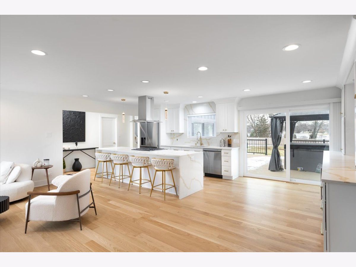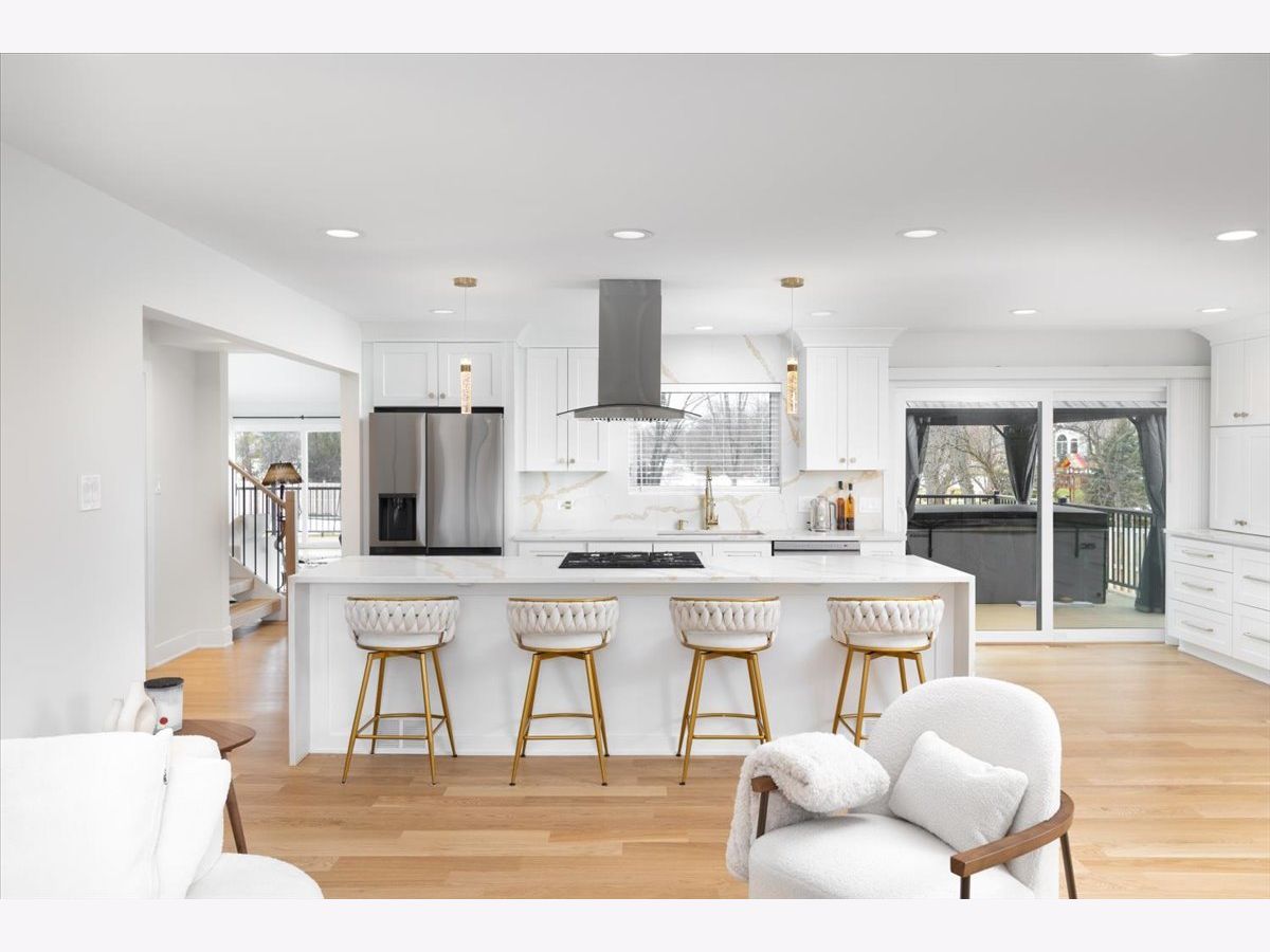 Everyday will feel like a vacation when you wake up in this absolutely breathtaking 4 bedroom, 3 1/2 bathroom contemporary style home nestled on an enchanting lake with nearly a half acre of land in idyllic Downers Grove! This truly feels like a brand new home having just undergone a recent renovation encompassing nearly every aspect of the property including all New: James Hardie Siding, Newly Fenced .64 Acre yard overlooking Bruce Lake - Brand New Trex Deck with Hot and Cold Tub. Updated gourmet kitchen, wide plank white oak flooring and fresh paint throughout. Home offers 2 Bedrooms on the first floor and 2 additional bedrooms on the 2nd floor, Primary Bedroom and Ensuite. Huge 29 x 38 Family room with soaring ceilings flows to beautiful backyard - Open floor plan gives this home an unmistakable modern feel while large, oversized Andersen Sliding glass doors and new windows provide stunning views and an abundance of natural light. The awe-inspiring chefs kitchen features timeless white cabinetry with gorgeous quartz countertops & backsplash, high-end stainless steel Samsung appliances, a large center island, beverage center, recessed lighting, and plenty of counter space for daily living and entertaining. New LG Washer and Dryer. Welcome Home!