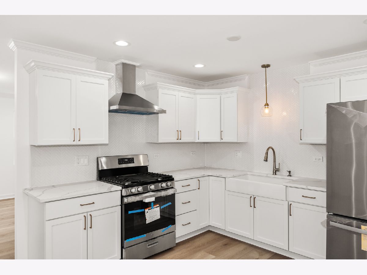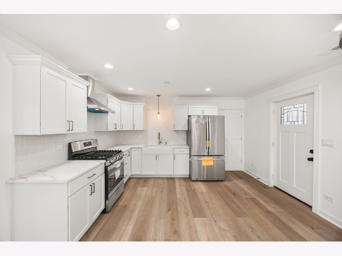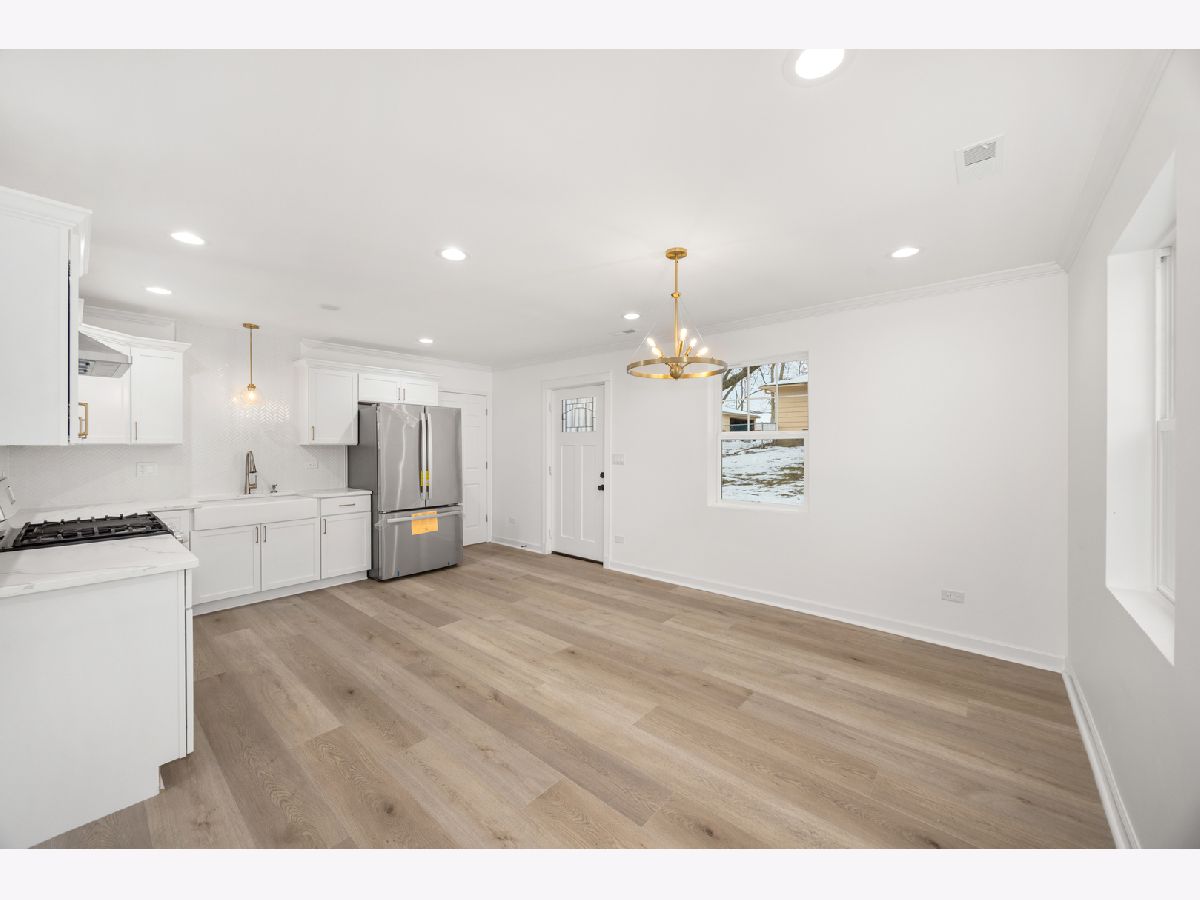 Brand-new construction in Joliet, located in a great area just blocks away from Jefferson St., where you can find anything at your convenience and close to I-80. WILL NOT LAST! Quality craftsmanship and thoughtful design. This 3-bedroom, 1-bath home features a bright, open-concept layout perfect for modern living. Built by a trusted builder known for consistent quality work, this home showcases attention to detail inside and out. Exterior highlights include durable vinyl siding accented with a shaker vinyl and wood apron for striking curb appeal, oversized 6" gutters, a huge 12' x 78' concrete driveway, and a large backyard ideal for entertaining. Inside, enjoy premium finishes such as 2x6 framing throughout, crown molding, six-panel interior doors, and premium luxury vinyl flooring (not standard builder grade). The kitchen features tall custom cabinetry with gold accents, Delta fixtures, quartz countertops, stainless steel appliances, a beautiful farmhouse sink, and a stylish herringbone backsplash. A big grid accent wall for a bold statement. The bathroom is finished with porcelain tile and quality fixtures, completing the home with a clean, modern feel. A rare opportunity to own new construction with standout quality, thoughtful upgrades.
