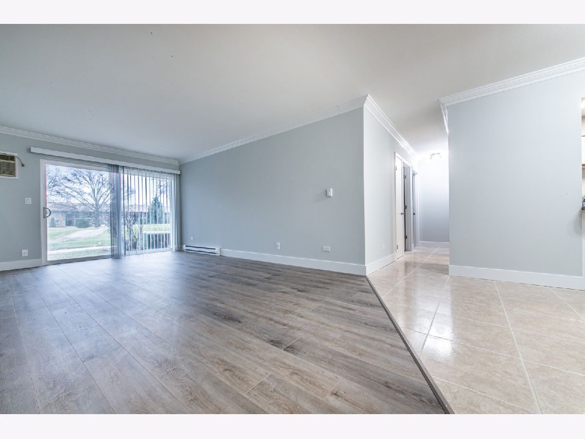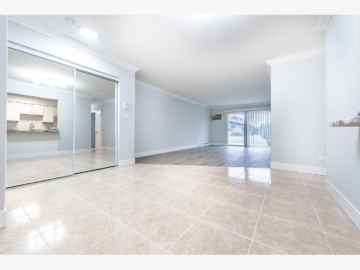 WOW!!! Total Rehab! Lovely first-floor 2 beds 1.5 baths condo offering style, comfort, and convenience! Step into a bright and inviting living space. Unit faces peaceful court yard. NEW kitchen is a true centerpiece, featuring NEW Stainless Steel Appliances-perfect for cooking enthusiasts and entertainers alike. NEW Refrigerator, NEW Dishwasher, NEW microwave, NEW dishwasher, New disposal, NEW granite, NEW light fixtures. This home boasts two spacious bedrooms, large walk-in closet. NEW wood laminate floors in entire unit. NEW washer and dryer installed in the unit. NEW main bathroom with an additional NEW half bath ensures convenience for guests and everyday use. NEW doors. Professionally painted. Enjoy the ease of single-level living in a meticulously maintained building, with plenty of unassigned parking and visitor parking. Amenities in the complex include basement storage locker, and additional coin laundry room, clubhouse, awesome pool, party room, playground, park like courtyard and walking paths. Ideal for those seeking a move-in-ready home in a great location, close to shopping, dining, and entertainment.