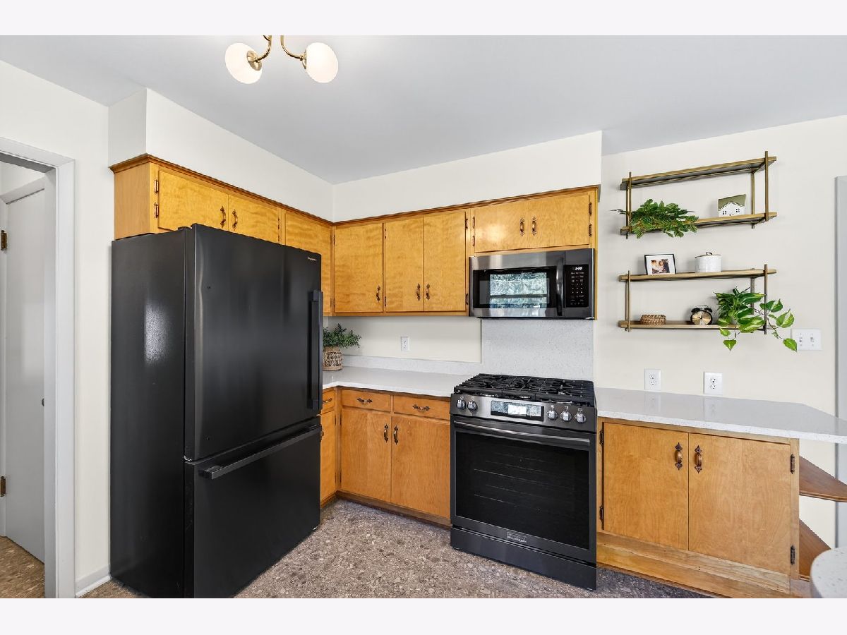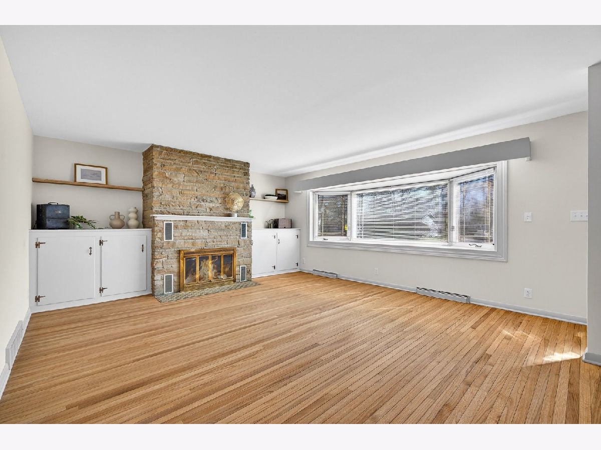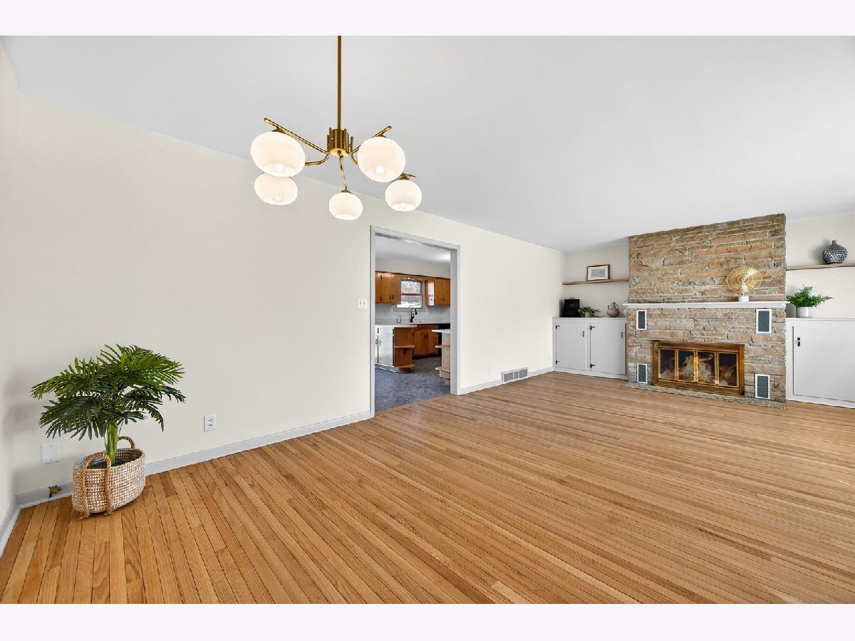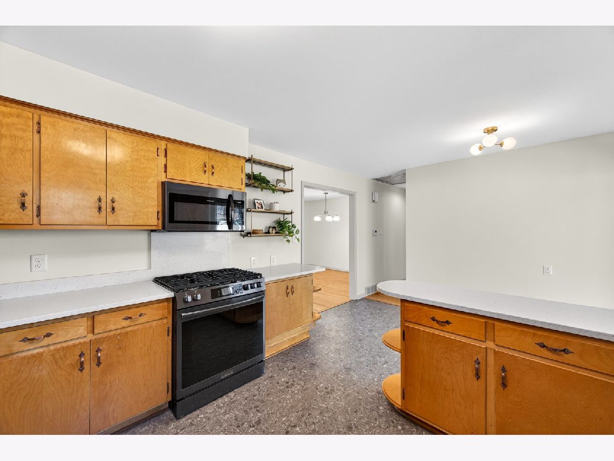 Discover this one-of-a-kind, fully renovated, 1.5 story home that beautifully blends unique charm with modern convenience. Step inside to find breathtaking professionally refinished hardwood floors throughout the spacious dining room and the living room with a stone fireplace flanked by built-in cabinetry. The remodeled midcentury kitchen is a chef's dream, featuring terrazzo-style luxury vinyl tile, sleek black stainless appliances, sculpted white quartz countertops, and vintage copper hardware...all bathed in natural light from the new sliding door in the breakfast nook. This home offers four generously-sized bedrooms, including a fantastic second-floor retreat with a cedar-lined closet & built-in shelving. Enjoy completely renovated bathrooms showcasing stylish finishes and all new modern fixtures. The lower level is a true standout, featuring a full guest suite complete with a mini kitchen & an extra family room that can easily double as a fourth bedroom, including a charming built-in dresser and a new egress window. A beautifully renovated bath will delight your guests. A spacious laundry room featuring a "secret" laundry chute & additional storage area complete this great space. Outside, an oversized partially fenced yard awaits, along with a shed for additional storage. With a newer roof (2018), HVAC, & Water Heater in 2016 and replacement vinyl windows, this home is move-in ready! Don't miss out on this incredible opportunity to own a slice of midcentury paradise!