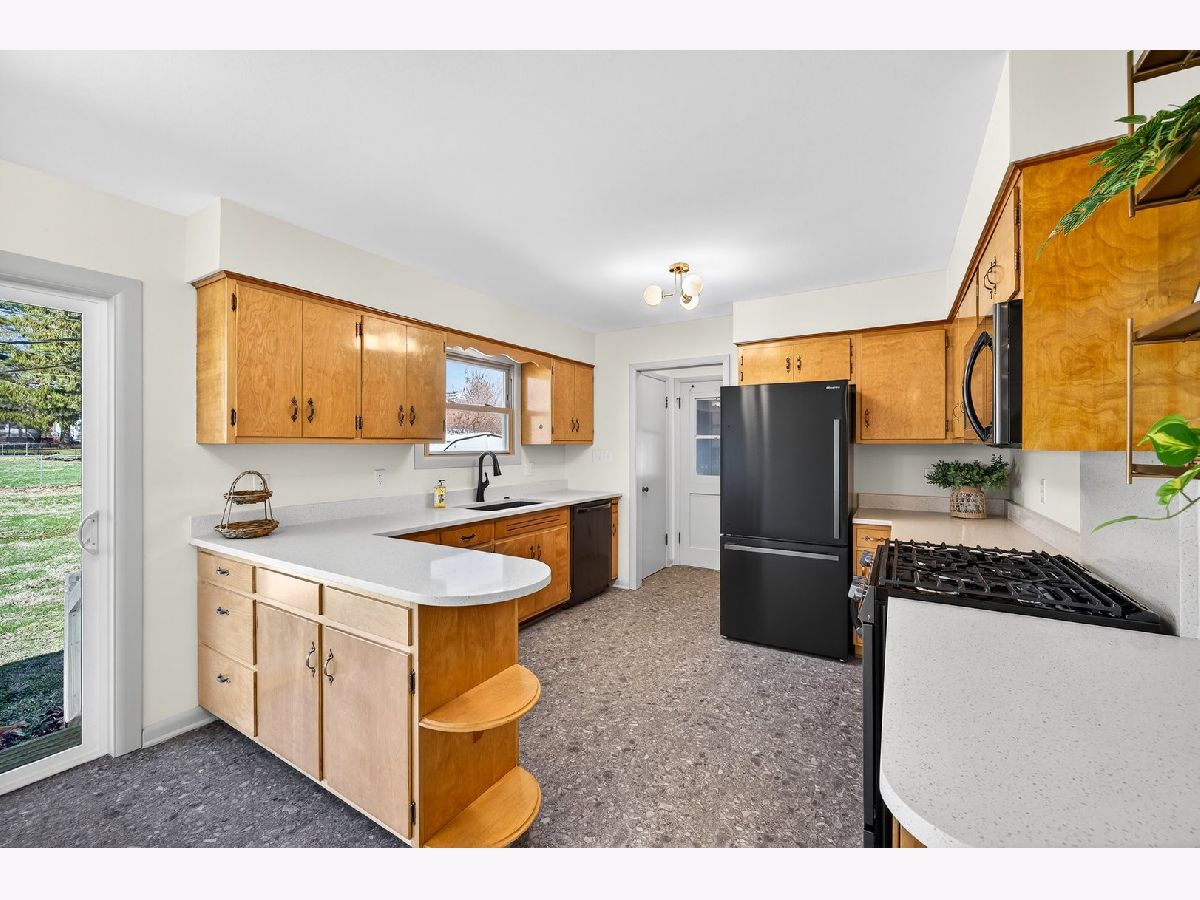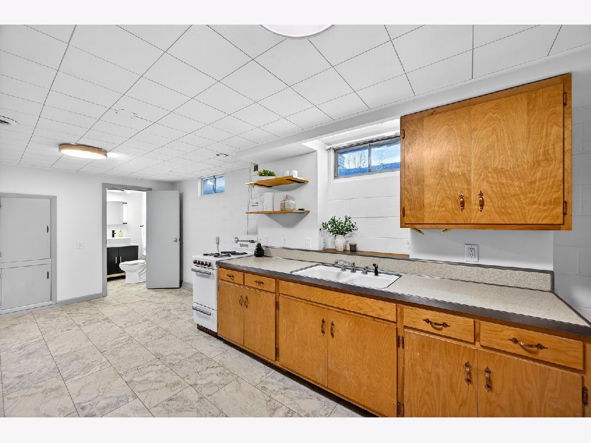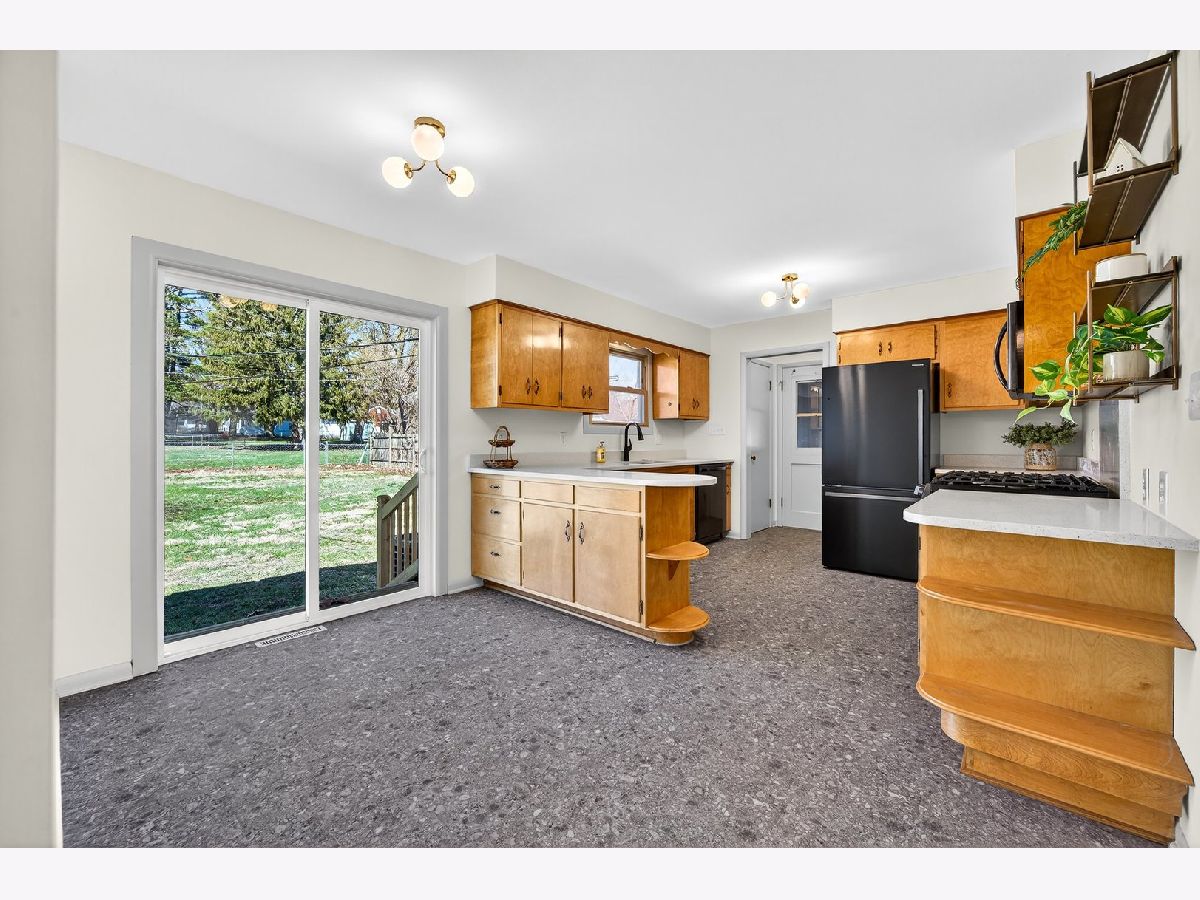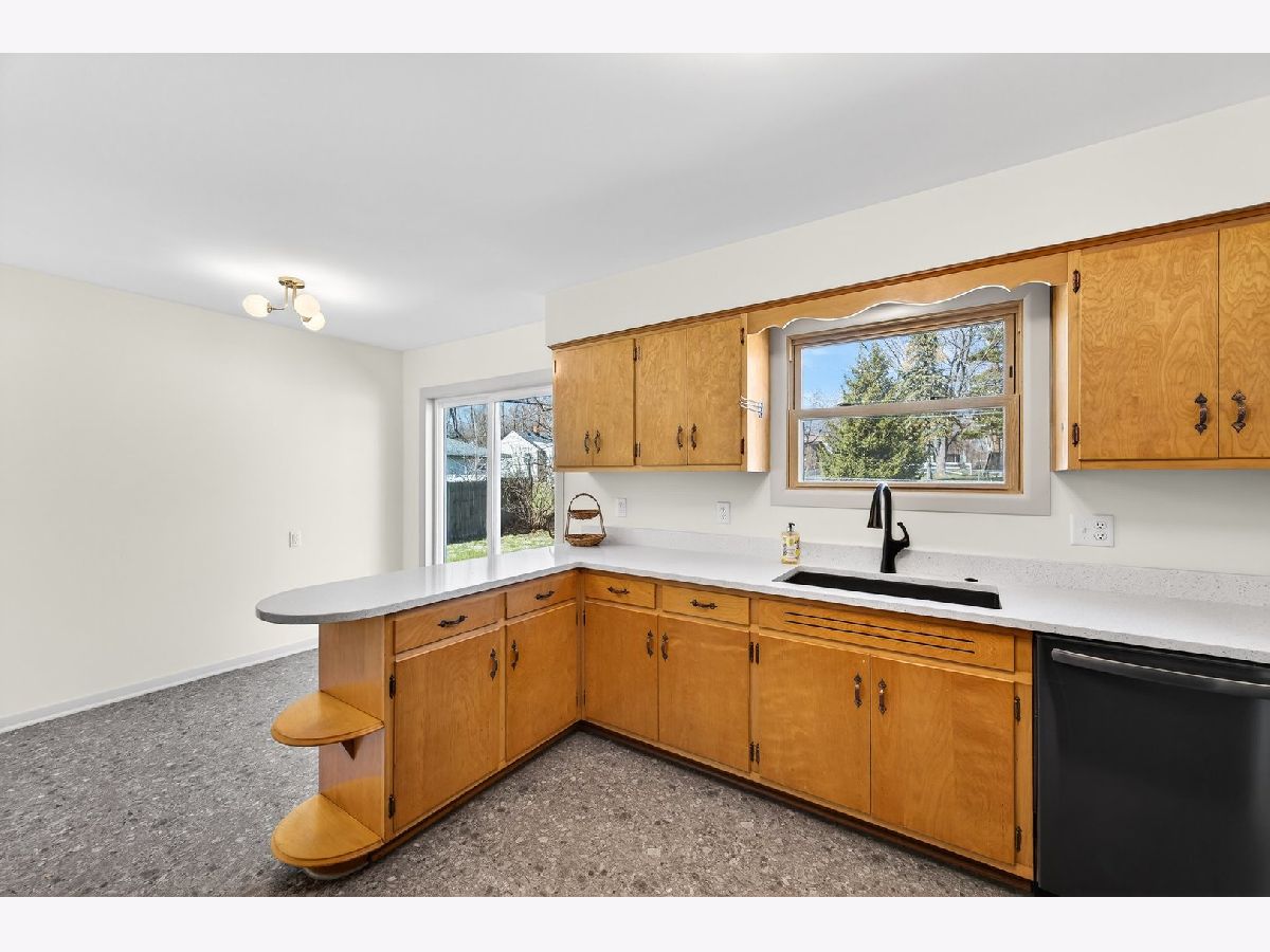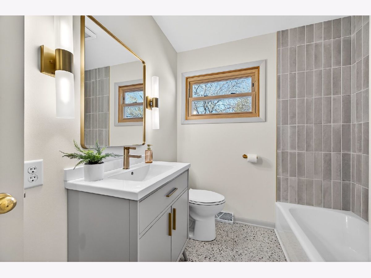 Discover this one-of-a-kind, fully renovated, 1.5 story home that beautifully blends unique charm with modern convenience. Step inside to find breathtaking professionally refinished hardwood floors throughout the spacious dining room and the living room with a stone fireplace flanked by built-in cabinetry. The remodeled midcentury kitchen is a chef's dream, featuring terrazzo-style luxury vinyl tile, sleek black stainless appliances, sculpted white quartz countertops, and vintage copper hardware...all bathed in natural light from the new sliding door in the breakfast nook. This home offers four generously-sized bedrooms, including a fantastic second-floor retreat with a cedar-lined closet & built-in shelving. Enjoy completely renovated bathrooms showcasing stylish finishes and all new modern fixtures. The lower level is a true standout, featuring a full guest suite complete with a mini kitchen & an extra family room that can easily double as a fourth bedroom, including a charming built-in dresser and a new egress window. A beautifully renovated bath will delight your guests. A spacious laundry room featuring a "secret" laundry chute & additional storage area complete this great space. Outside, an oversized partially fenced yard awaits, along with a shed for additional storage. With a newer roof (2018), HVAC, & Water Heater in 2016 and replacement vinyl windows, this home is move-in ready! Don't miss out on this incredible opportunity to own a slice of midcentury paradise!