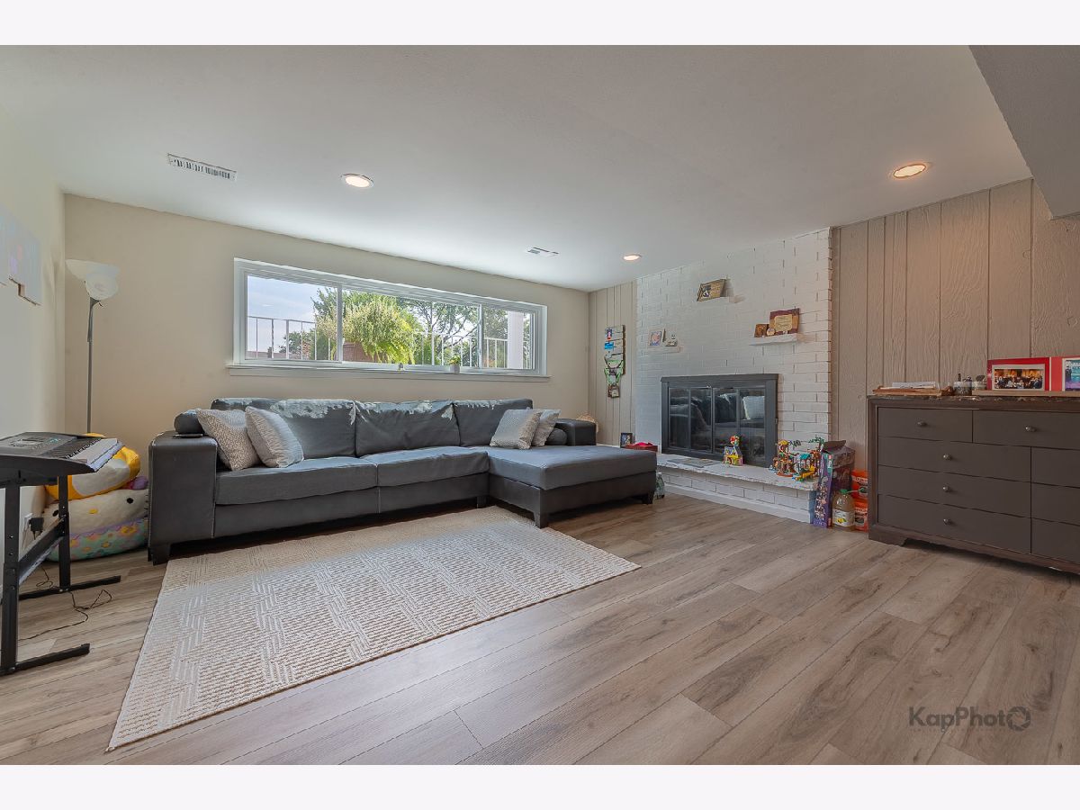 Stunning, fully-renovated home, meticulously updated from top to bottom with premium finishes and thoughtful design. Step inside to an open, sun-filled floorplan featuring wide-plank luxury vinyl flooring throughout. The main level features a freshly-painted interior, an expansive family room, and an open floorplan, gorgeous new kitchen with custom cabinetry, large island, quartz countertops, stylish backsplash, premium stainless steel appliances, and modern lighting. Enjoy your morning coffee or entertain guests on the brand-new balcony. 3 generously-sized bedrooms offer large closets, while 2 fully-remodeled bathrooms showcase contemporary finishes and fixtures. On the lower level, relax in a 2nd family room with a cozy gas fireplace. A versatile flex room makes a perfect guest suite, in-law arrangement, or home office, with an additional half-bath for convenience. The outdoor space impresses with an oversized fenced yard and sprawling deck, ideal for gatherings and play. Additional upgrades include a brand-new concrete driveway, new siding, energy-efficient windows, a new front door, replacement of the sub-floor and joists, and a brand-new HVAC system and washer/dryer. Located on a quiet street in a sought-after neighborhood, just minutes from top-rated schools, parks, restaurants, expressways, and the commuter train. Do not miss this move-in-ready gem. Schedule your tour today!