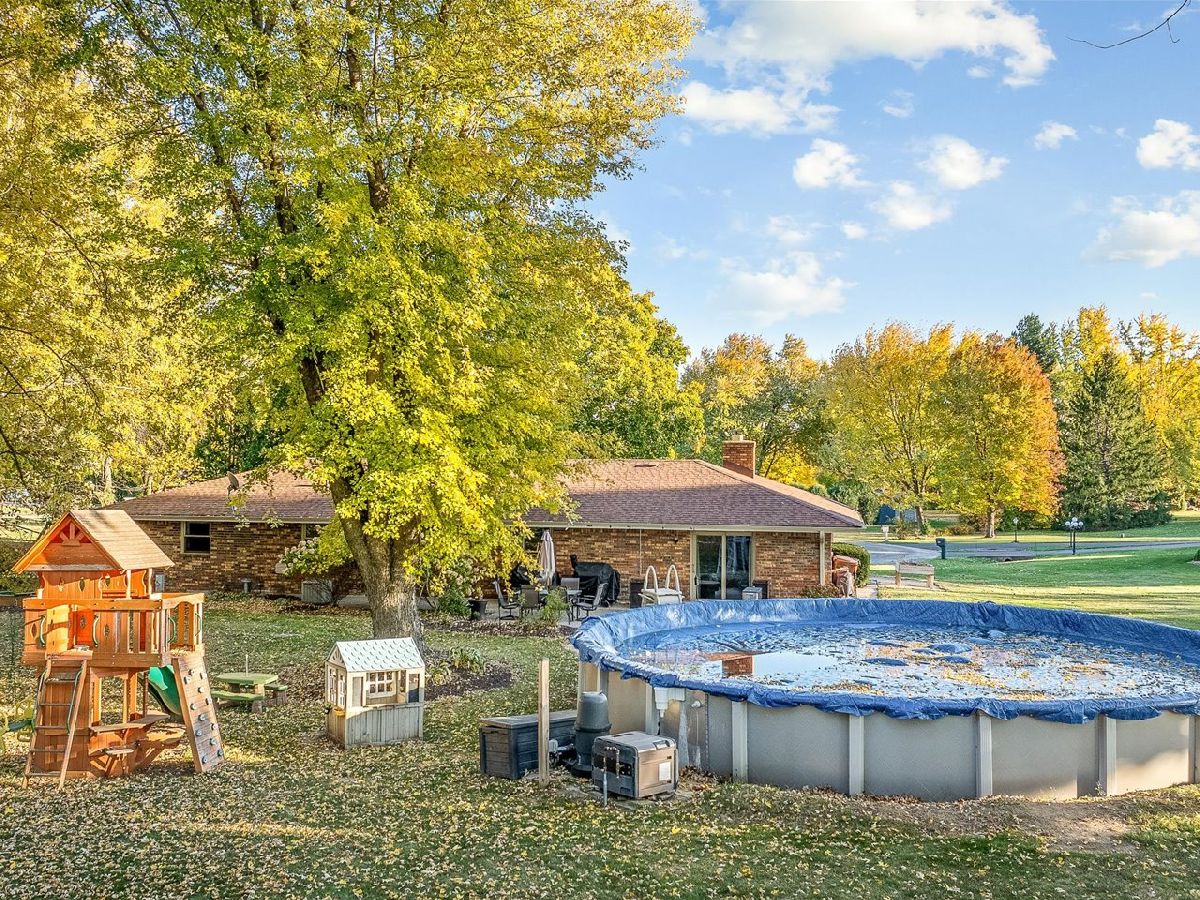 Nicely Updated & Well Maintained 3 Bedroom, 2 Bath, 2 Car Garage All Brick Home on 1.19 Acres in Rural Winnebago Subdivision. Spacious Eat-In Kitchen with Upgraded Cabinets, Corion Countertops, Pantry, Recessed Lighting & Views of Large Backyard. Family Room with Gas Fireplace, Built-In Bookcases & Slider to Back Patio. Primary Bedroom has Private Bath. Finished Basement has a Rec Room with Wet Bar, Projector TV & Surround System, Office Space & Lots of Storage Space. New Vinyl Flooring& Wood Trim in 2025. New Refrigerator & Water Heater in 2025. New Roof, Gutters, Gutter Guards & Downspouts in 2020. Generac Generator System. Modern Light Fixtures& Paint Colors. Mature Trees & Landscaping. 33' Round Pool with Heater. 2 Sheds on the Property. Awesome Cul-De-Sac Setting. County Taxes & Winnebago School District! Great Property!