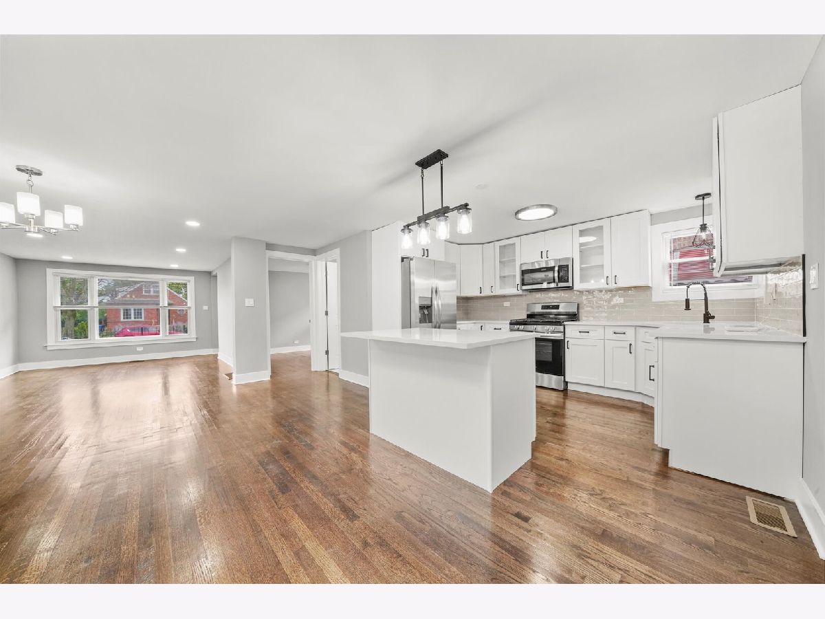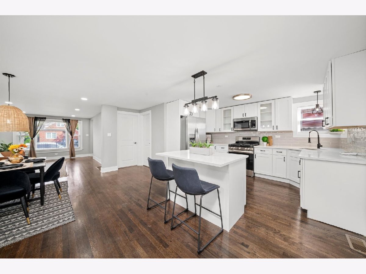 Welcome home to your 4 bed 2 bath brick raised ranch home. Fully rehabbed with all the bells and whistles, move-in ready! Enjoy having this open concept spacious living and dining room with refinished hardwood flooring throughout most of the main level. Cook your family meals in the BRAND NEW kitchen with white shaker cabinetry with black onyx hardware, quartz countertops, subway tile backsplash, and a convenient breakfast bar island. Brand new stainless steel appliances to finish the look. There are four generous sized bedrooms on the main floor, two that have walk-in closets. Brand new bathroom with meticulous tilework and vanity. Head down to the fully finished basement with painted black exposed ceilings, brand new vinyl flooring, plenty of entertaining space and a full bathroom. Separate laundry and utility space and plenty of storage. Backyard has a newly built 20 by 20 Parking Pad for parking 2 cars with a Double gate access that can be easily converted into a full enclosed garage and additional space perfect for outdoor BBQ's and bonfires. Call & schedule your showing today!