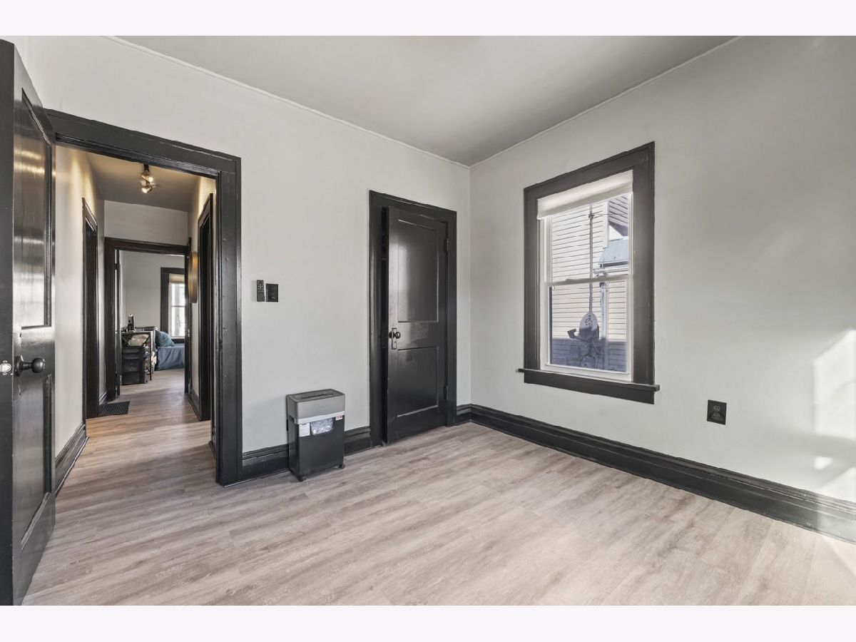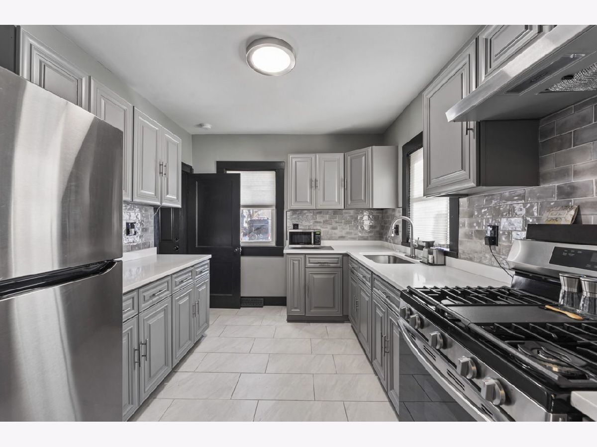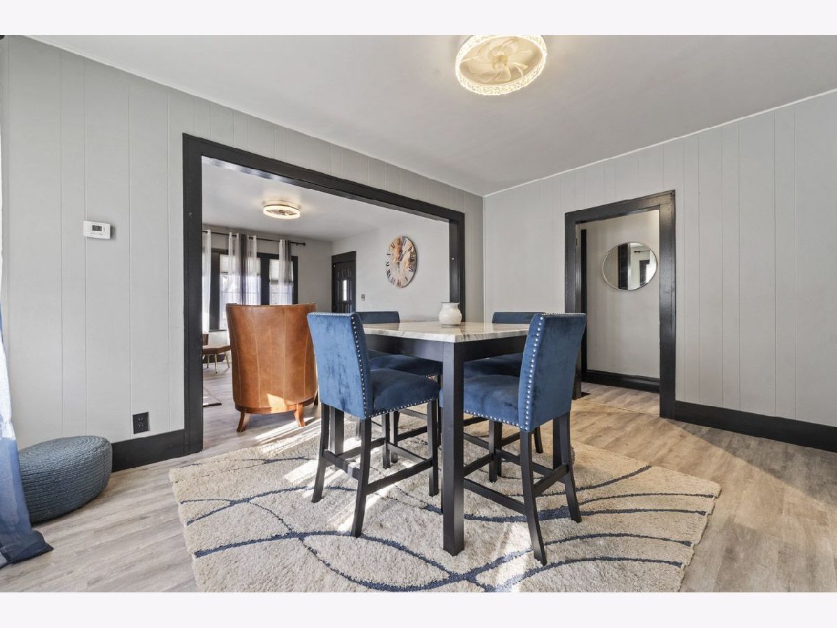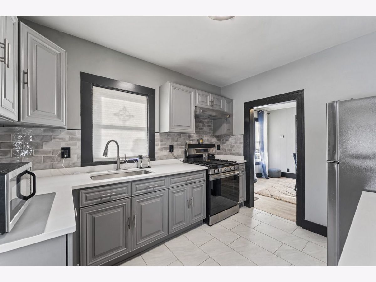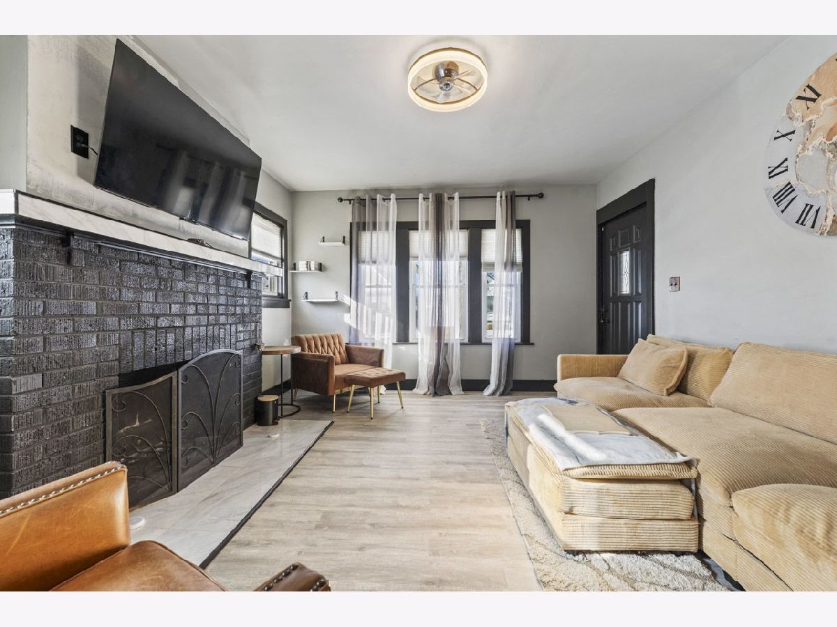 Stylish, Move-In Ready Ranch with Modern Updates & Future Potential. This beautifully updated 2-bedroom ranch blends modern design with classic charm. Striking black and gray exterior paint creates instant curb appeal, while the enclosed front porch offers a welcoming space to relax year-round. Inside, you'll find new laminate flooring throughout the main level and a thoughtfully updated kitchen featuring sleek gray cabinetry, quartz countertops, stainless steel appliances, a range hood, and a contemporary backsplash-perfect for both everyday living and entertaining. The separate dining room and living room provide defined spaces, anchored by a wood-burning fireplace that adds warmth and character. The updated bathroom includes a clean, modern tub/shower combination, while the basement offers excellent potential, already equipped with laundry, a utility sink, and ready for your finishing touches. Major improvements include new electrical and a new roof in 2024, offering peace of mind for years to come. Convenient alley access parking for three vehicles completes this inviting home. A perfect blend of style, functionality, and opportunity-this one is not to be missed.