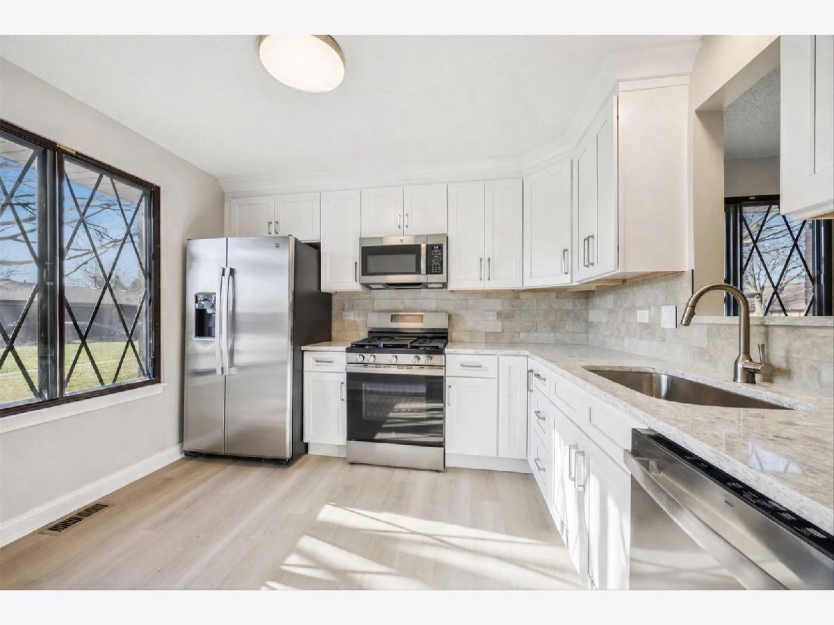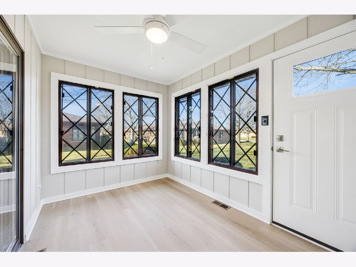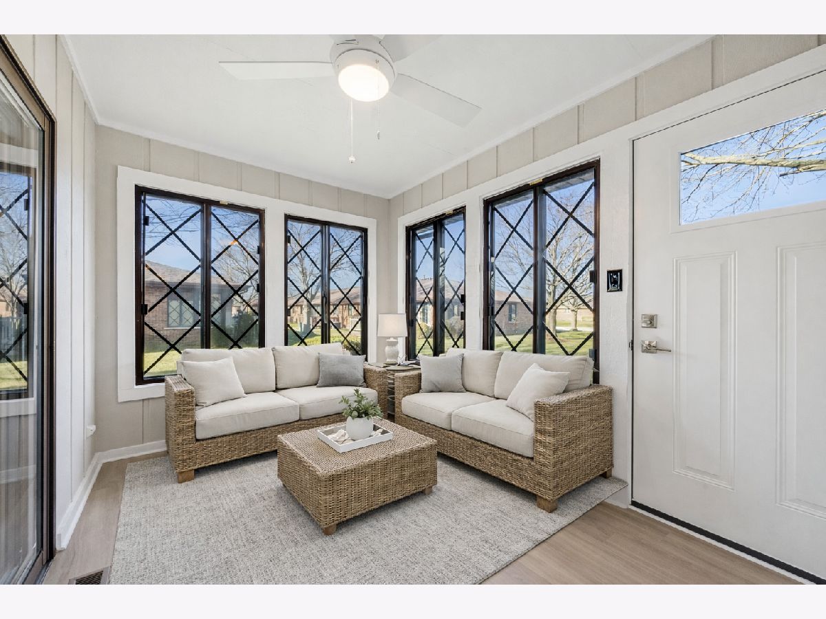 A FULLY REMODELED RANCH TOWNHOME in New Lenox's Country Villa neighborhood, a NON-AGE restricted community, is available for you to call home! A METRA ride makes commuting or visiting Chicago easy. Enter an all BRICK, END UNIT with an oversized TWO CAR GARAGE. Walk into an open living and dining floor plan leading to an all season SUNROOM and private DECK. The kitchen is equipped with NEW SHAKER style CABINETS (not just painted!), NEW STAINLESS STEEL GE appliances including a DISHWASHER and QUARTZ countertops. In the primary bedroom enjoy a WALK-IN CLOSET and an EN SUITE bathroom outfitted with a NEW QUARTZ vanity (again, not a painted old vanity!), tile, hardware and lighting. The guest bedroom is also spacious with a WALL OF CLOSETS. To make living and cleaning a bit easier, A UTILITY SINK in the LAUNDRY ROOM room is a HUGE BONUS for function. The GARAGE can be ACCESSED from the LAUNDRY room AND from the front FOYER. The layout of this home is on point for function. Assessments are paid QUARTERLY ($510/Q, equaling $170/MO). ONE DOG allowed and CATS per the New Lenox city ordinance. RENTALS ARE TO FAMILY MEMBERS ONLY. There is a crawlspace to the basement and an ATTIC accessed via drop-down steps in the garage. Welcome to New Lenox top-rated schools: highly sought-after LINCOLN-WAY HIGH School District 210, easy commuting: METRA ROCK ISLAND Line, quick access to I-80, I-355, and Route 30, and Hickory Creek Preserves offers year-round recreation. This ranch townhome is ONE FLOOR of living space giving a very functional layout out and the ease of a low maintenance lifestyle. Come enjoy New Lenox, a neighbor to Frankfort.