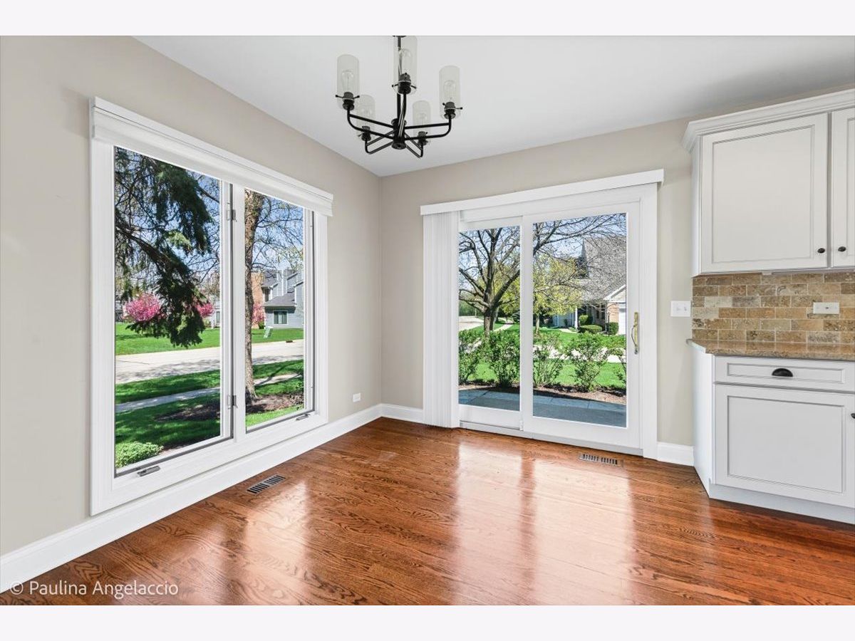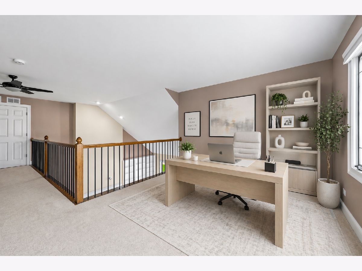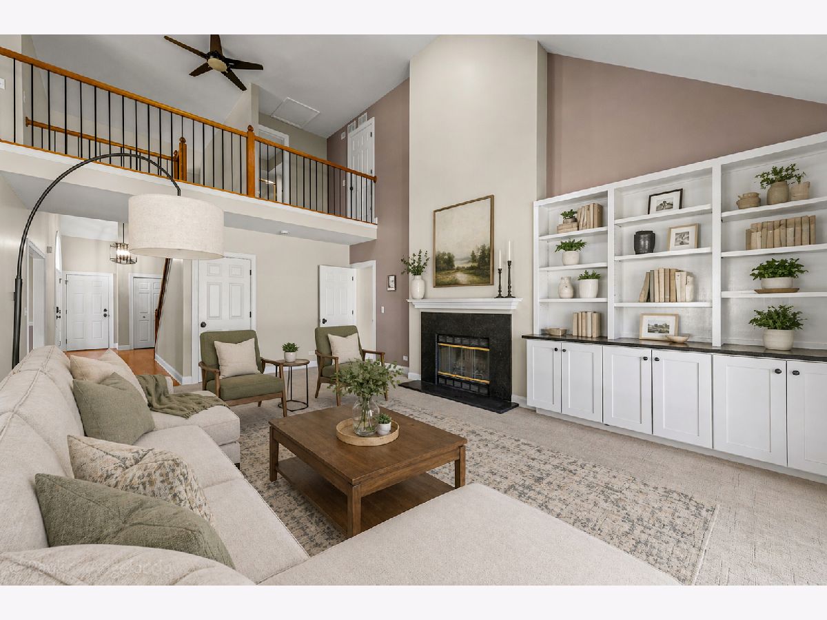 Highly sought-after floor plan - end unit with a First-Floor Primary Bedroom suite in Riva Ridge III. Light, bright and airy with an abundance of windows and impressive vaulted ceilings! You step into a two-story foyer with a beautiful open staircase and recently refinished hardwood floors that flow through to the formal dining room and into the kitchen with its ample-sized eating area that accesses the patio through a sliding glass door (2019). The kitchen was completely renovated in 2021 - cabinets, countertops, appliances, everything. There is an abundance of space in the living room which has a dramatic vaulted ceiling, built-in shelving and cabinets and a wood burning fireplace. The first-floor primary bedroom has a large walk-in closet and a completely renovated and reconfigured (2026) primary bath with dual sinks, an oversized, custom shower with glass enclosure, separate commode room and a linen closet. There is also a second bedroom on the main floor with a second full bath, also renovated, just outside its door and a convenient main floor laundry room with a utility sink and plenty of storage. The washer and dryer are brand new. The upstairs loft, complemented by the third full bathroom, is a perfect retreat or home office space. It could easily be converted into a third bedroom as it already has a double door closet in place. The basement is ideal for a workshop, craft room or an exercise area and provides access to a ton of crawl space storage. The two-car attached garage is the cherry on top. You will also enjoy this south Libertyville location close to Jewel, Walgreens and loads of other shopping and restaurants while still tucked away on a quiet cul-de-sac in close proximity to the Libertyville Rec Center and Riverside Park along the Des Plaines River.