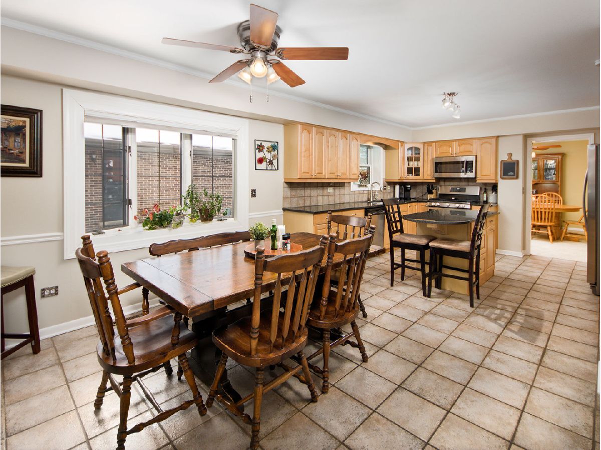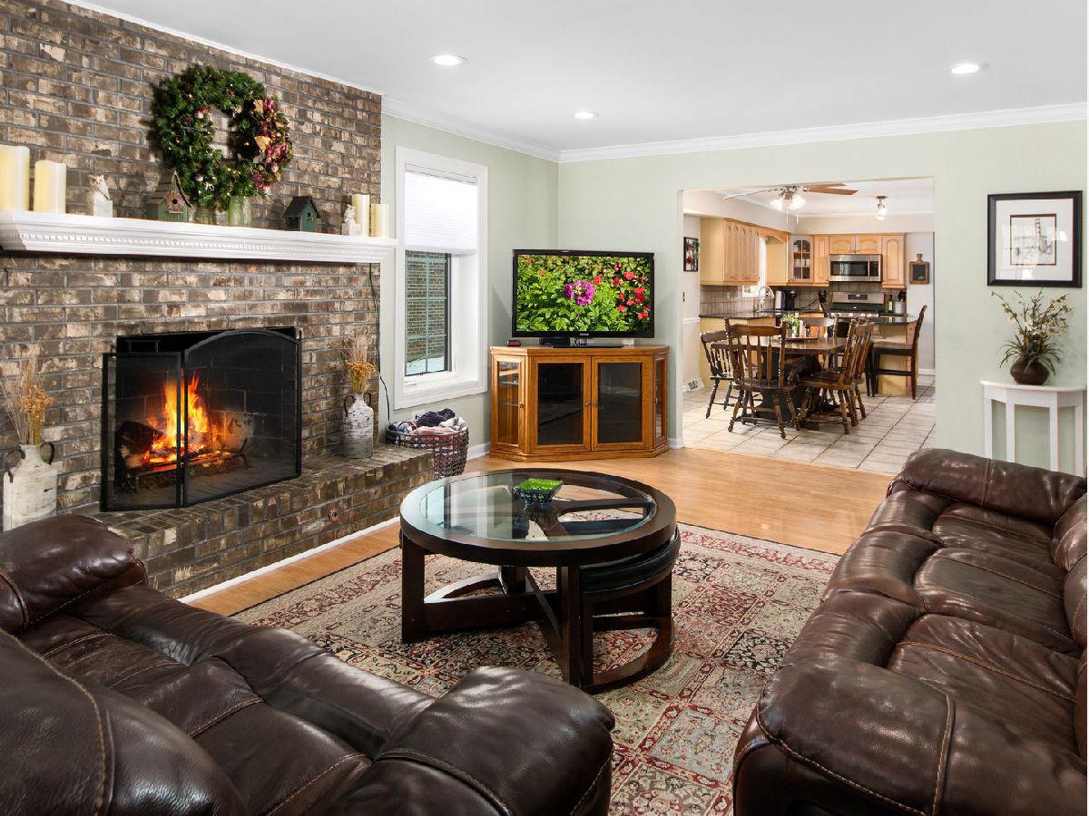Spacious and versatile 4-bedroom, 3.1-bath home with a sought-after in-law arrangement, den/office, full basement, and 2-car garage. Welcoming covered front porch leads to a large entry foyer that opens to a huge living room and L-shaped dining room-perfect for entertaining. The kitchen features maple cabinets, stainless steel appliances, granite countertops, pantry closet, and a generous eat-in area. The kitchen flows seamlessly into the family room with a beautiful brick fireplace and gas logs. Enjoy abundant natural light in the sunny 4 season room just off the family room has heater and AC. A powder room and main-level in-law suite with walk-in shower complete the first floor. The second floor offers a spacious primary suite with walk-in closet, sitting room, and remodeled en suite bath with separate tub and shower. Three additional bedrooms, a den/office, and a remodeled hall bathroom complete the upper level. The full basement provides even more living space with a recreation room, exercise area, large laundry room with front-load washer and dryer, and a separate workshop. Outside, enjoy a brick paver patio and private side yard-ideal for family gatherings and outdoor entertaining. Most windows replaced with Gilkey triple pane windows. new hot water heater. 2 zoned furnace and central air. Conveniently located near bike path, parks, expressways, shopping, and restaurants. A wonderful opportunity offering space, flexibility, and a prime location!